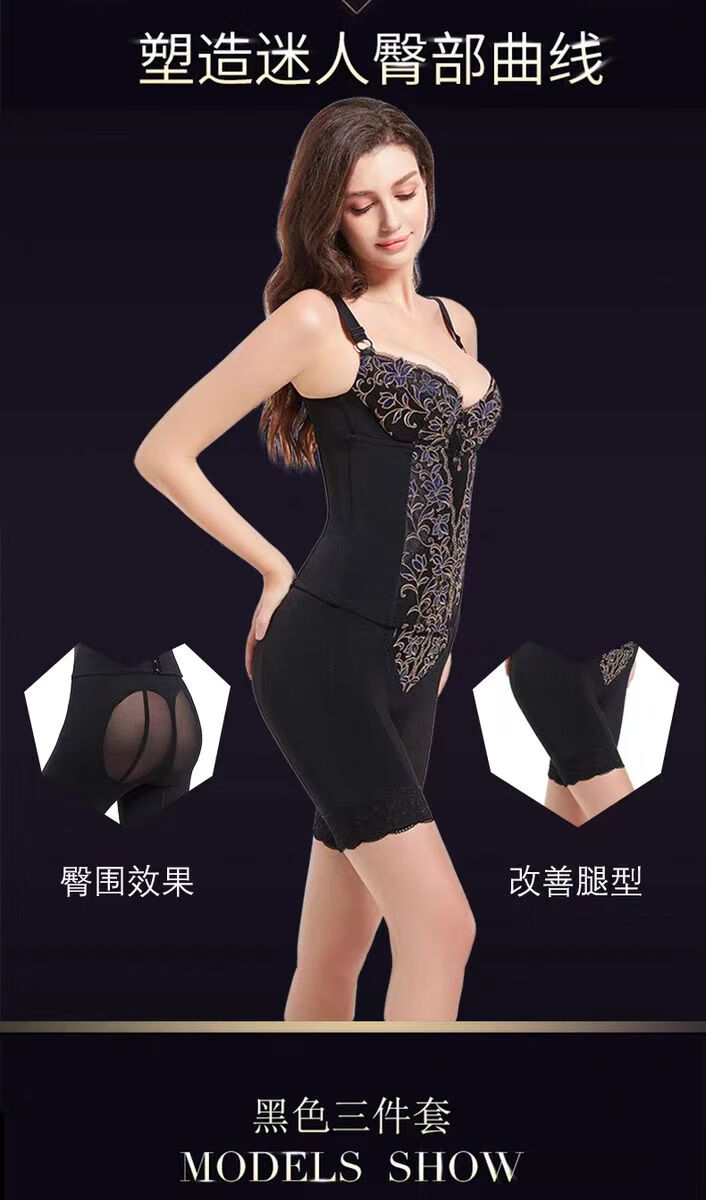 Duyini Body Manager genuine offline same style body sculpting mold orthopedic body-shaping corset three-piece set black three-piece set (long bra + waist clip + trousers) 6XL 122 size (155-165 catties)