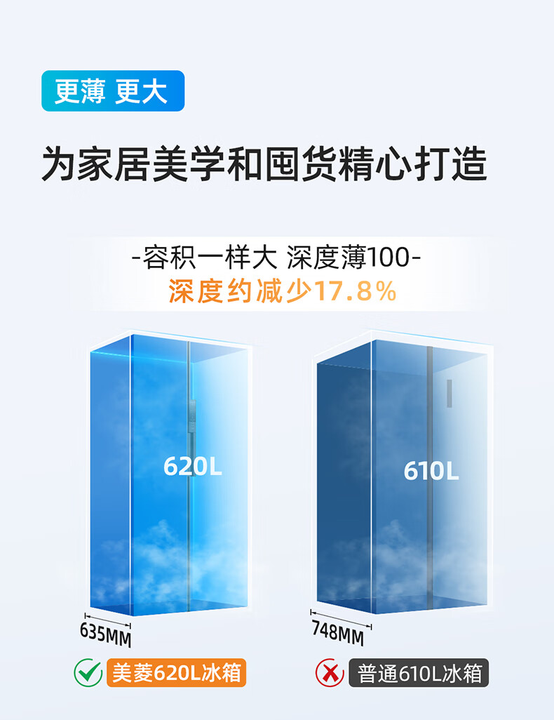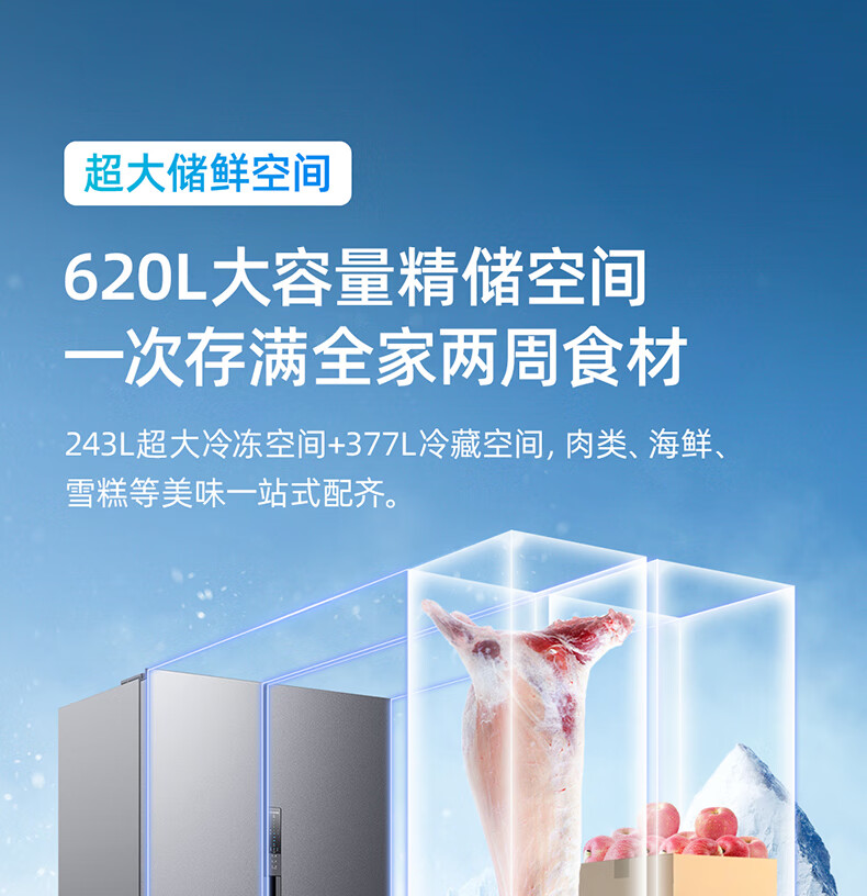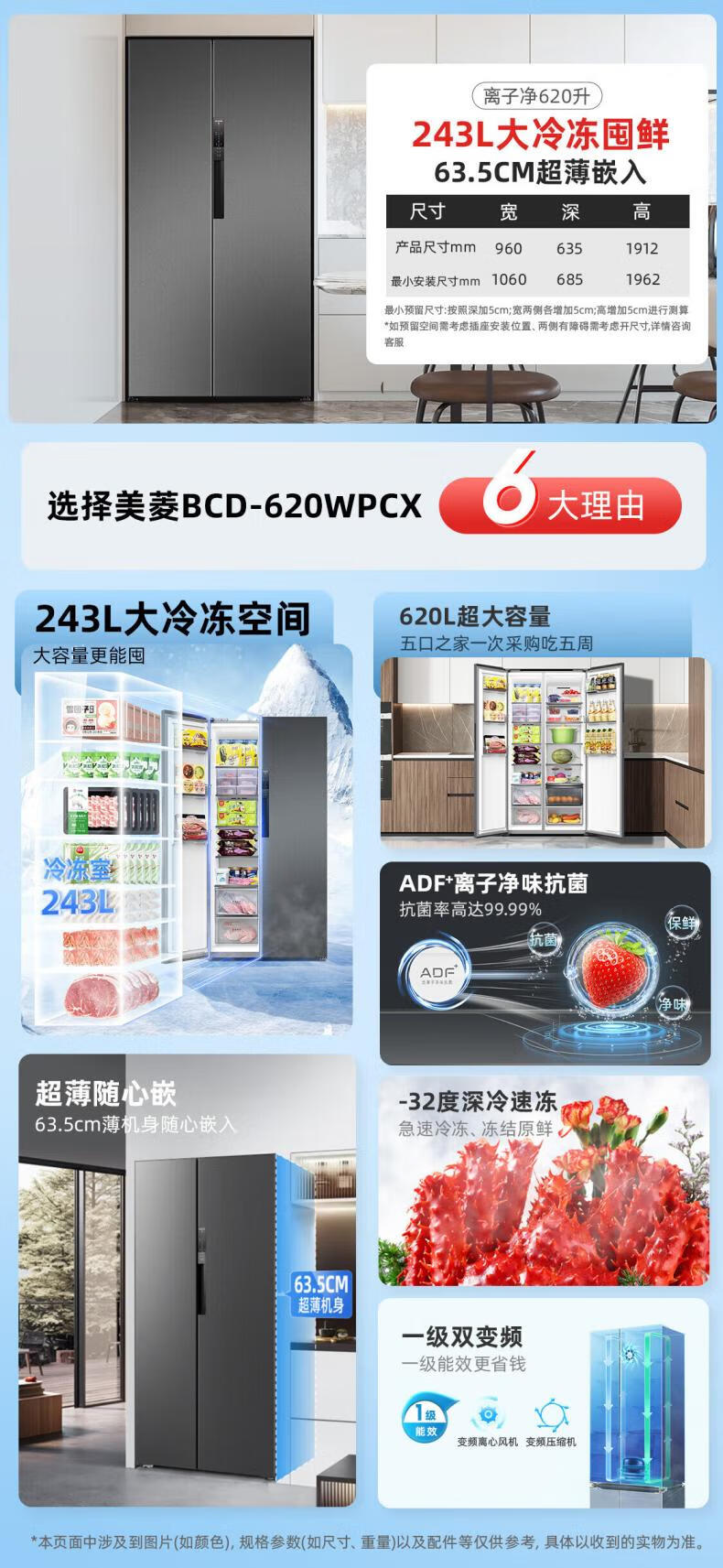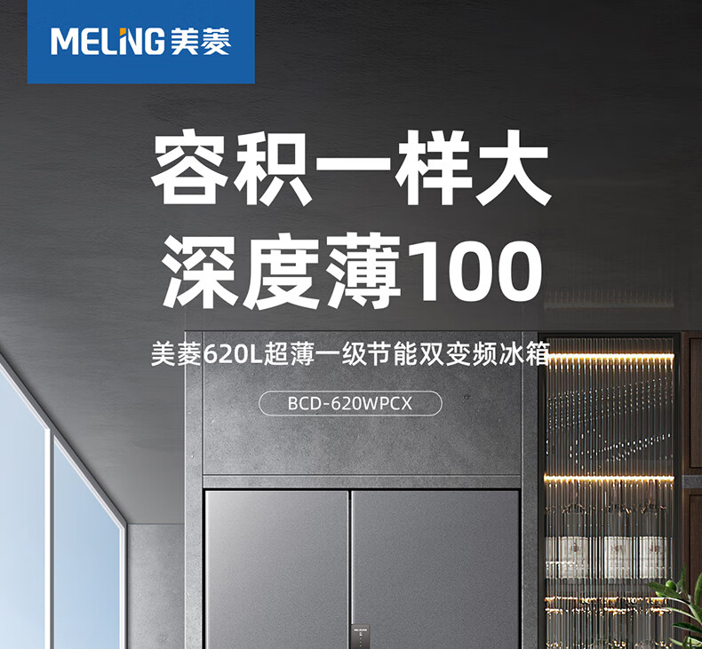 MeiLing refrigerator 620 liters double door double door large capacity ultra-thin embedded refrigerator first-class energy efficiency dual frequency conversion air-cooled frost-free refrigerator storage division Guopu 620 liters + frequency conversion first-class + air-cooled frost-free refrigerator
