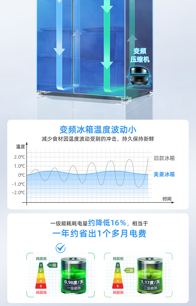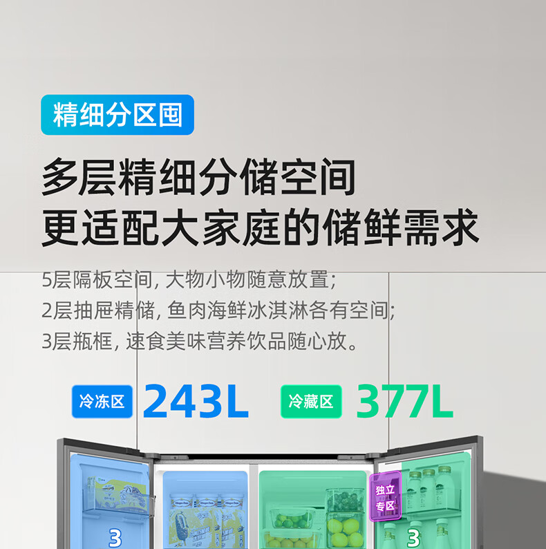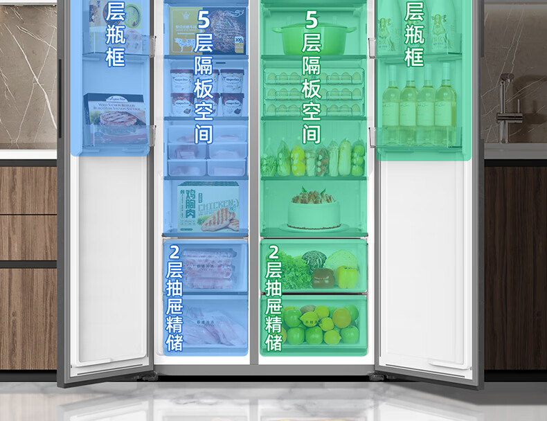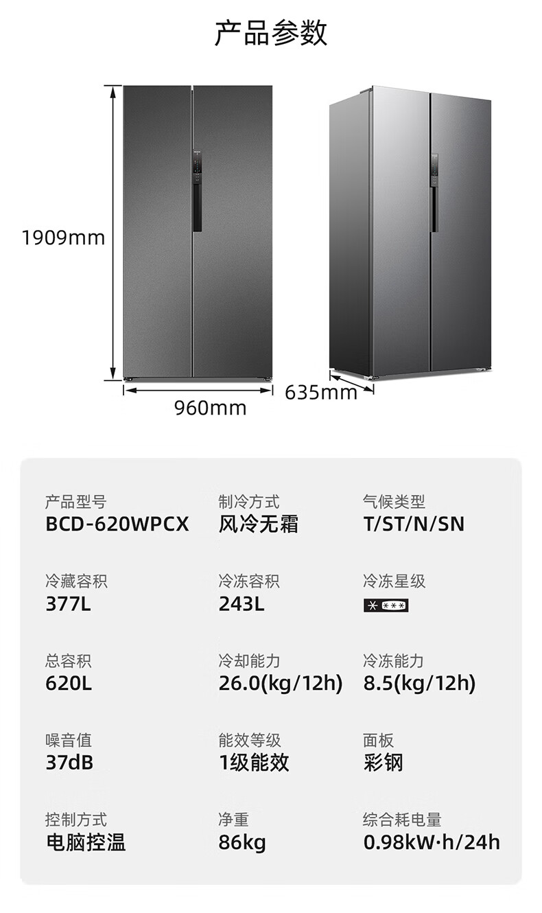 MeiLing refrigerator 620 liters double door double door large capacity ultra-thin embedded refrigerator first-class energy efficiency dual frequency conversion air-cooled frost-free refrigerator storage division Guopu 620 liters + frequency conversion first-class + air-cooled frost-free refrigerator