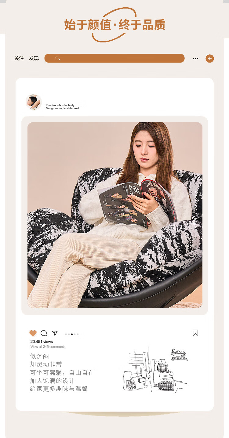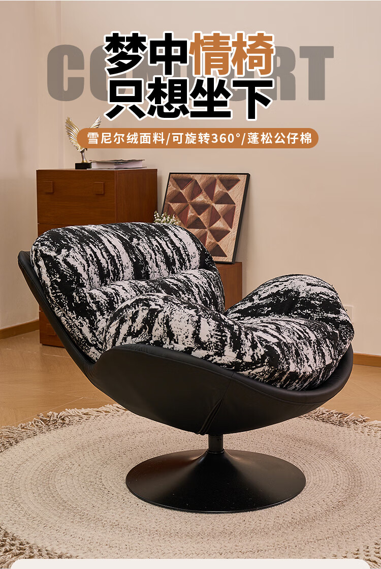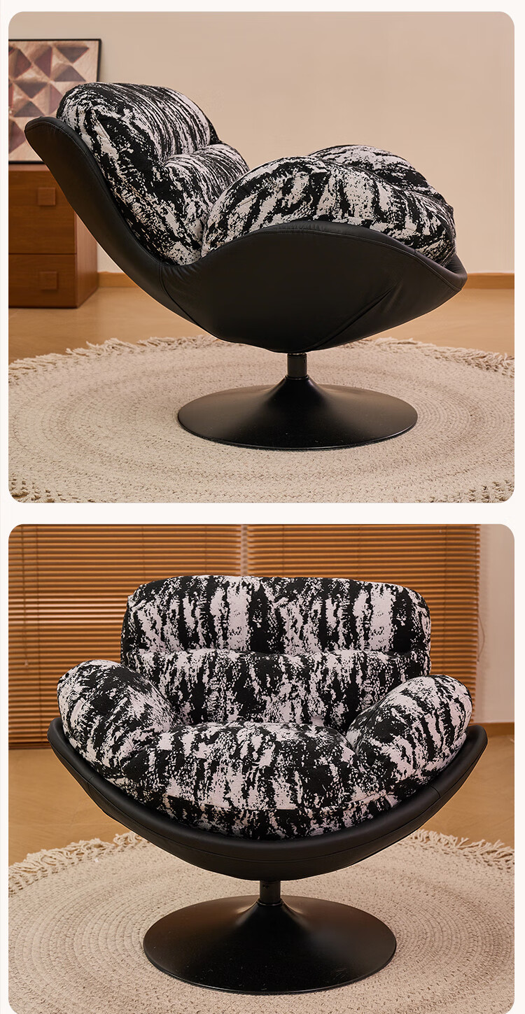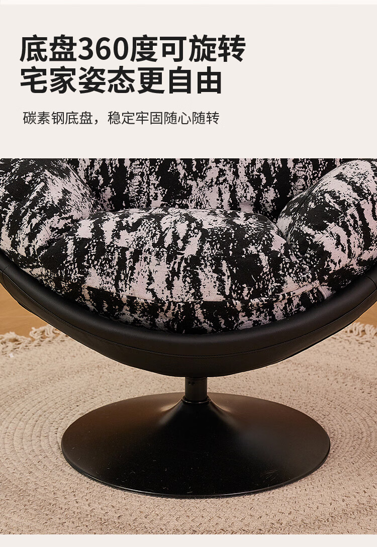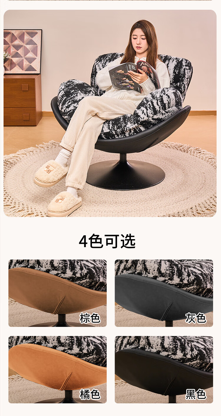 Flower Garden Eggshell Chair Rotatable Bedroom Leisure Chair Lazy Sofa Removable and Washable Recliner Retro Single Sofa Chair Seat Ink Forest (Single Chair) Removable and Washable Doll Cotton Model