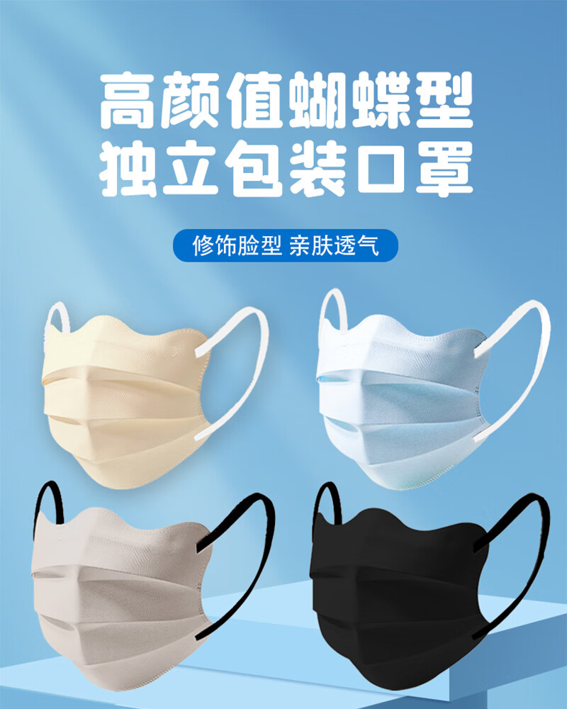 Disposable mask for summer sun protection, butterfly shape, high appearance, eye corner protection for women, showing face, small, ear-stretching, anti-falling, oatmeal gray, 20 pieces