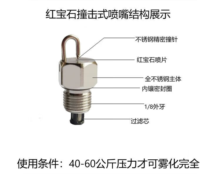 YWZR high-quality ruby impact type high-pressure atomizing nozzle fog forest cold mist landscaping farm factory cooling and dust removal ruby nozzle No. 1 filter cotton 0.15mm one