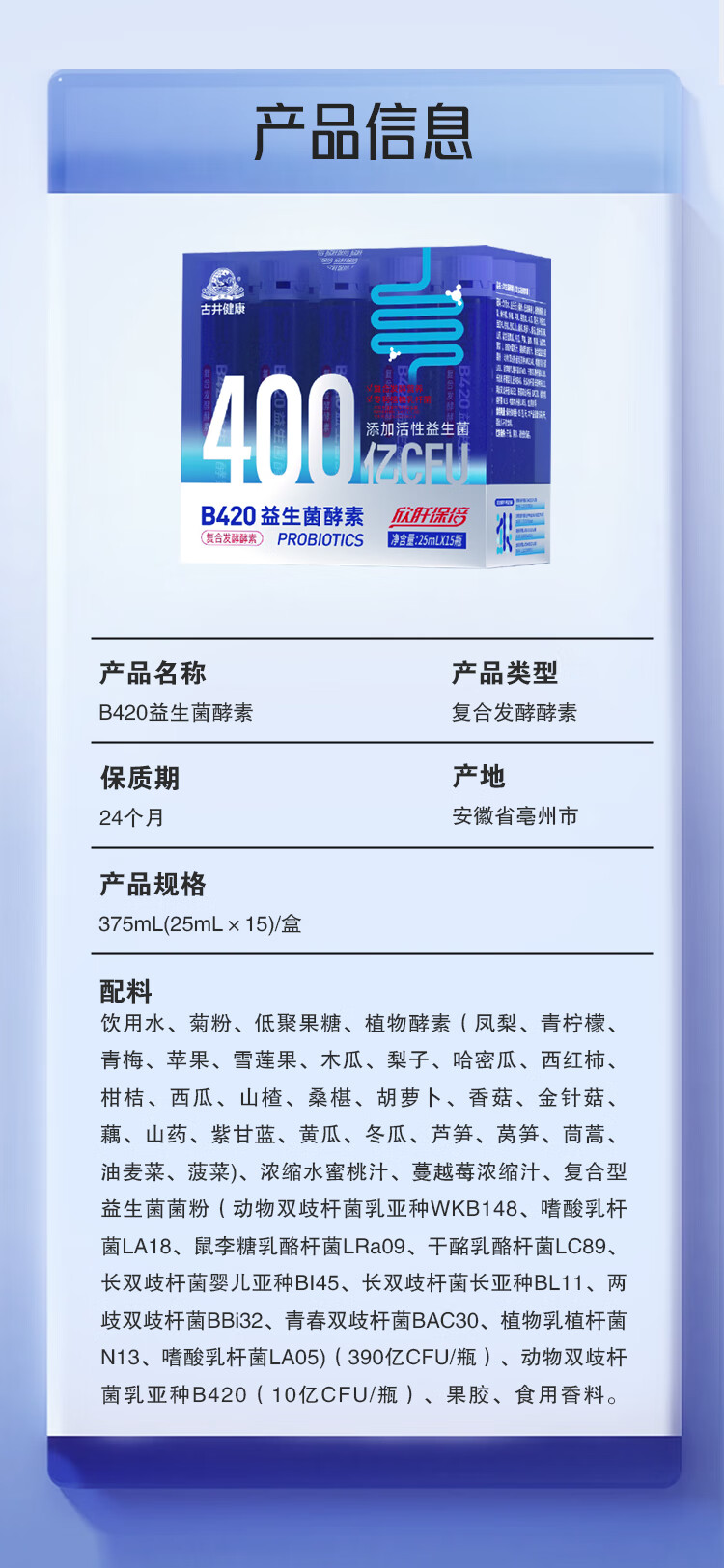 Gujing Health Xin Liver Protective Probiotic Enzyme Plant Fermented Enzyme Liquid Beverage Prebiotics B420 Probiotic Enzyme 25ml*15 Bottles Box