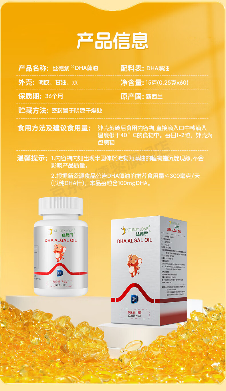 STURDY DHA algae oil soft capsule Life s imported from the United States 60 capsules 1 bottle 60 capsules * 1 bottle Source bottle anti-counterfeiting can be checked