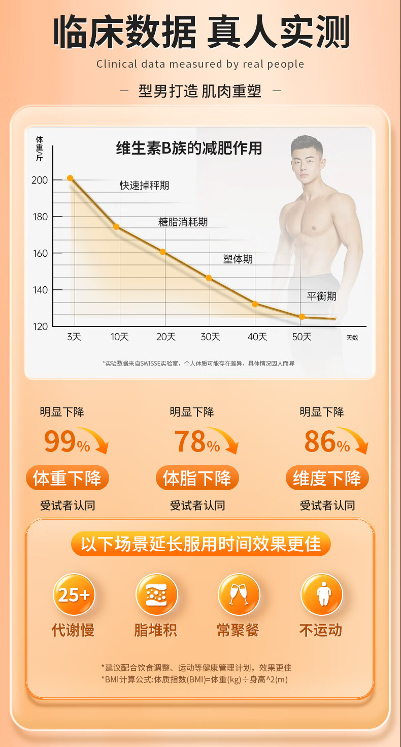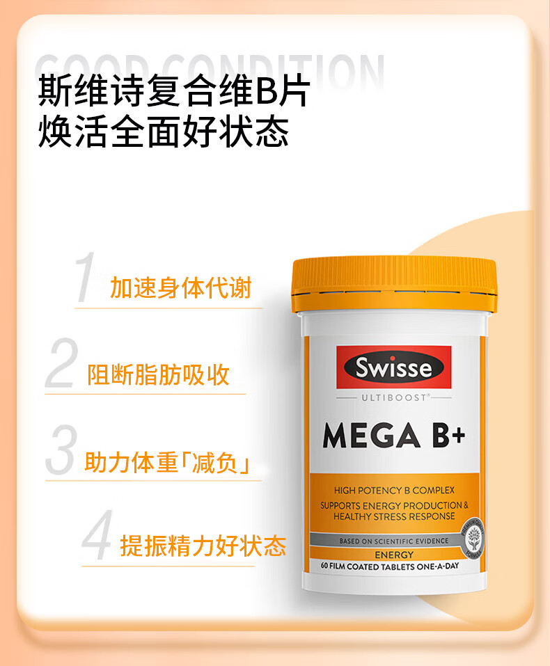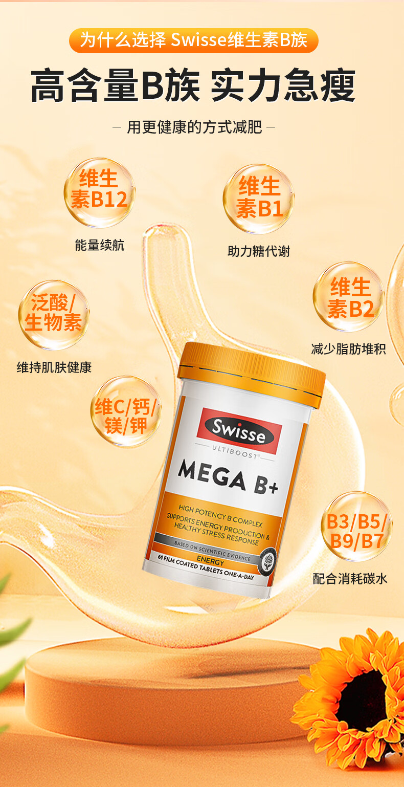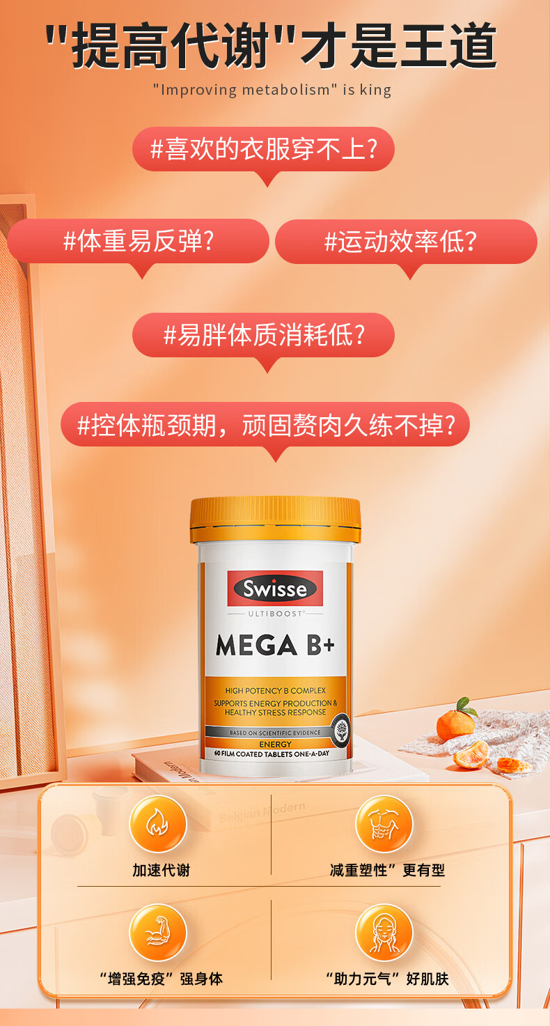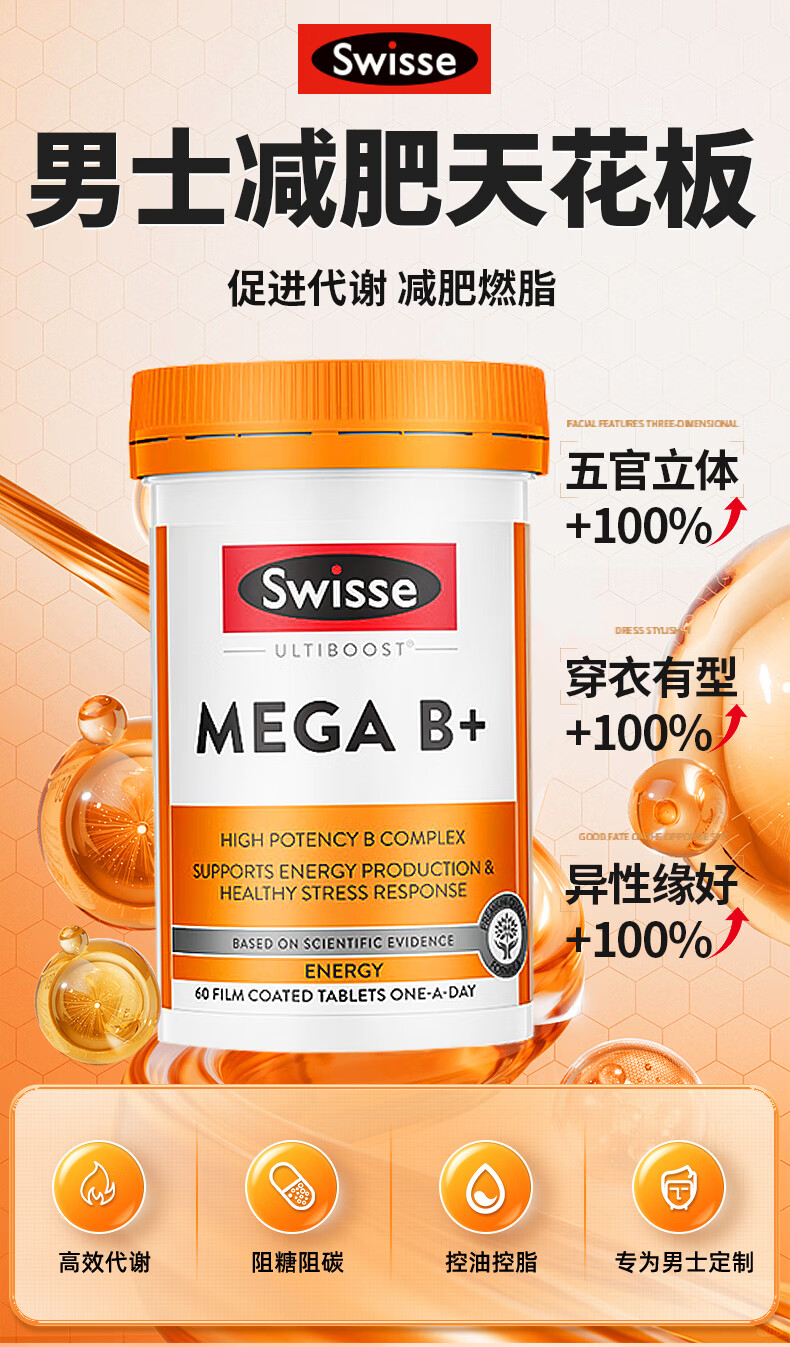 Swisse loses weight, slims belly, drains oil, improves metabolism, whole body, quickly loses weight, men's special vitamin B family fat burning metabolism tablets, metabolic ceiling, vitamin B family 60 tablets