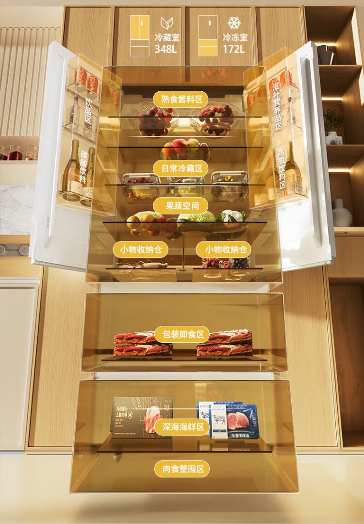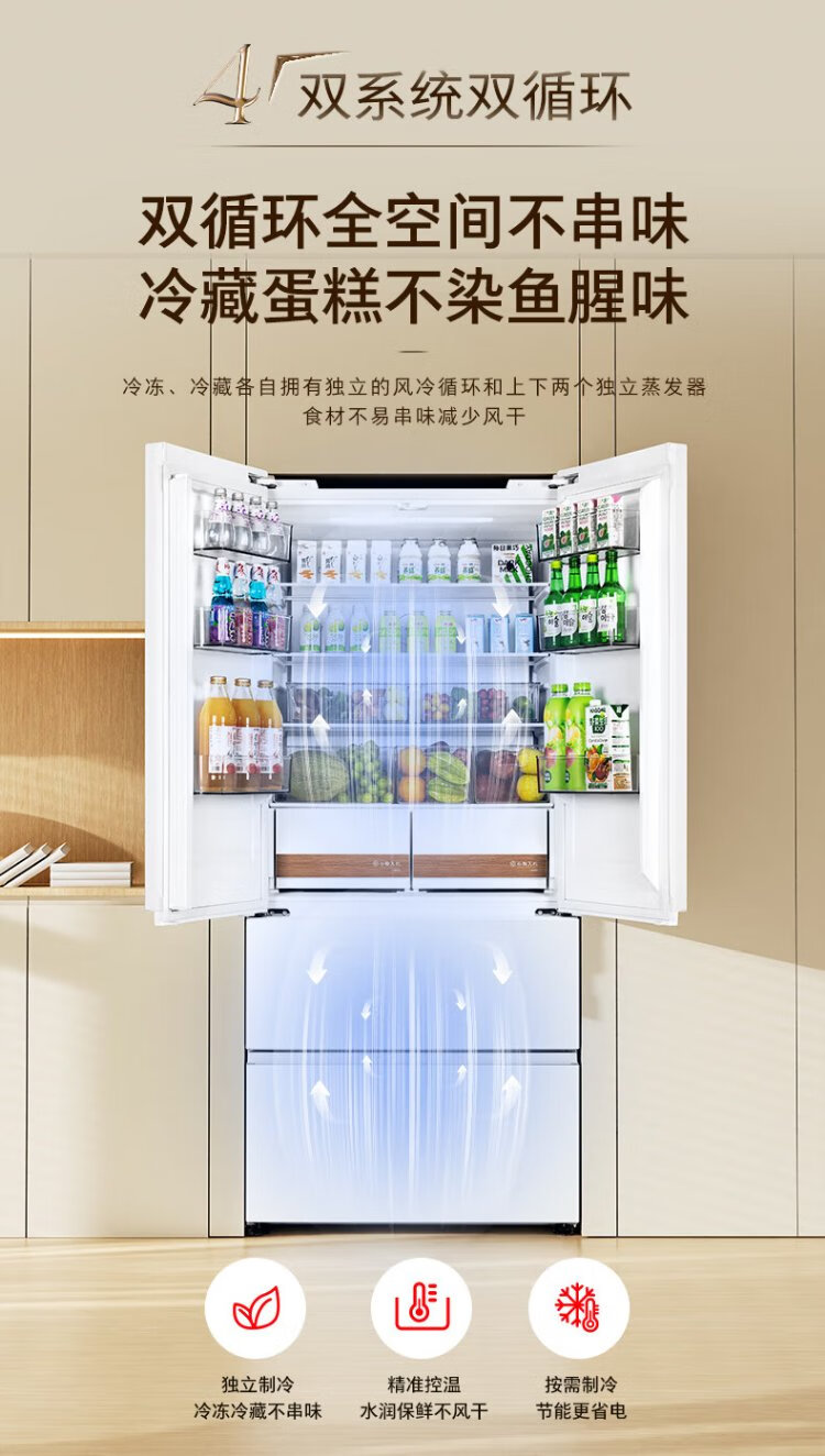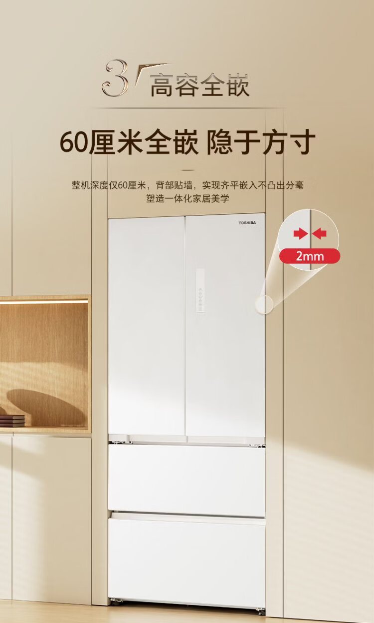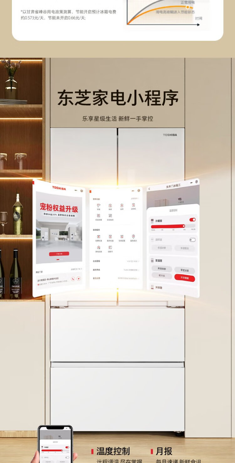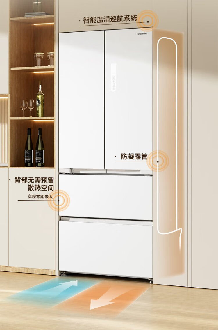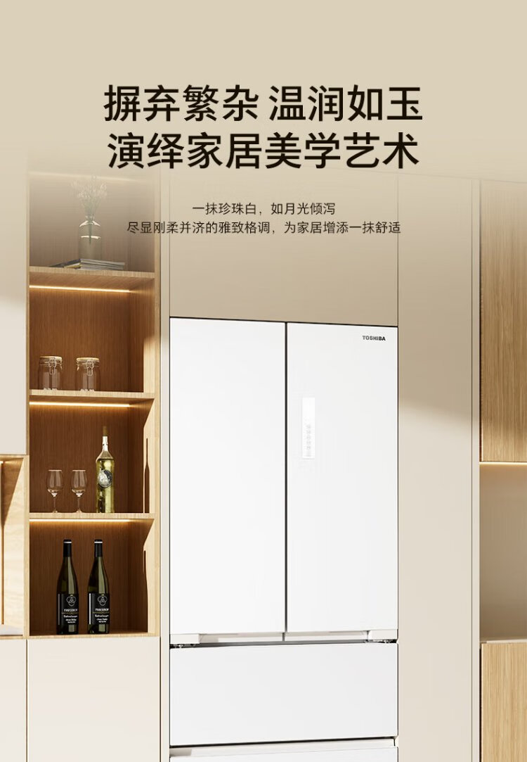 TOSHIBA White Pearl 546 French four-door double-door zero-embedded first-class energy efficiency large-capacity refrigeration dual system multi-cycle energy-saving frost-free state-subsidized household refrigerator GR-RF546WI-PM171 Zhijin White