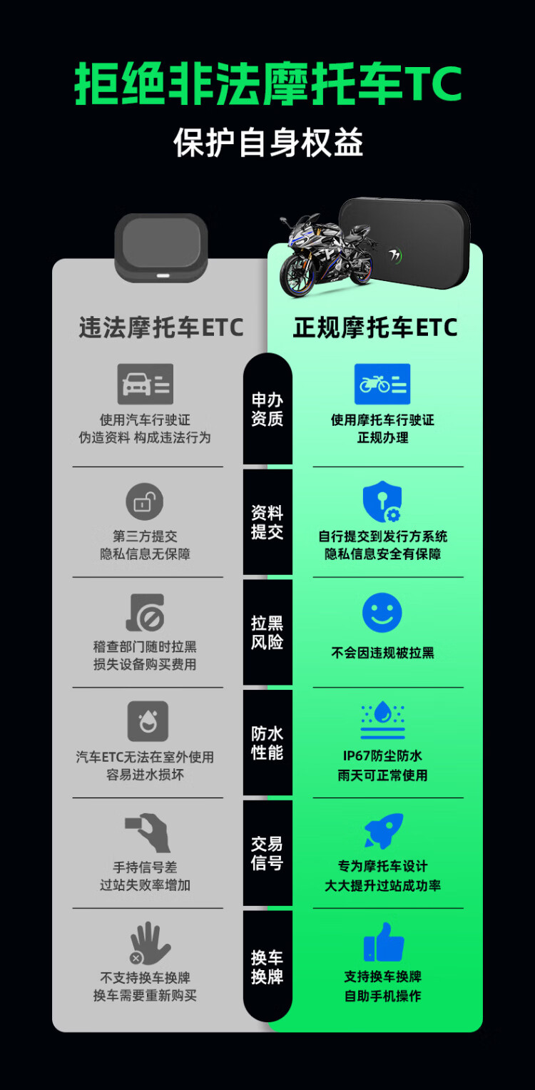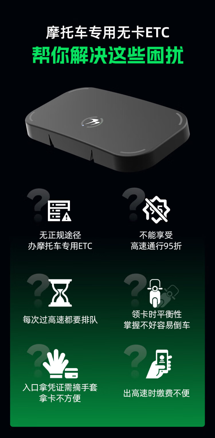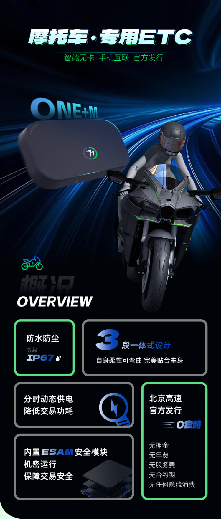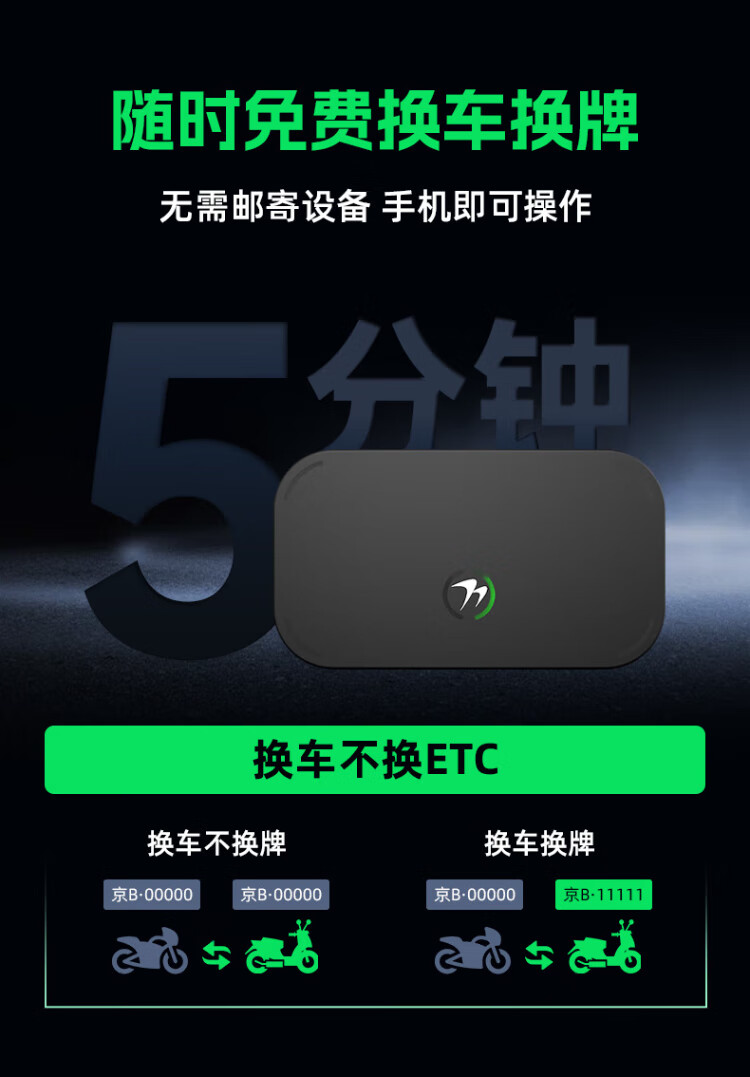ETCSP Motorcycle Intelligent Cardless ETC Management Equipment IPX67 Waterproof and Dustproof National High Speed 95% Foldable IPX67 Level Dustproof and Waterproof + Security Anti-Theft Brush