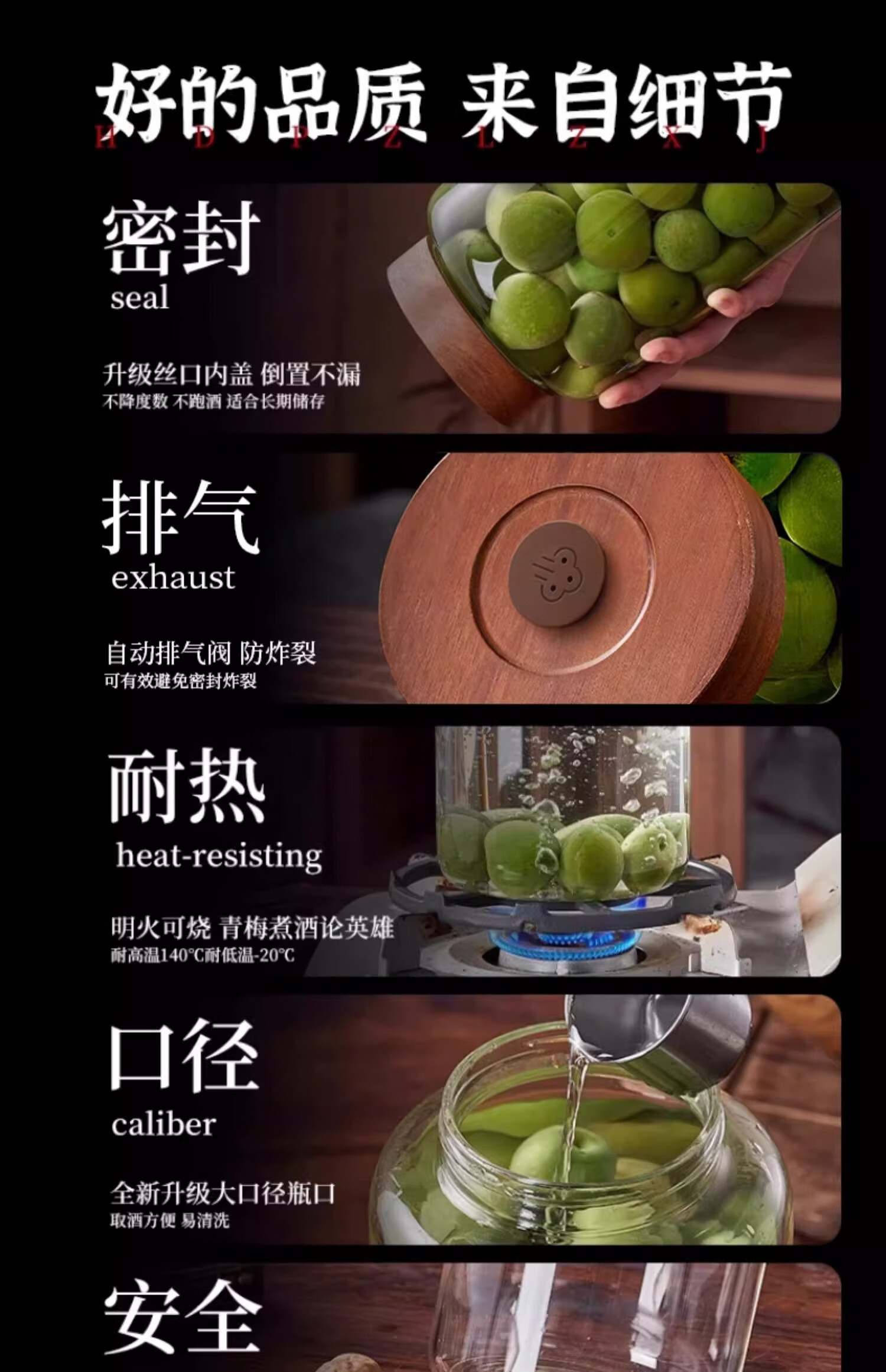 Jinpan bubble wine glass bottle special wine bottle empty bottle food grade sealed jar green plum and red bayberry fruit wine jar wine storage container bubble wine bottle 2000ml about 4 pounds
