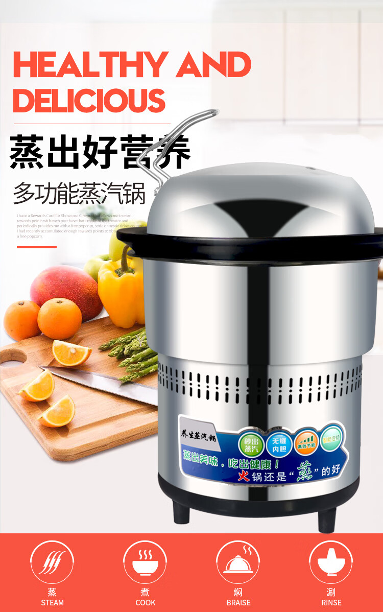 Household steam hot pot table seafood steam pot steaming up and down commercial multifunctional sauna pot electric steamer 2800 62cm 3200 watt ceramic pot glass lid 2 layers