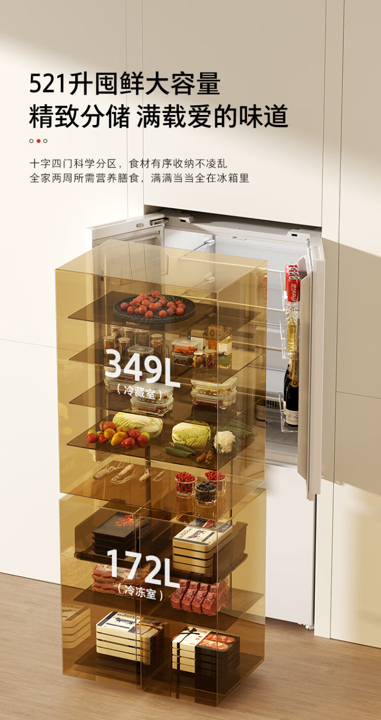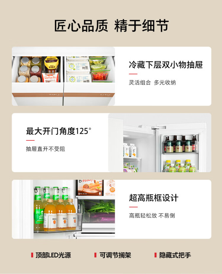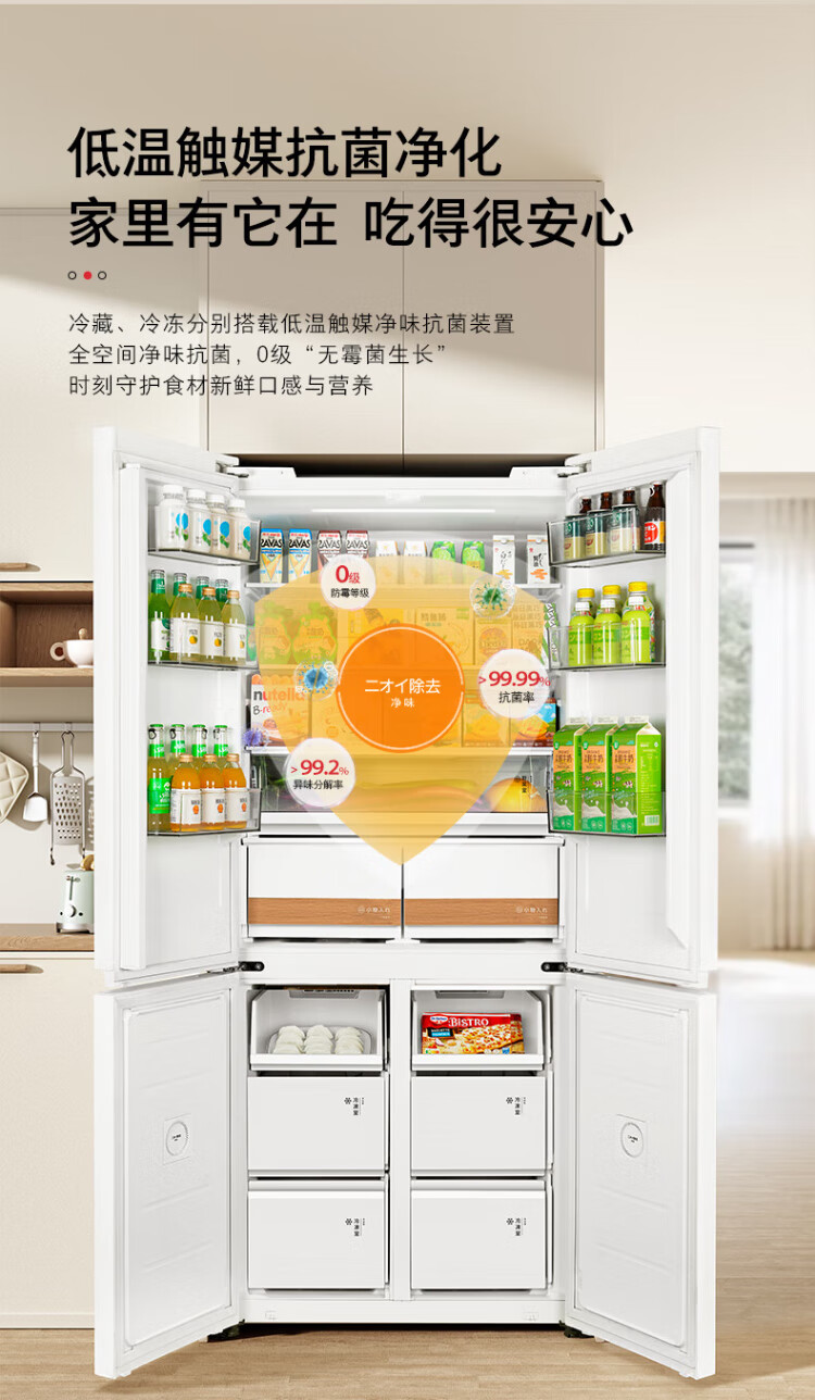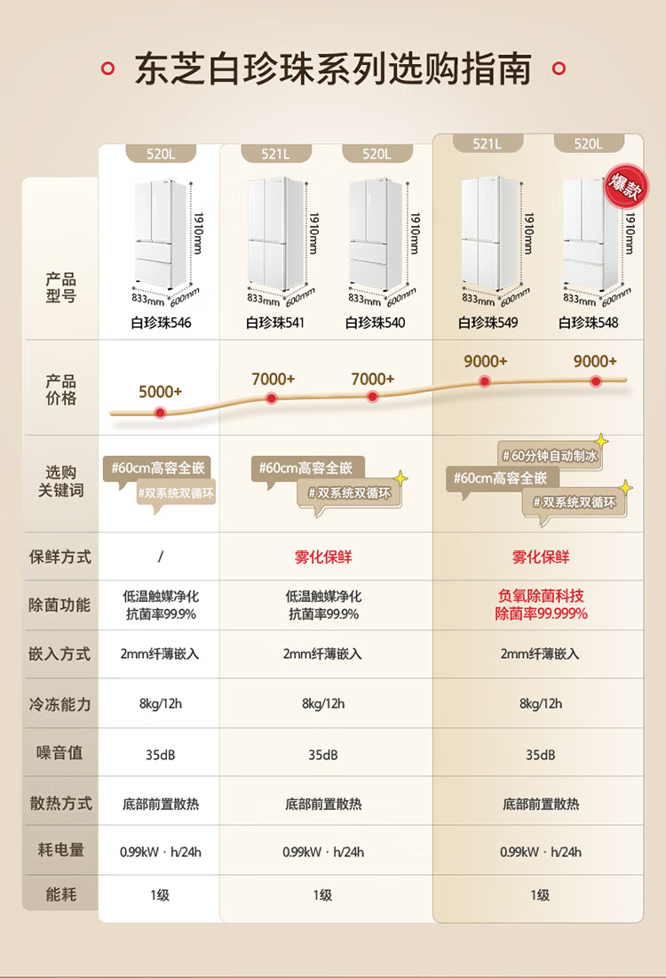 TOSHIBA White Pearl 541 new cross four-door double-door high-volume zero-embedded first-class energy-efficiency energy-saving frost-free dual-system atomized fresh-keeping household refrigerator GR-RF541WI-PM171 Zhijin White