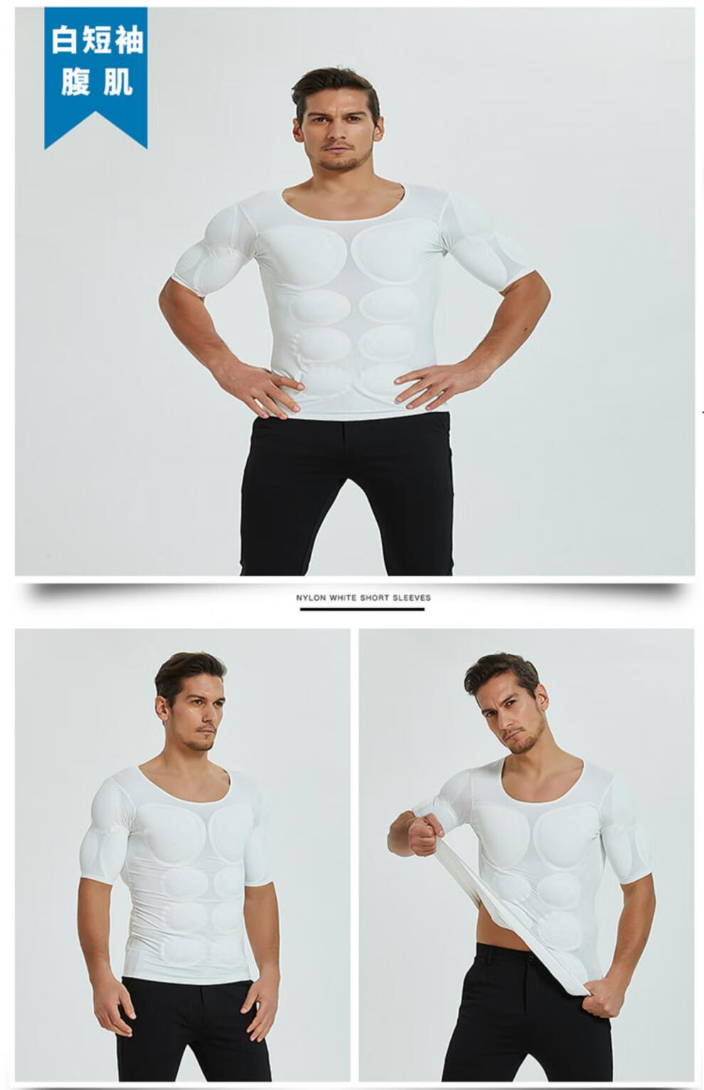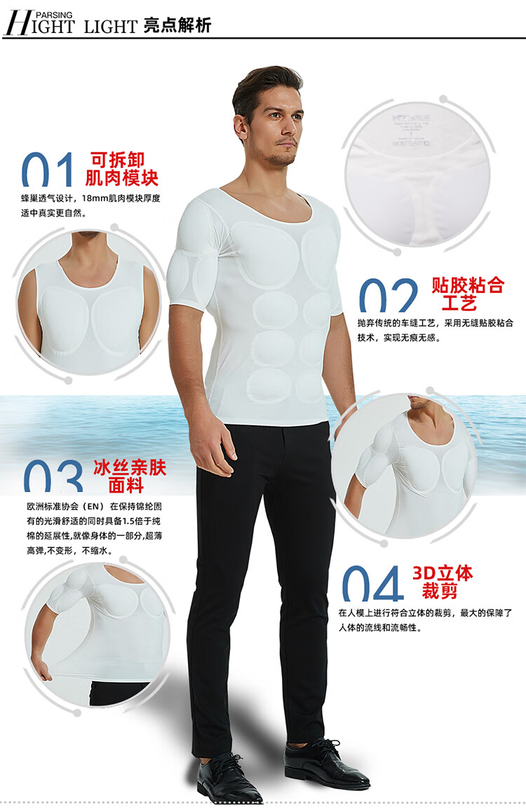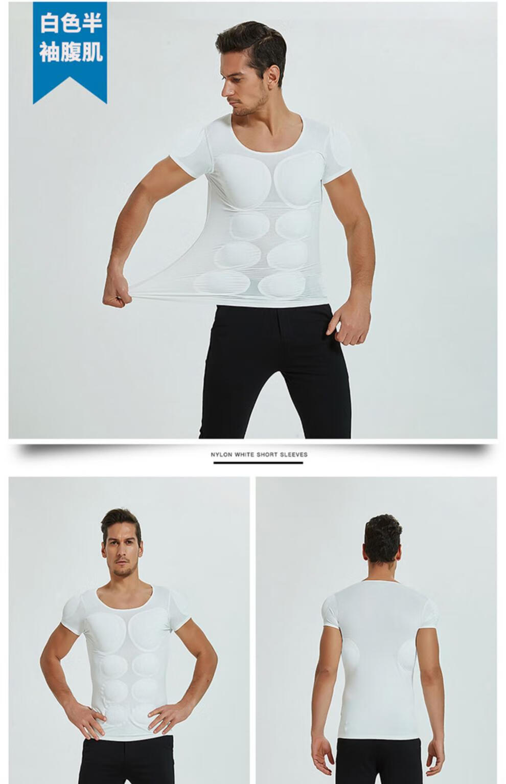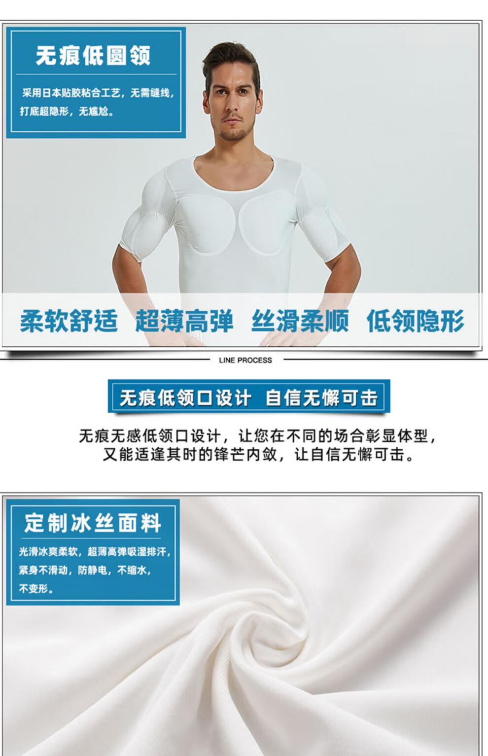 Oxygen New Modeling Seamless Fake Muscle Inner Clothes Men's T-shirt Shoulder Pads Invisible Simulated Fake Chest Muscles Fake Abdominal Muscles Short Sleeves Cos Traceless White Half Sleeve Half (Tenth Generation Muscle Pads Removable L Weight 130kg-150kg