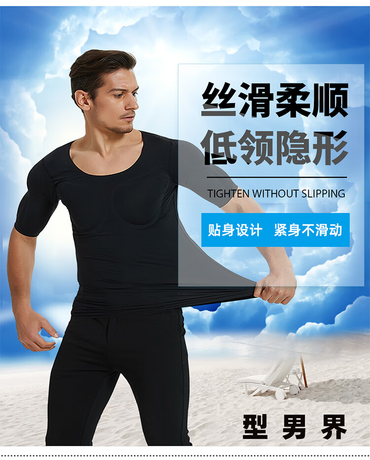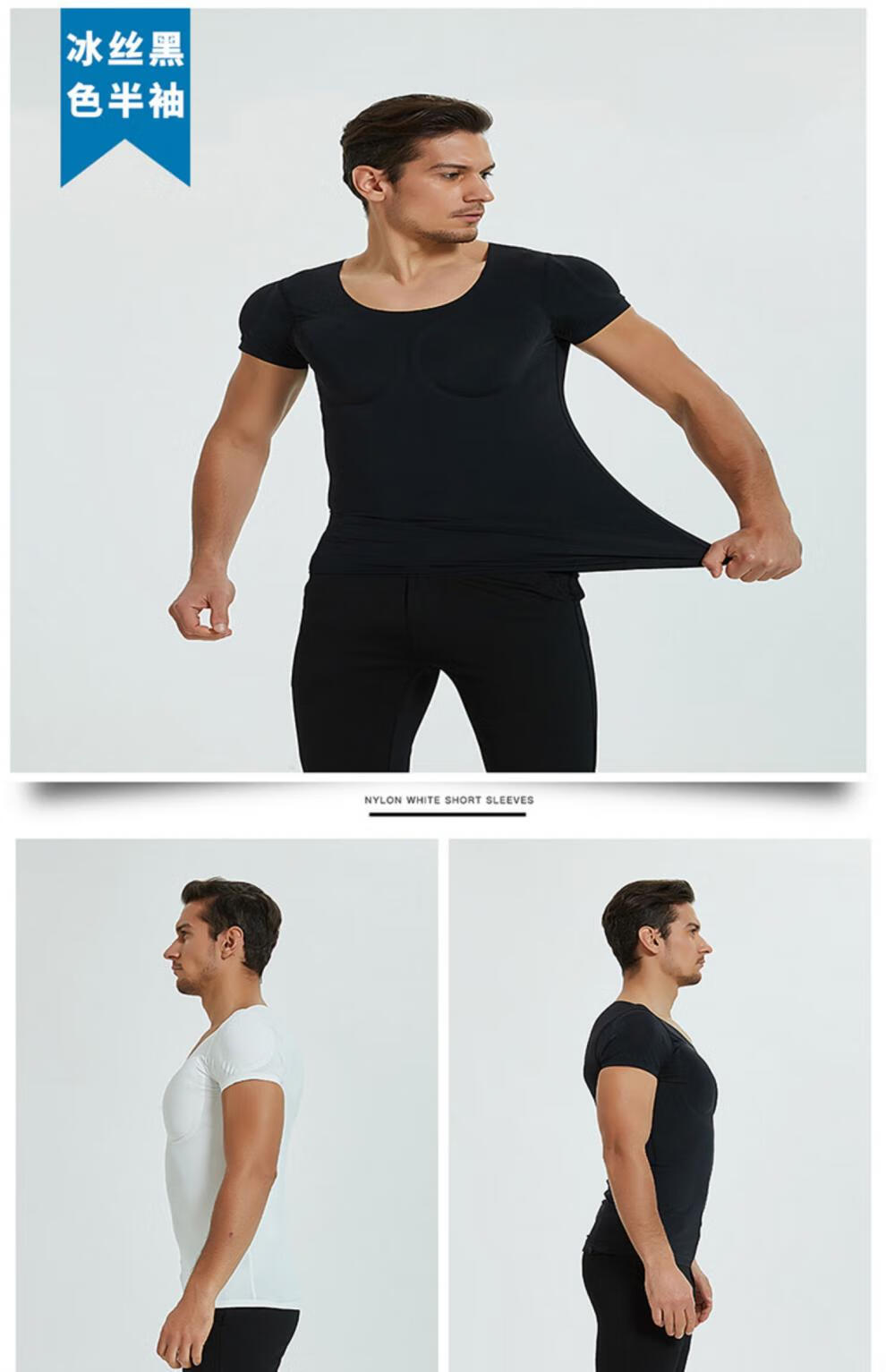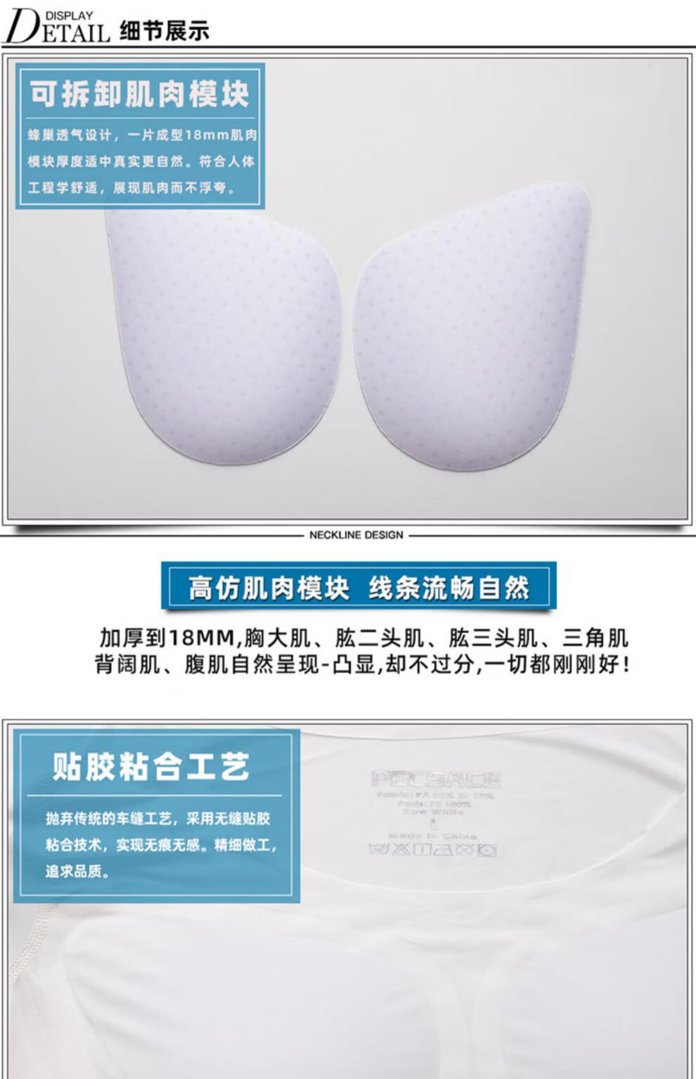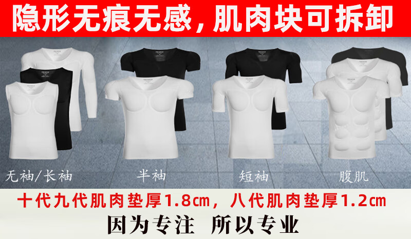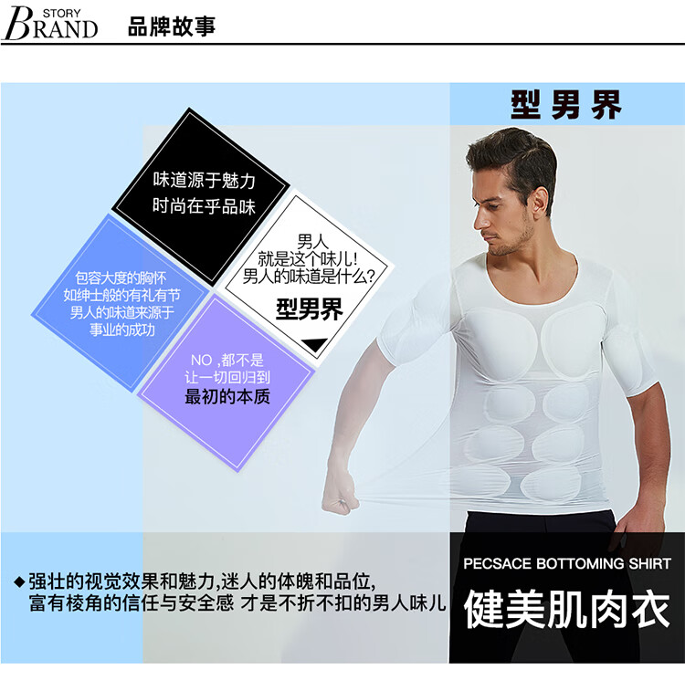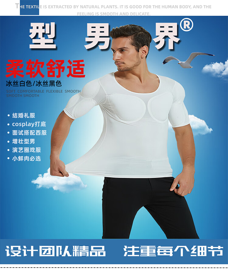Oxygen New Modeling Seamless Fake Muscle Inner Clothes Men's T-shirt Shoulder Pads Invisible Simulated Fake Chest Muscles Fake Abdominal Muscles Short Sleeves Cos Traceless White Half Sleeve Half (Tenth Generation Muscle Pads Removable L Weight 130kg-150kg