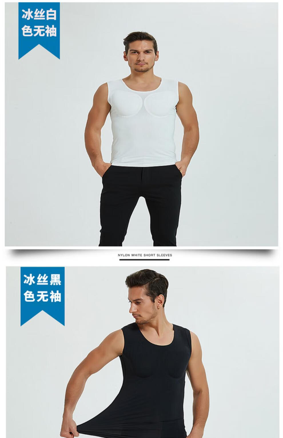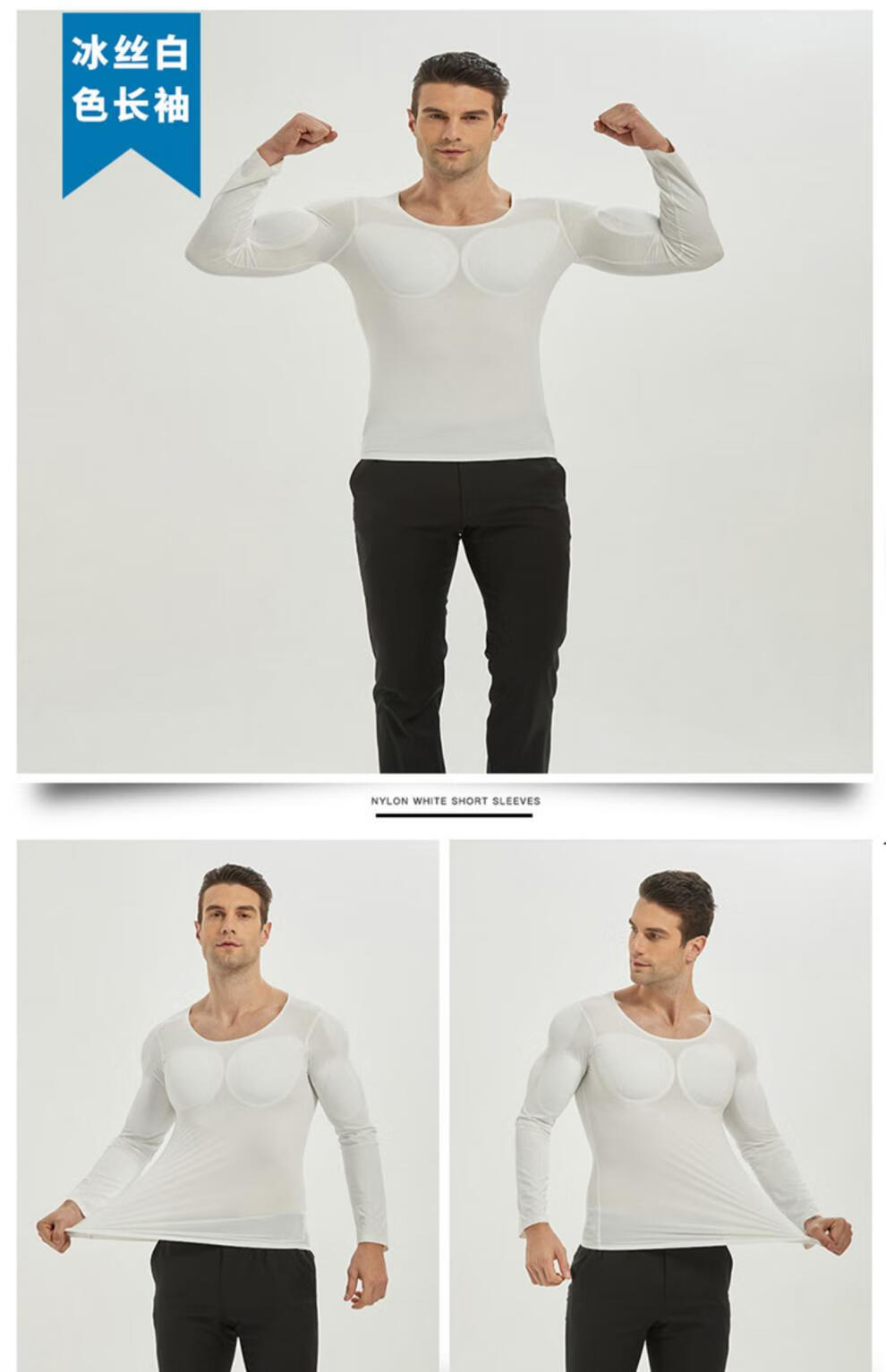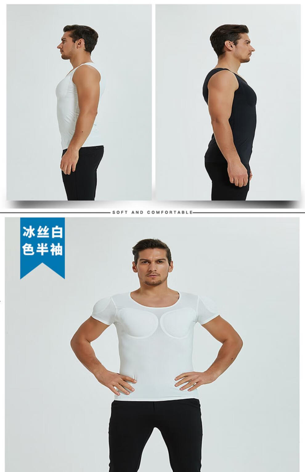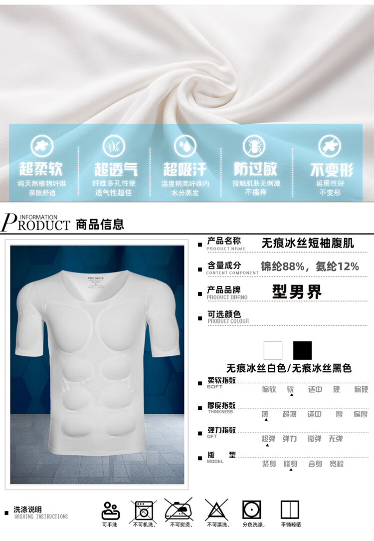 Oxygen New Modeling Seamless Fake Muscle Inner Clothes Men's T-shirt Shoulder Pads Invisible Simulated Fake Chest Muscles Fake Abdominal Muscles Short Sleeves Cos Traceless White Half Sleeve Half (Tenth Generation Muscle Pads Removable L Weight 130kg-150kg