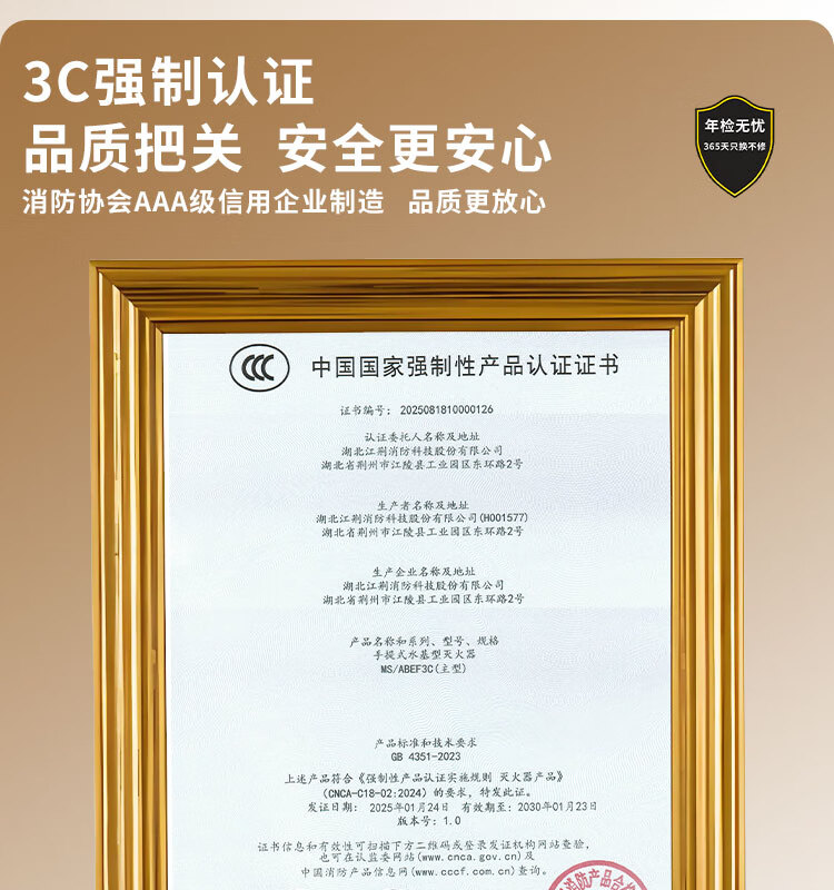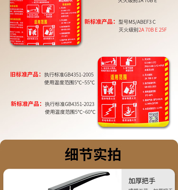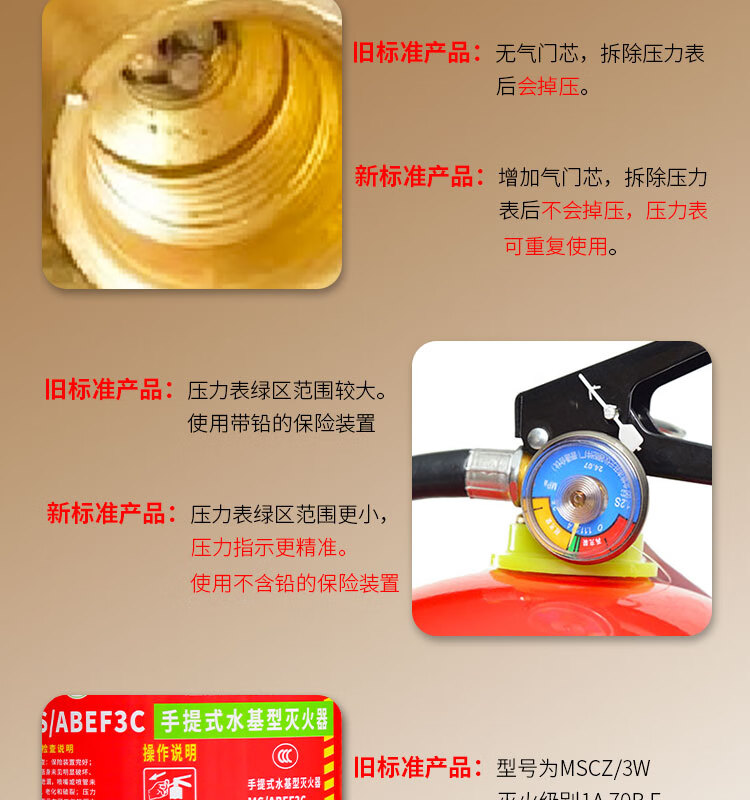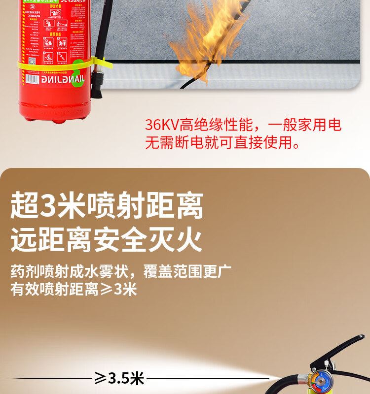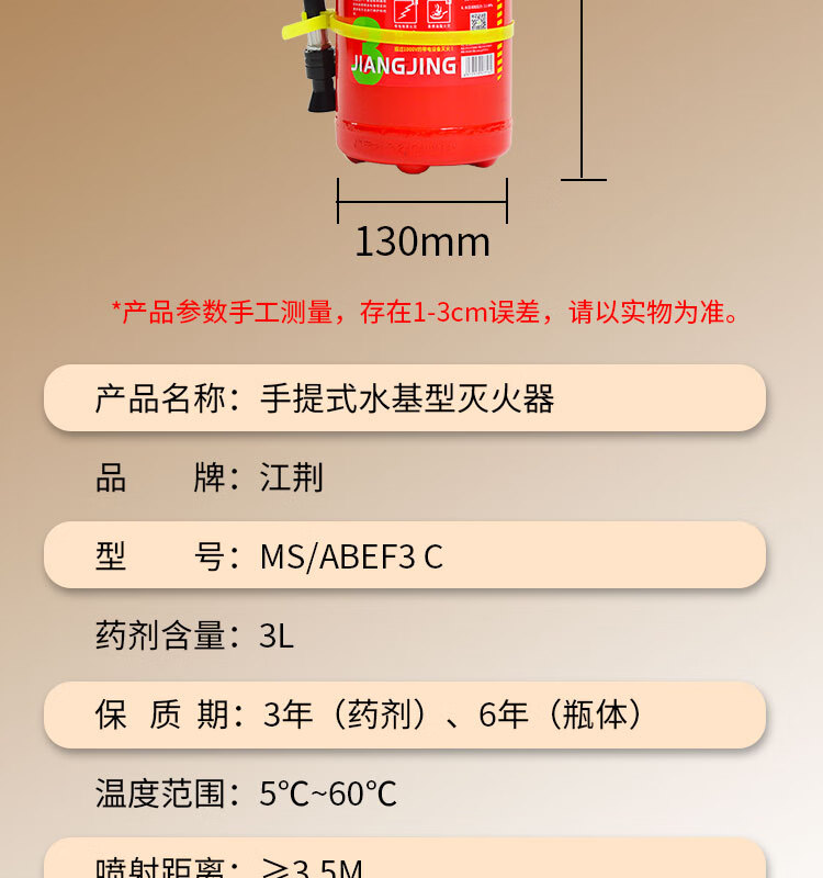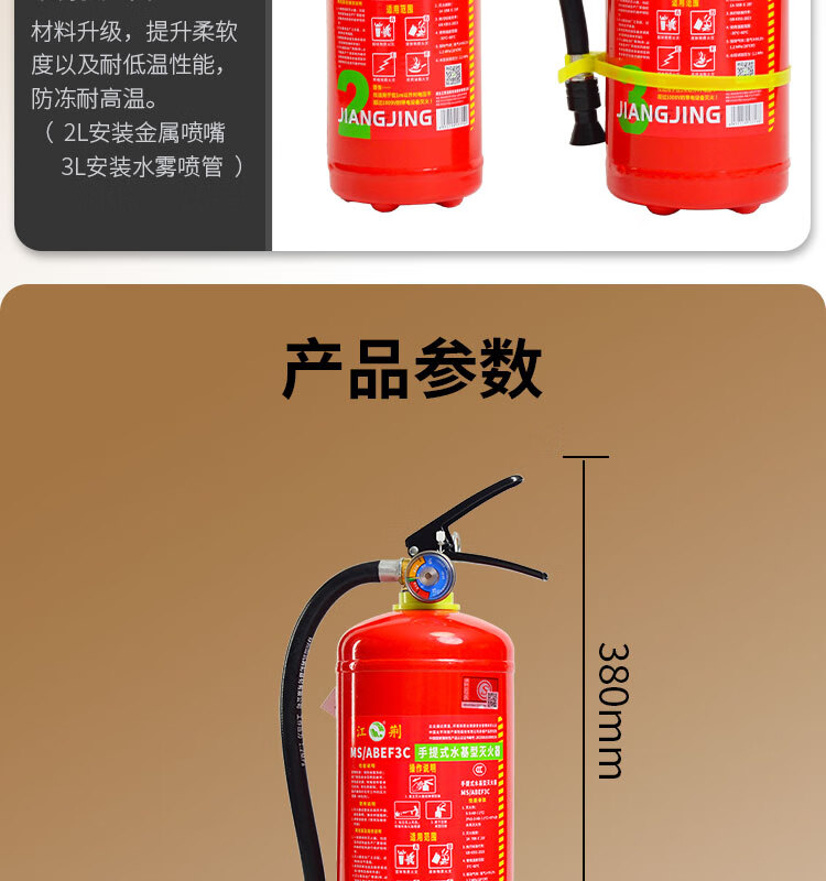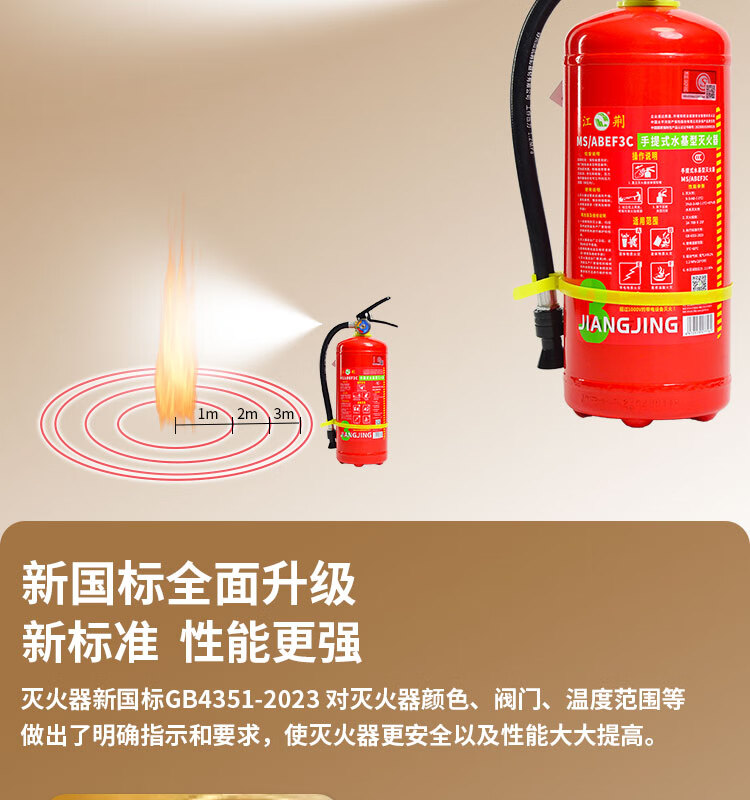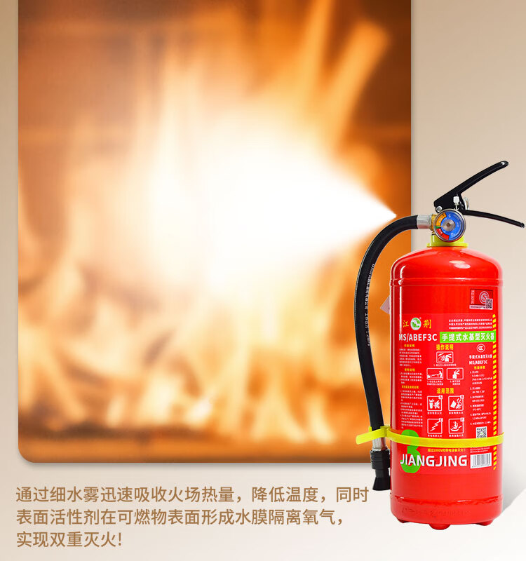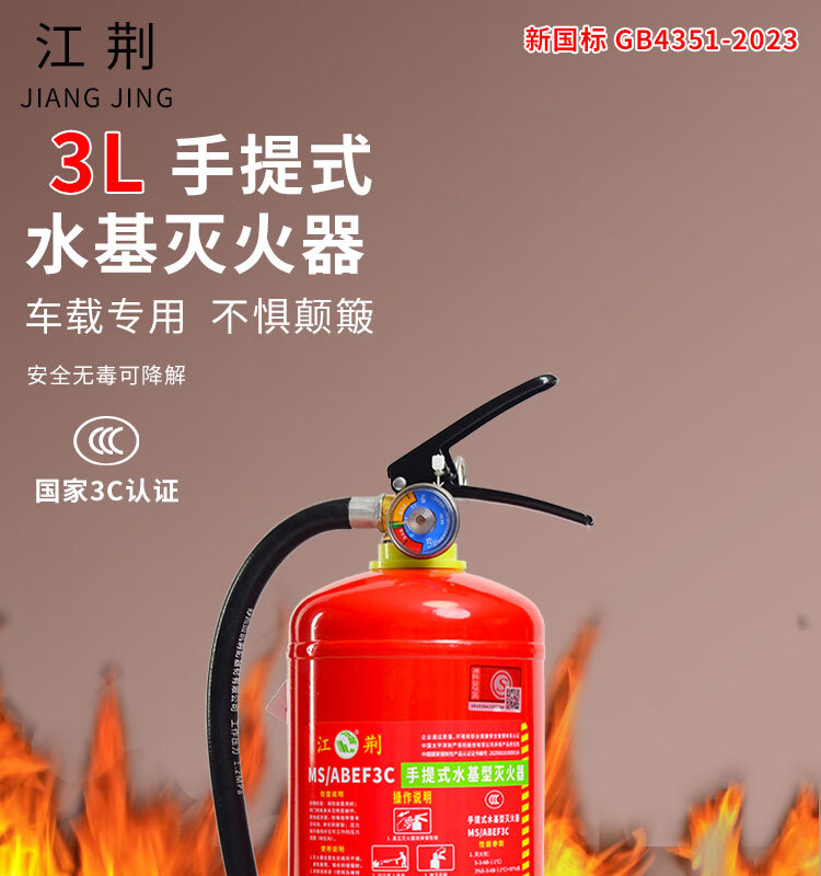 Jiangjing's 25th New National Standard Portable Water Mist Water-based Fire Extinguisher 3L Vehicle-mounted Special Enterprise Commercial CCC Certification 3L Water-based MS/ABEF3C