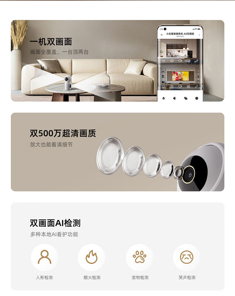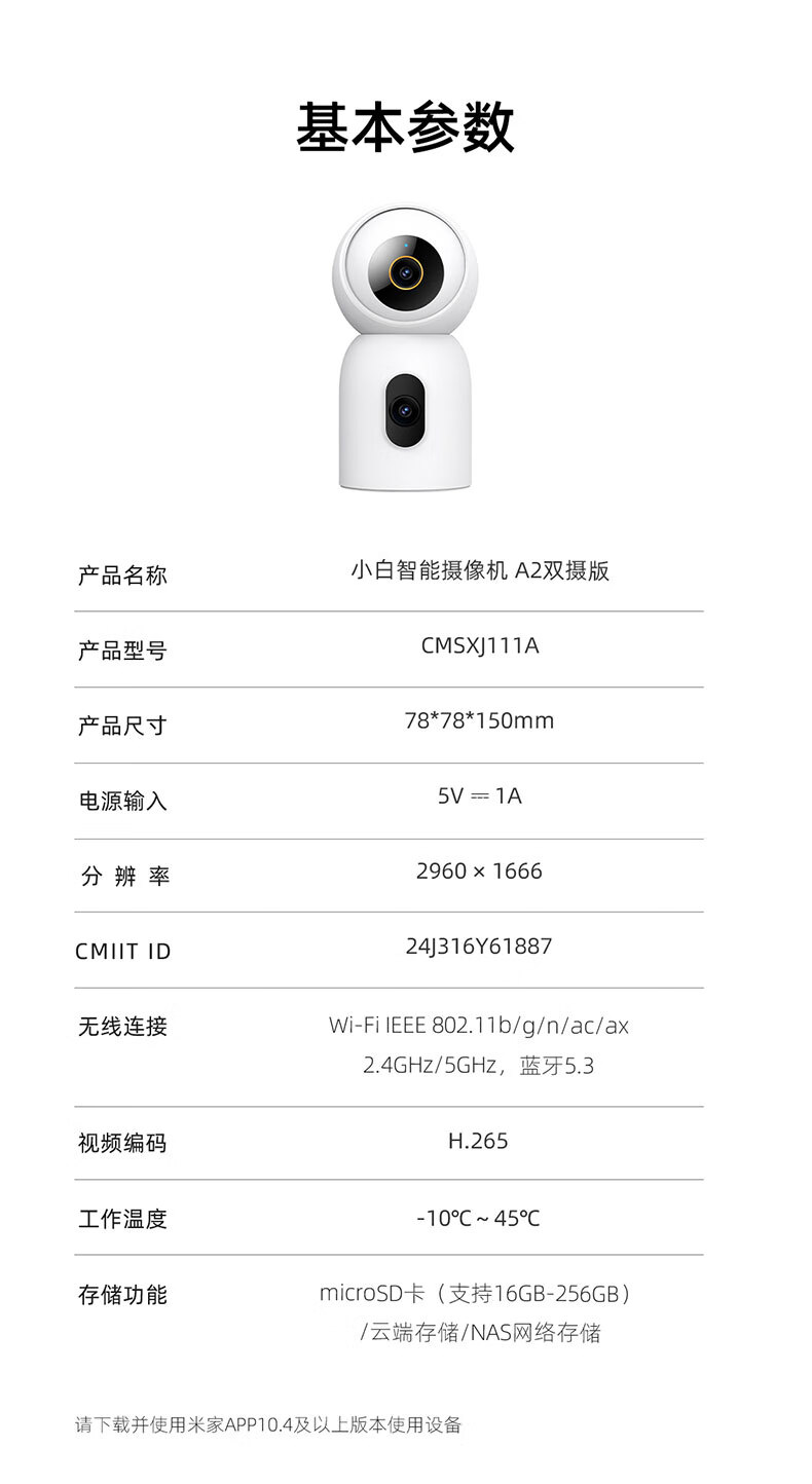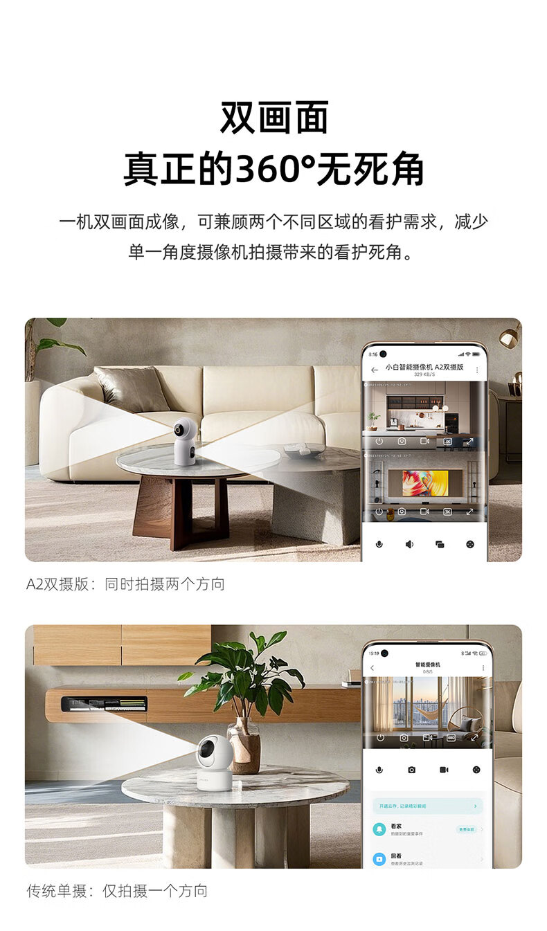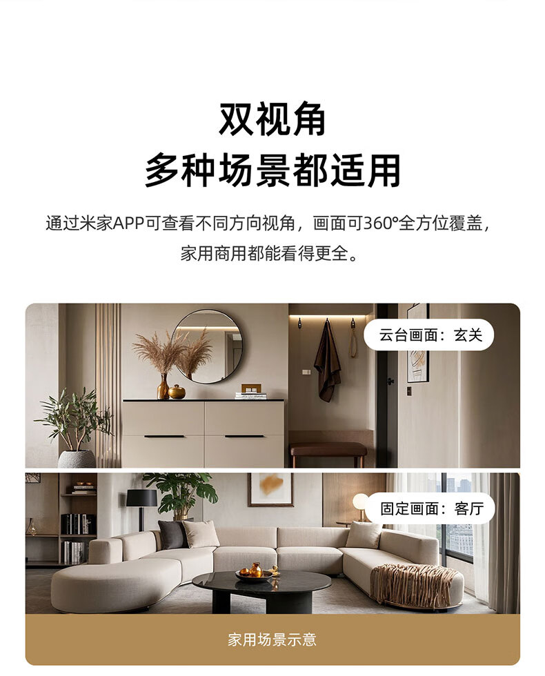 Xiaobai accesses Mijia surveillance camera home monitor 360-degree no blind spots with night vision panoramic voice indoor home mobile phone remote wireless high-definition voice dialogue dual camera 10 million + 5G dual frequency + 64G