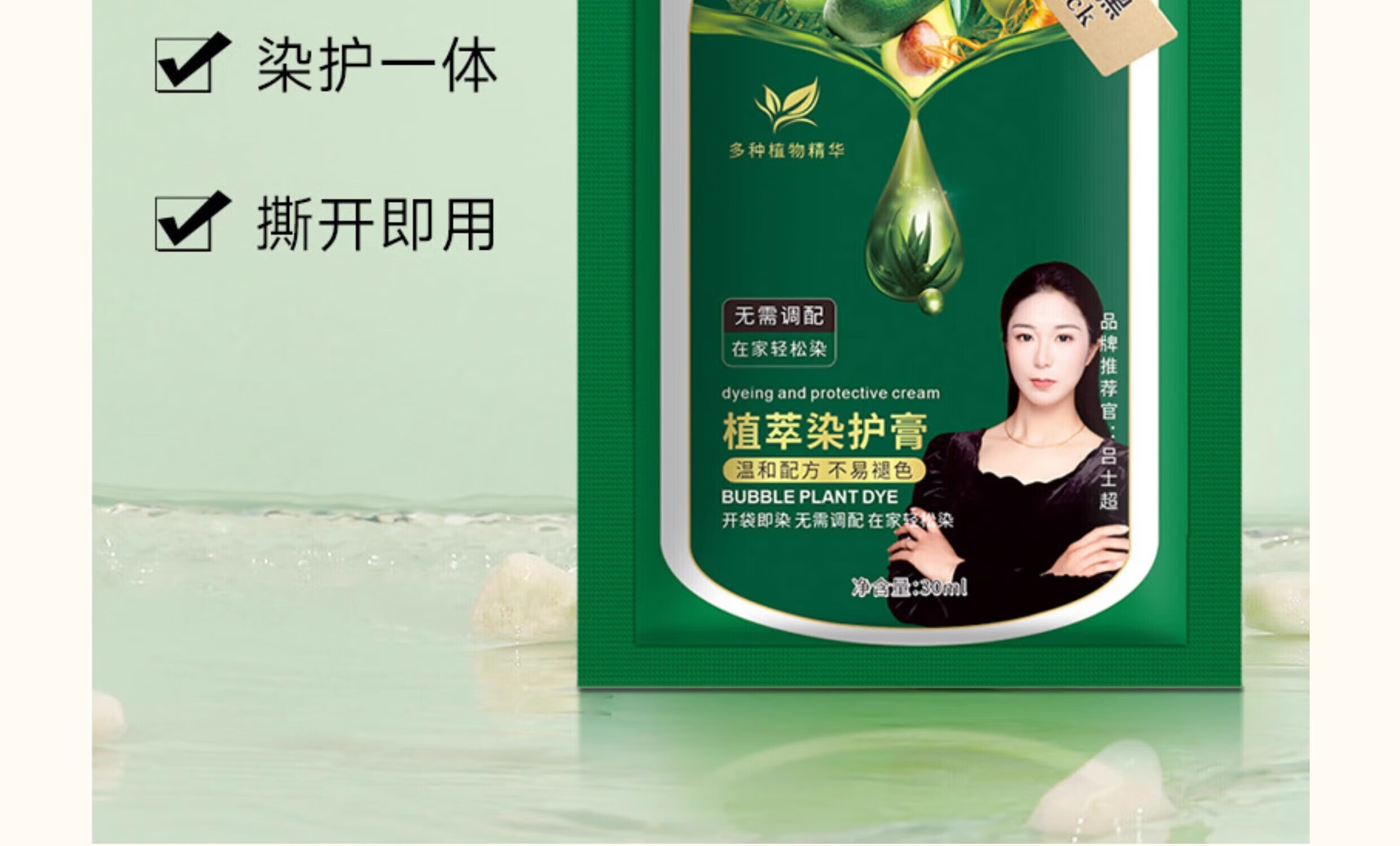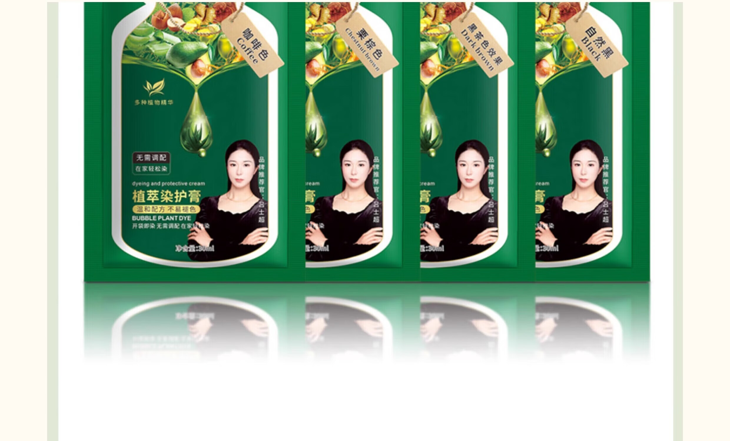 Hair dye 100% natural plant hair dye cream natural black pure non-stick scalp men and women general one wash black hair natural black one pack 10 bags