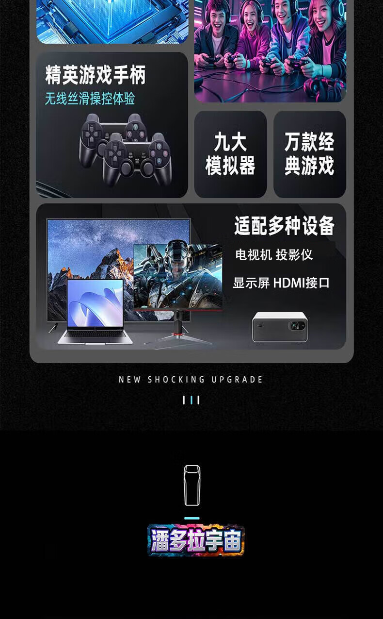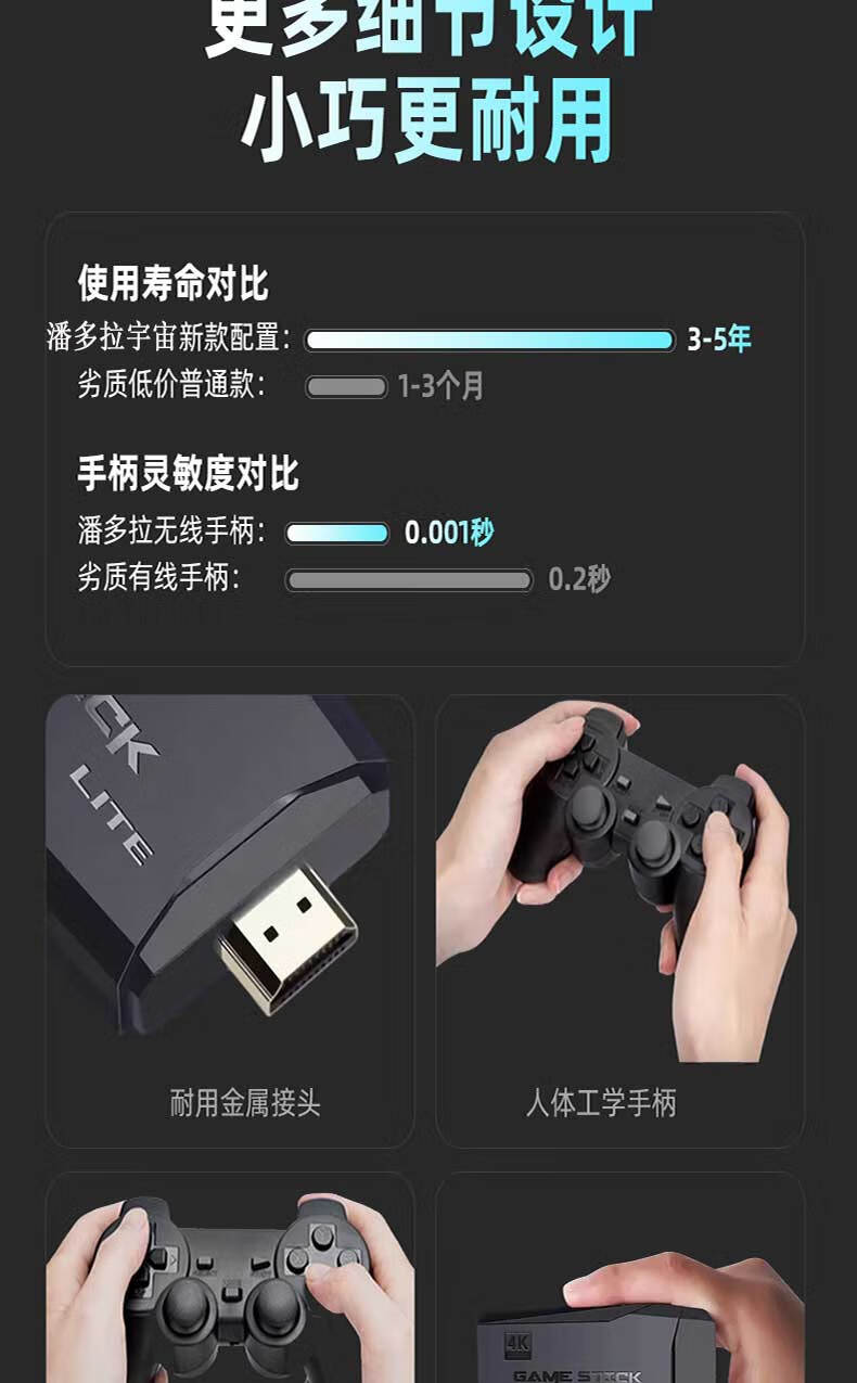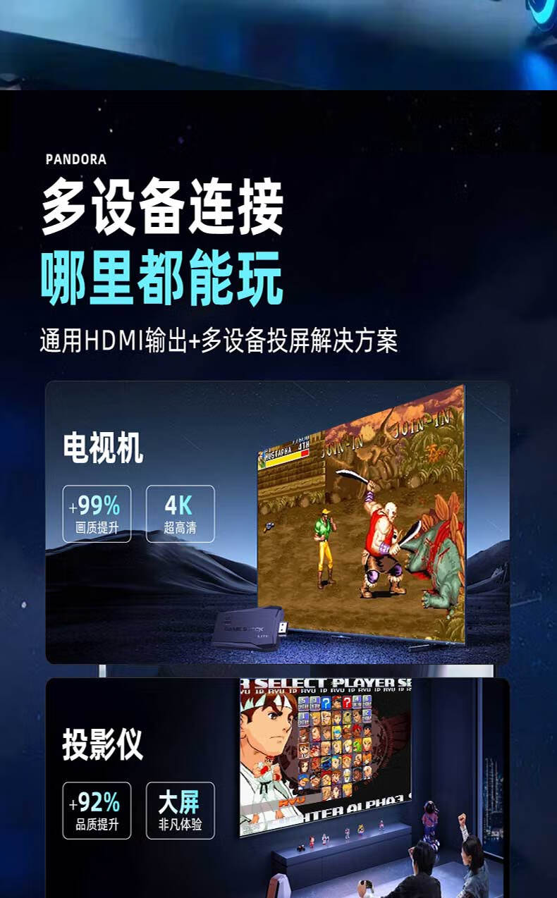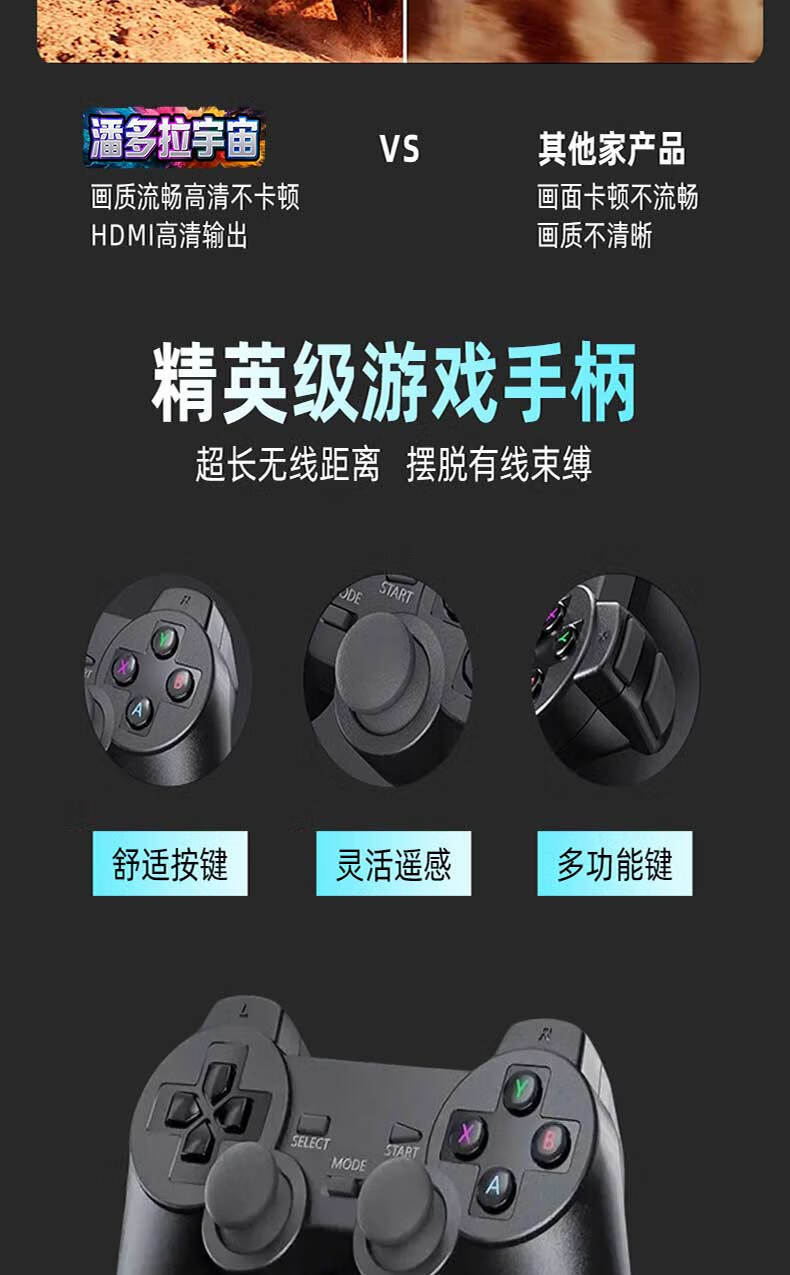 Pandora universe home game console connected to TV arcade dual wireless controller home console classic nostalgic red and white console joystick fighting battle game box Children's Day gift 64G + dual wireless controller + 20,000 games