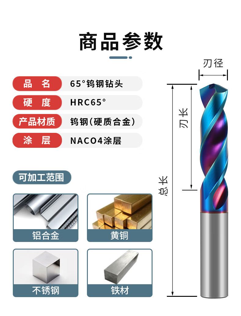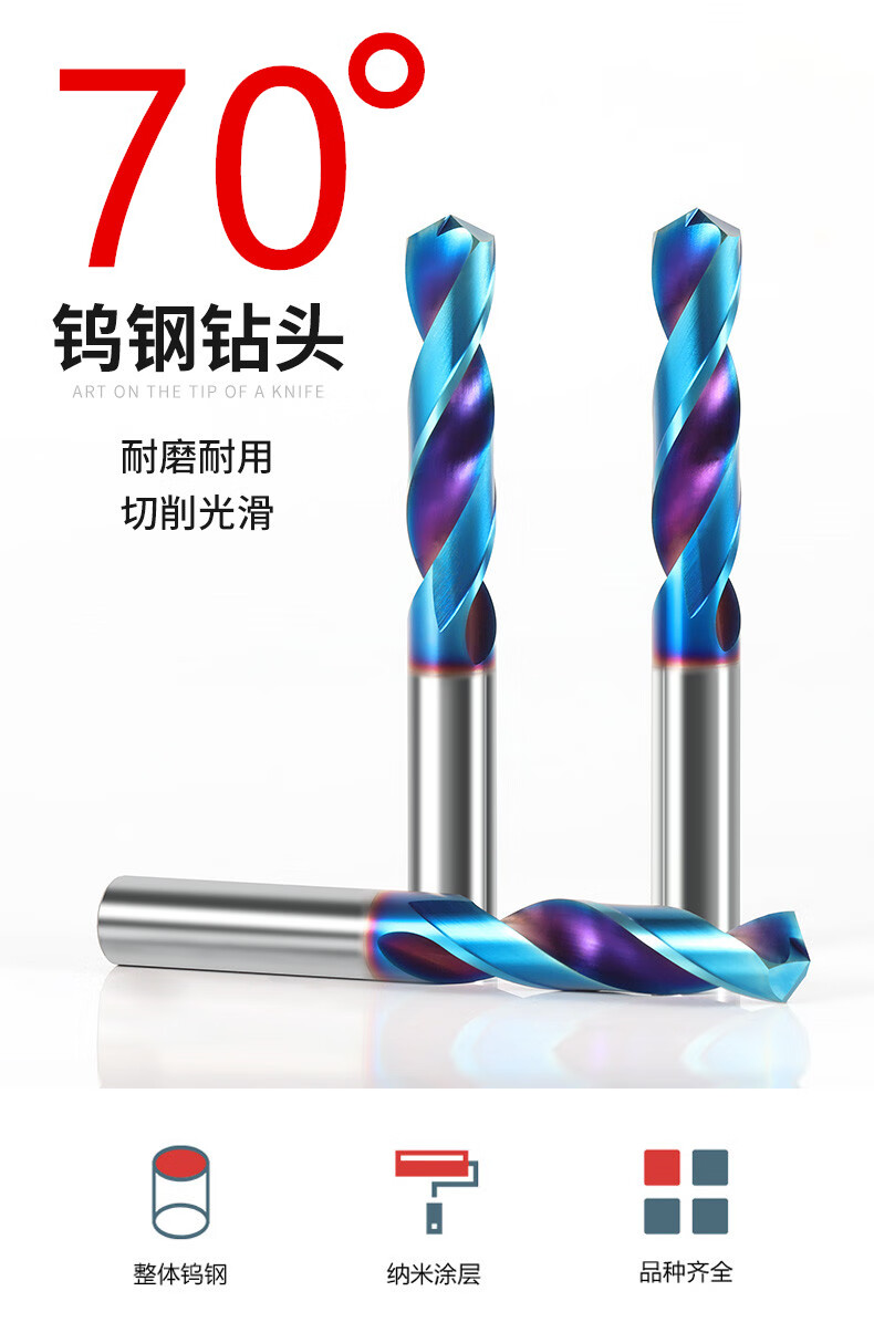 70-degree tungsten steel drill imported coated super-hard extended punching straight handle solid carbide twist drill titanium alloy 1.6mm blade length 20 total length 40