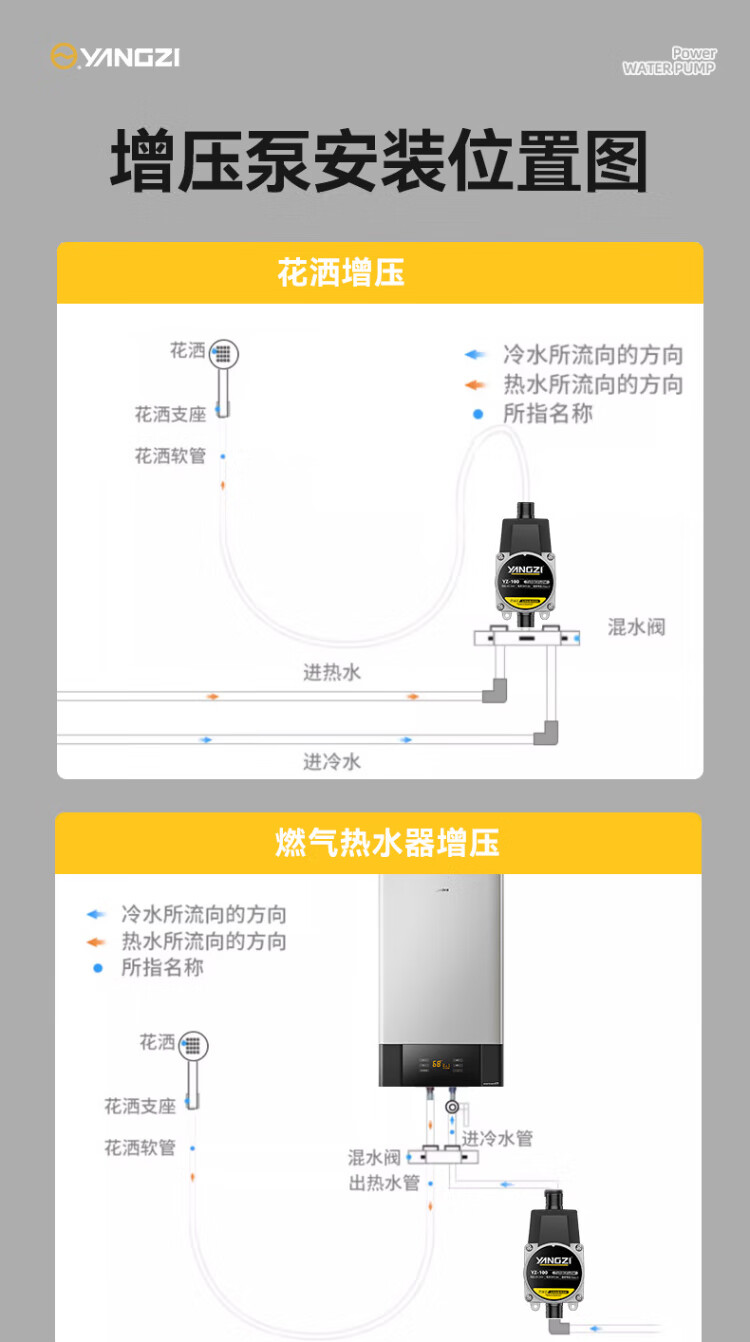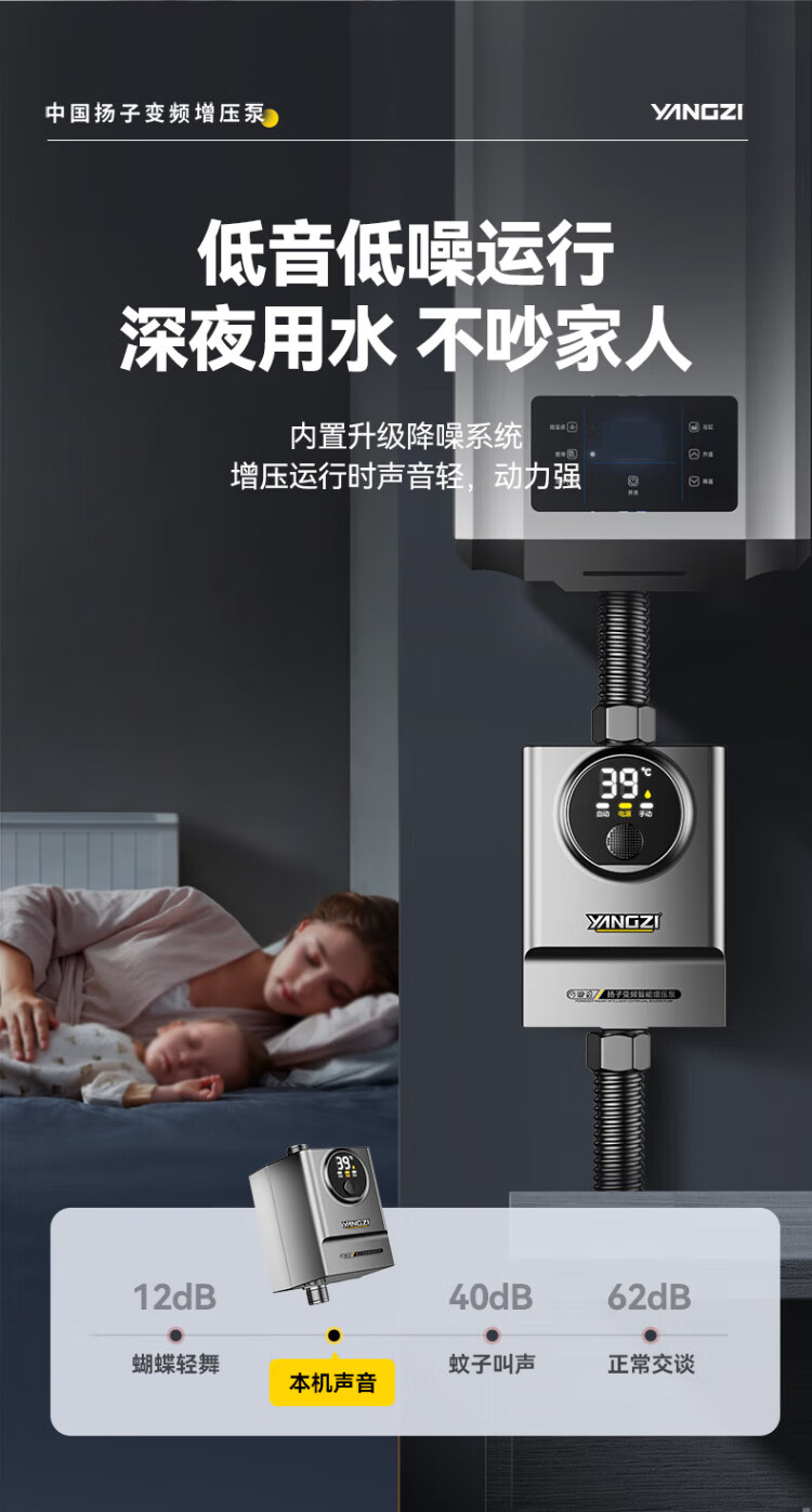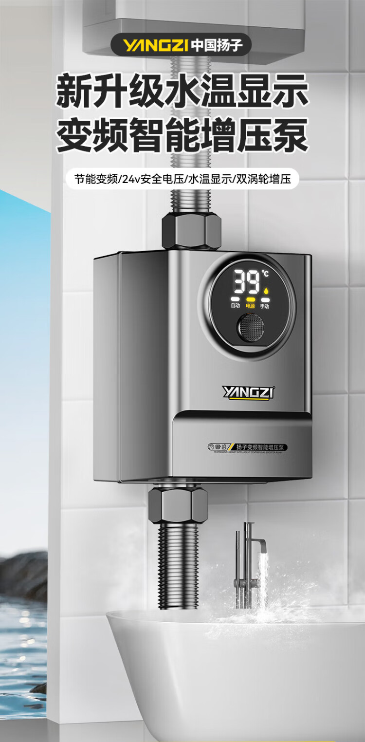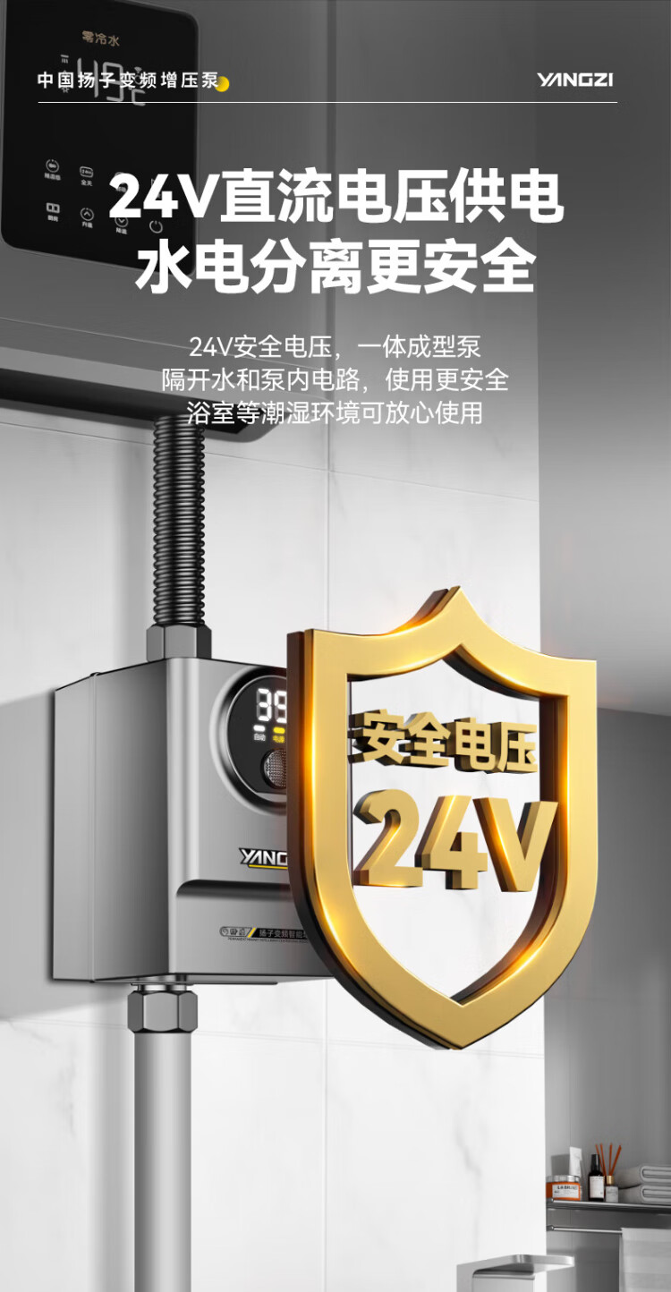 Yangzi booster pump household fully automatic bass booster water heater shower bath tap water pipe water pump 90W 24V energy storage booster powerful model