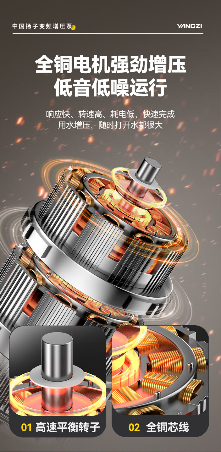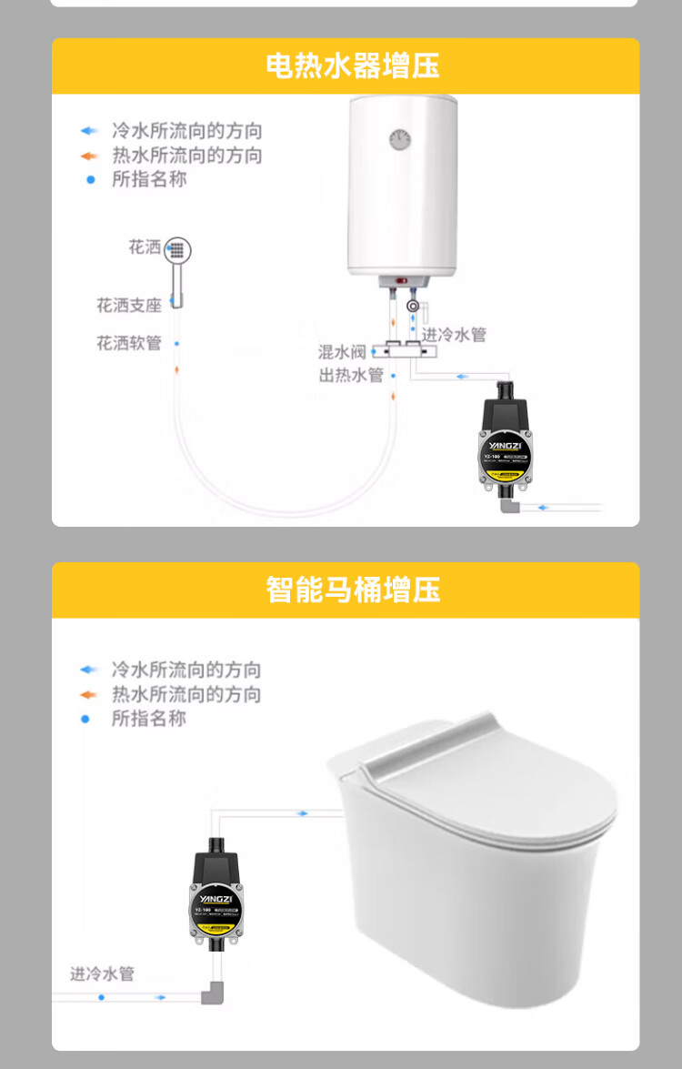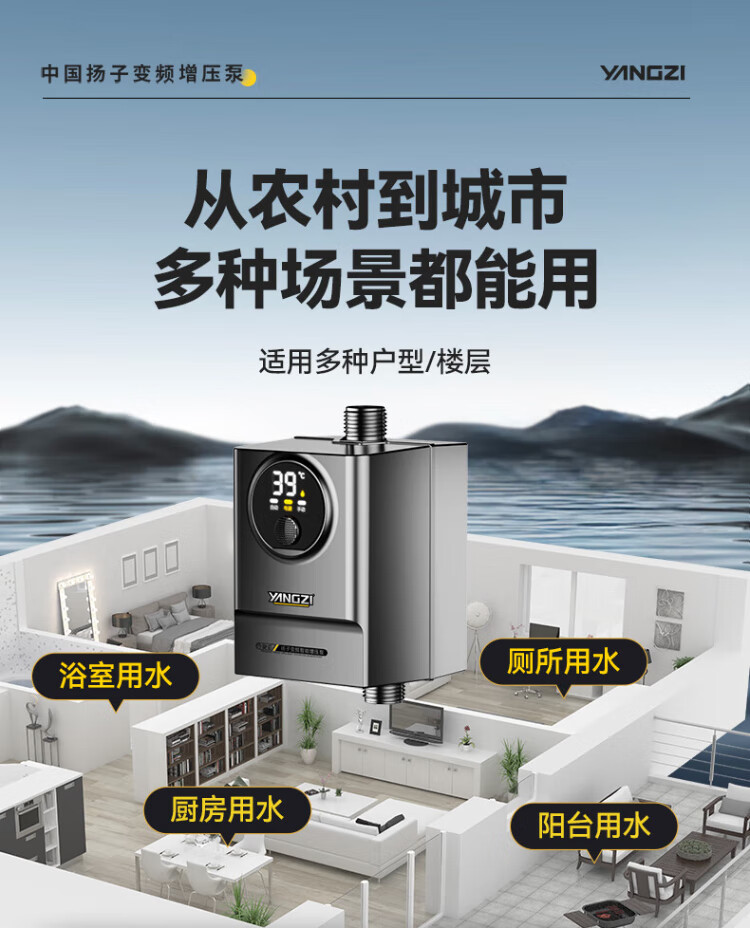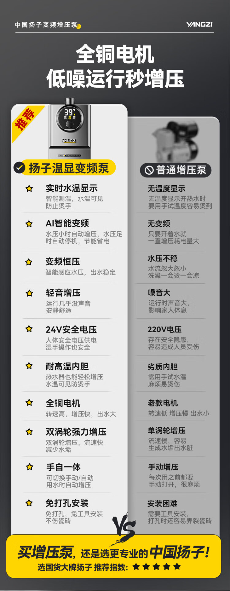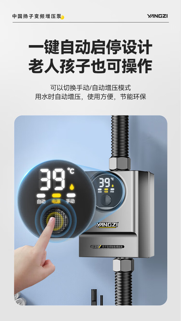 Yangzi booster pump household fully automatic bass booster water heater shower bath tap water pipe water pump 90W 24V energy storage booster powerful model