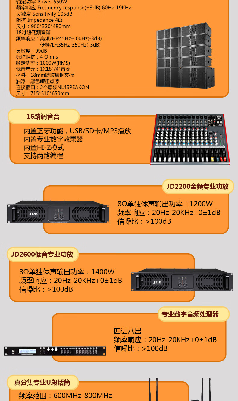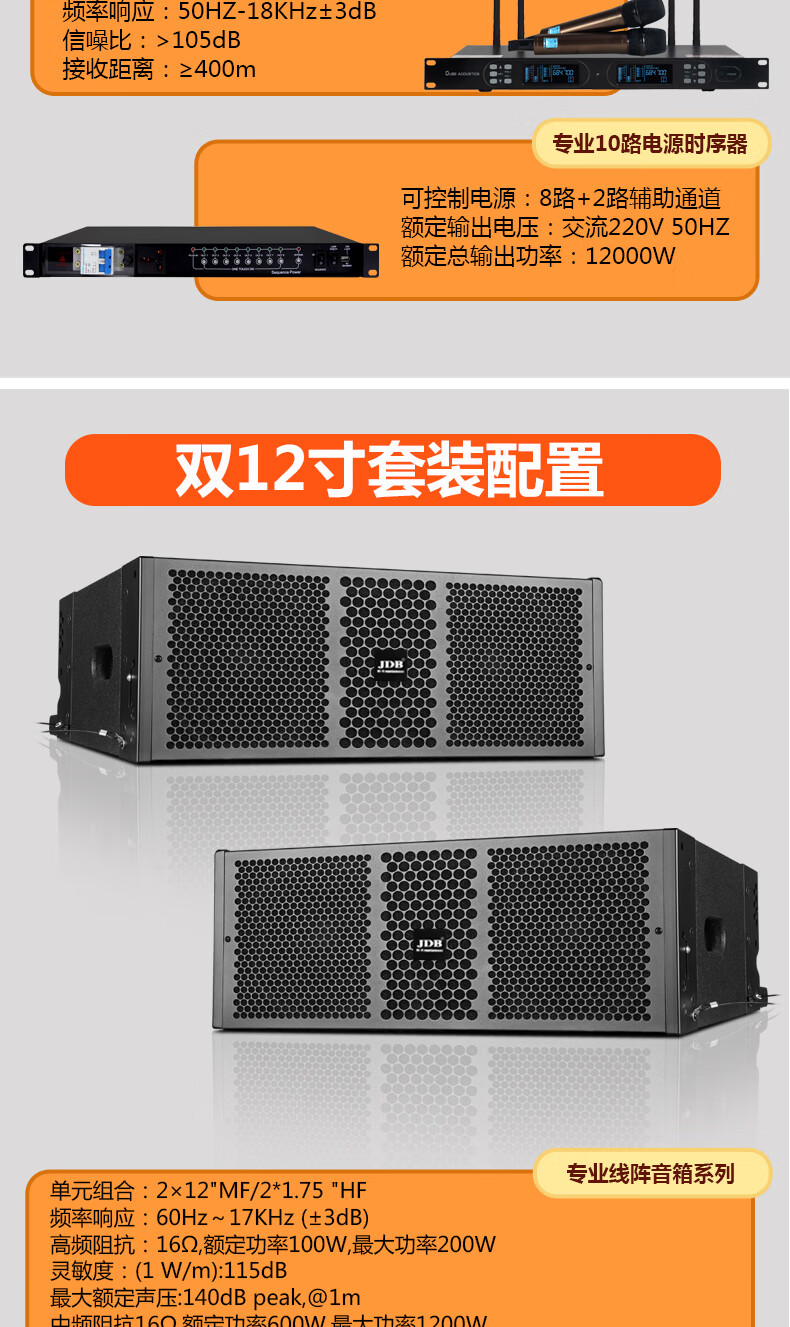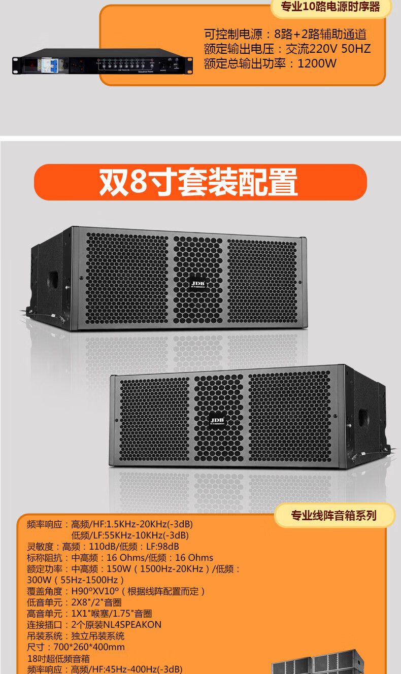 JDB (UK) professional passive line array audio set indoor and outdoor large stage performance bar wedding installation engineering speakers dual 12 inches 8+2
