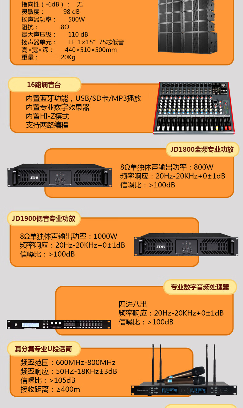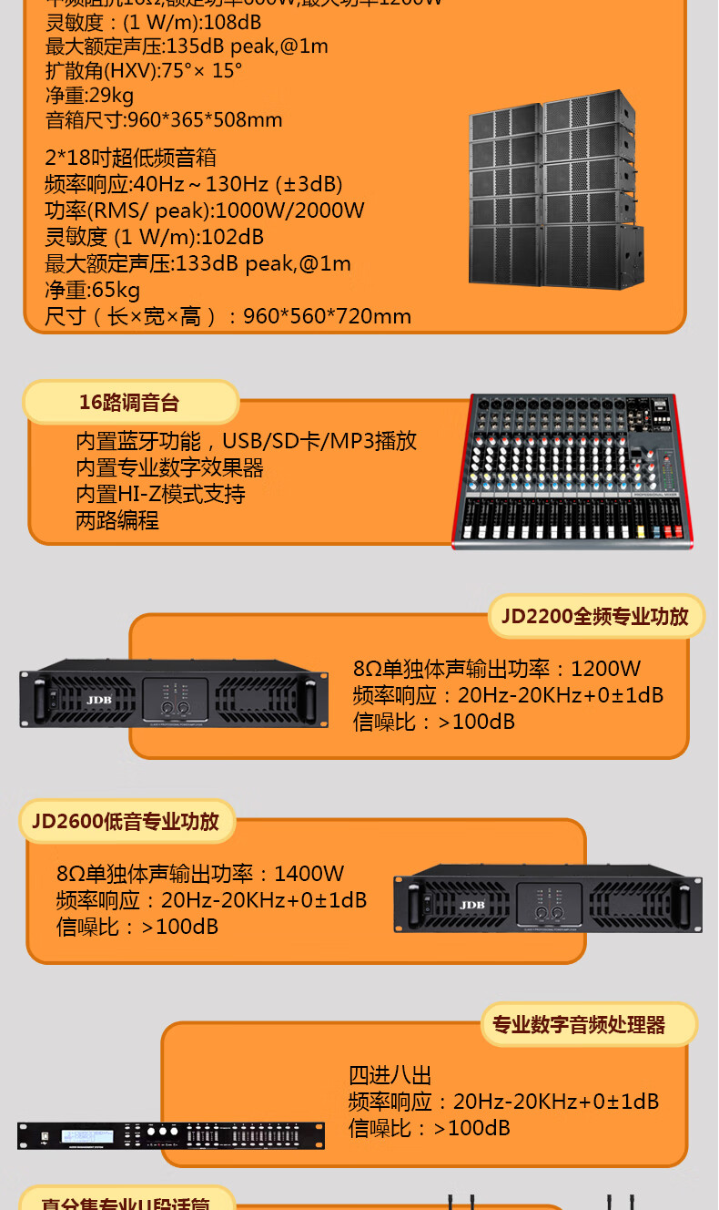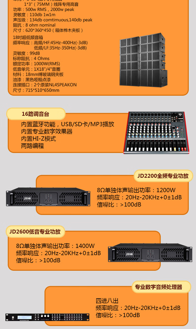 JDB (UK) professional passive line array audio set indoor and outdoor large stage performance bar wedding installation engineering speakers dual 12 inches 8+2