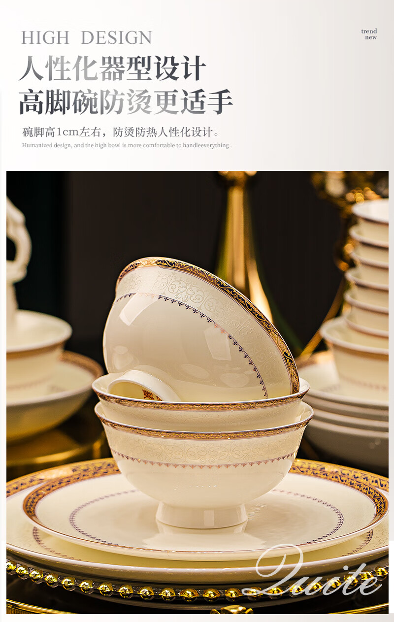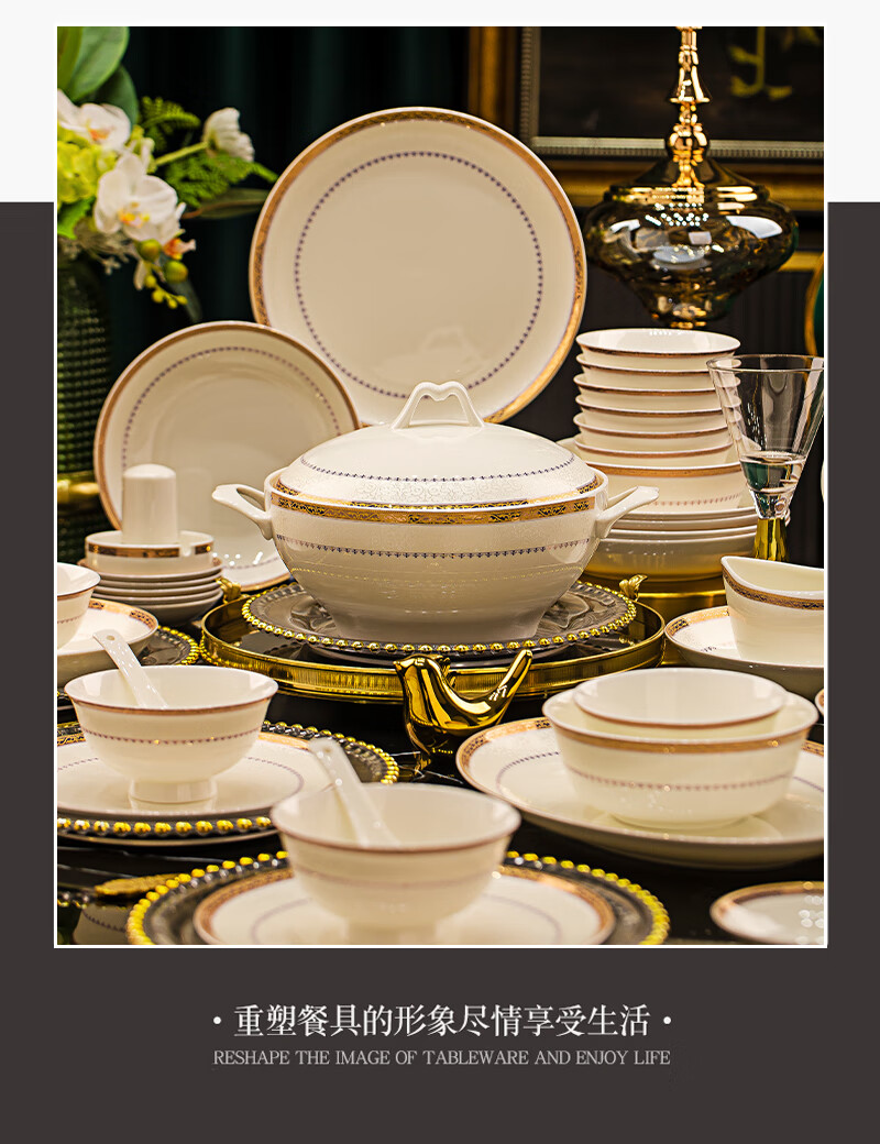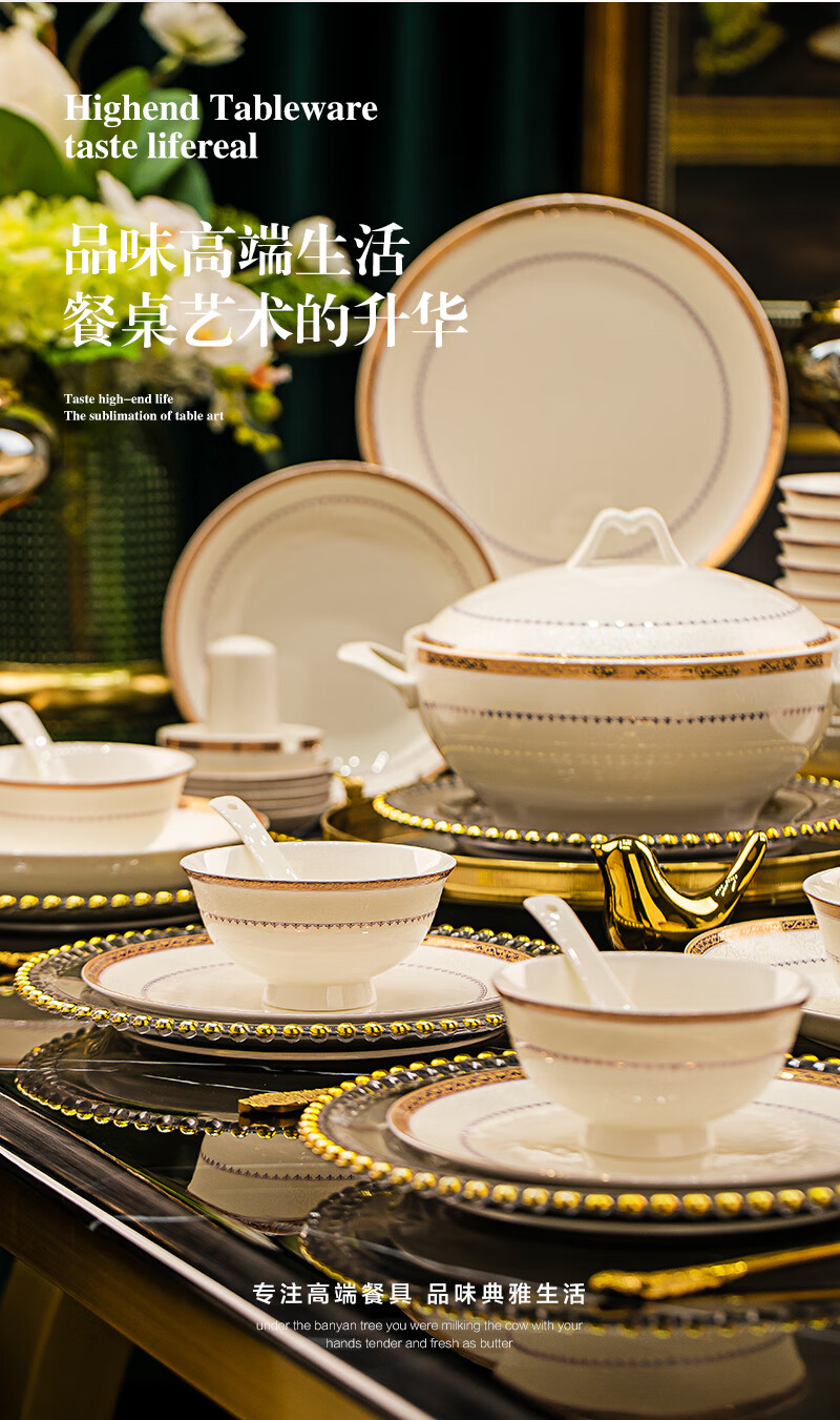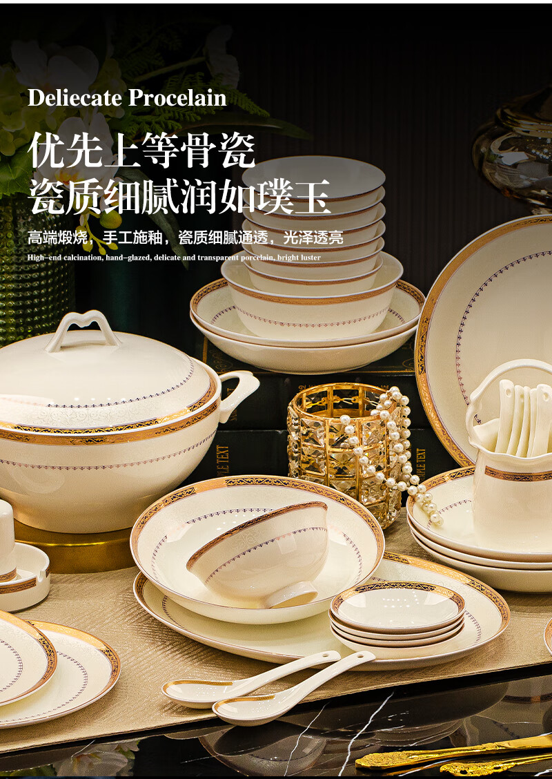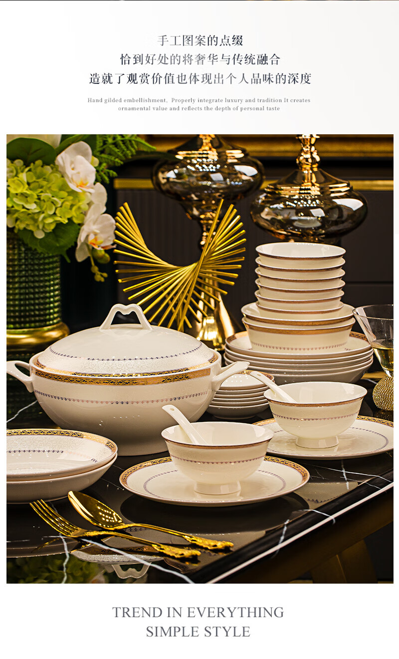 Wuzhili European-style Jingdezhen bone china tableware set, light luxury and high-end, complete set of ceramic bowls, plates, chopsticks, housewarming gift, with pot, high temperature, non-fading, gift box, 40 pieces