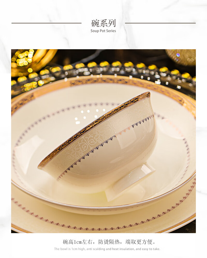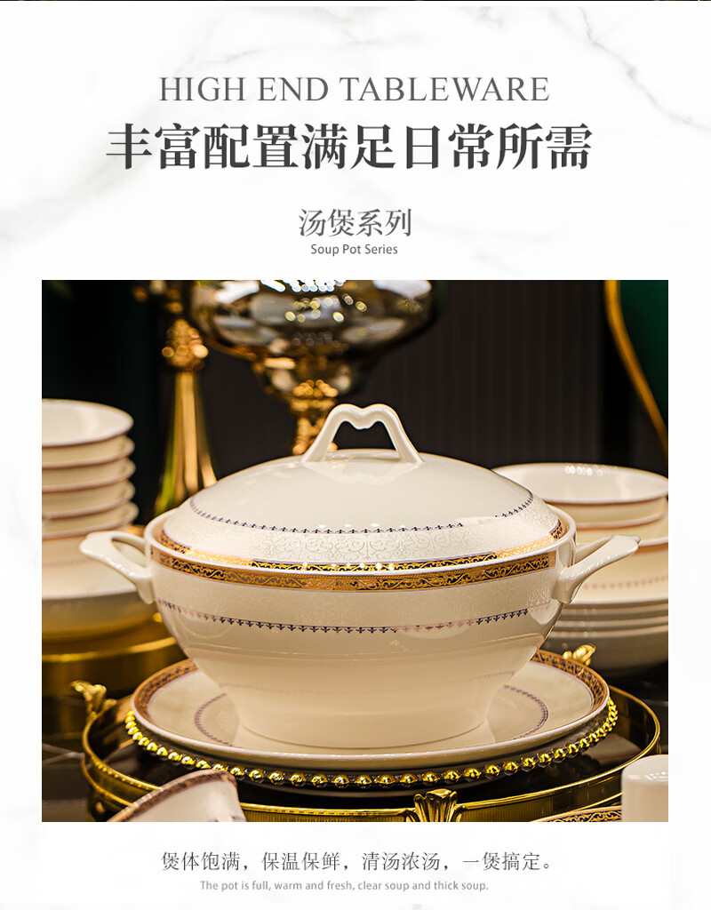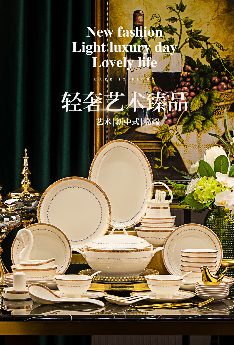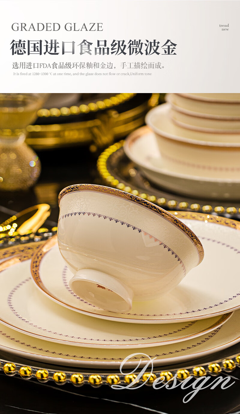 Wuzhili European-style Jingdezhen bone china tableware set, light luxury and high-end, complete set of ceramic bowls, plates, chopsticks, housewarming gift, with pot, high temperature, non-fading, gift box, 40 pieces