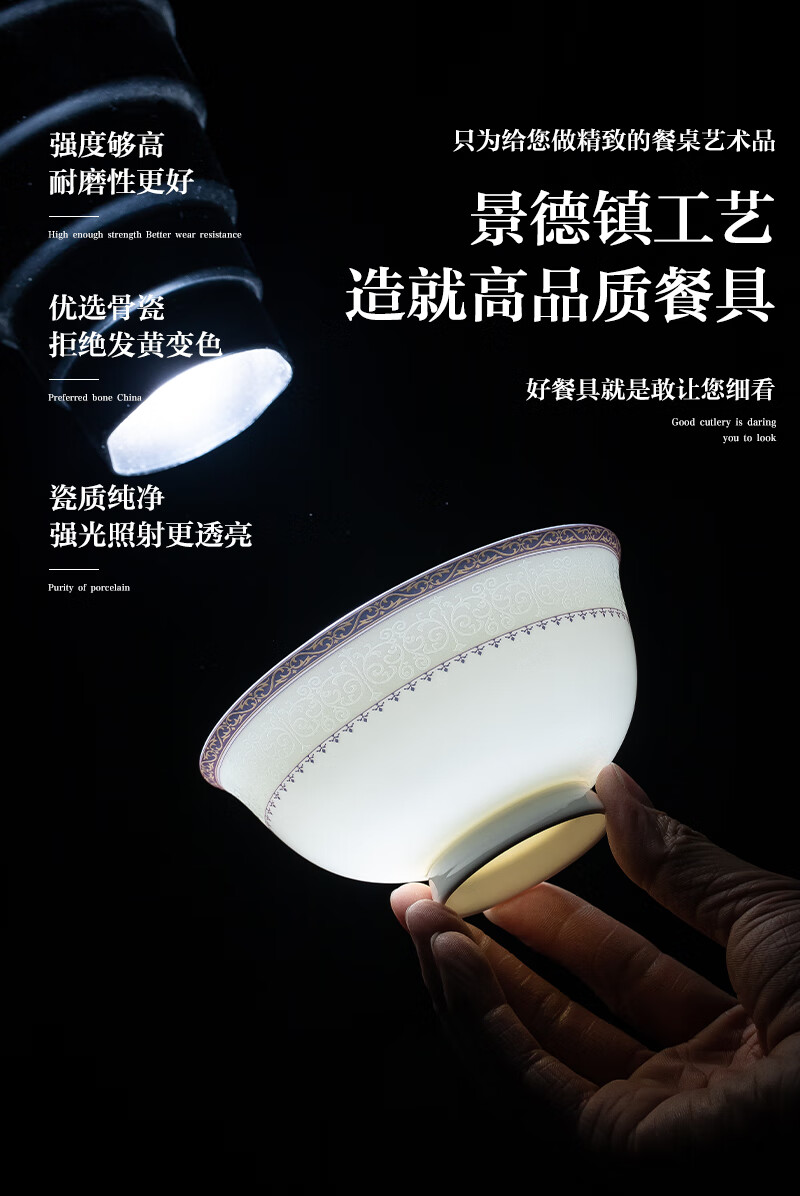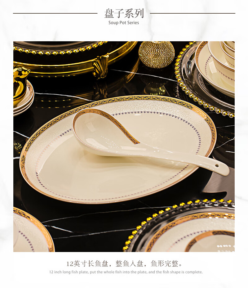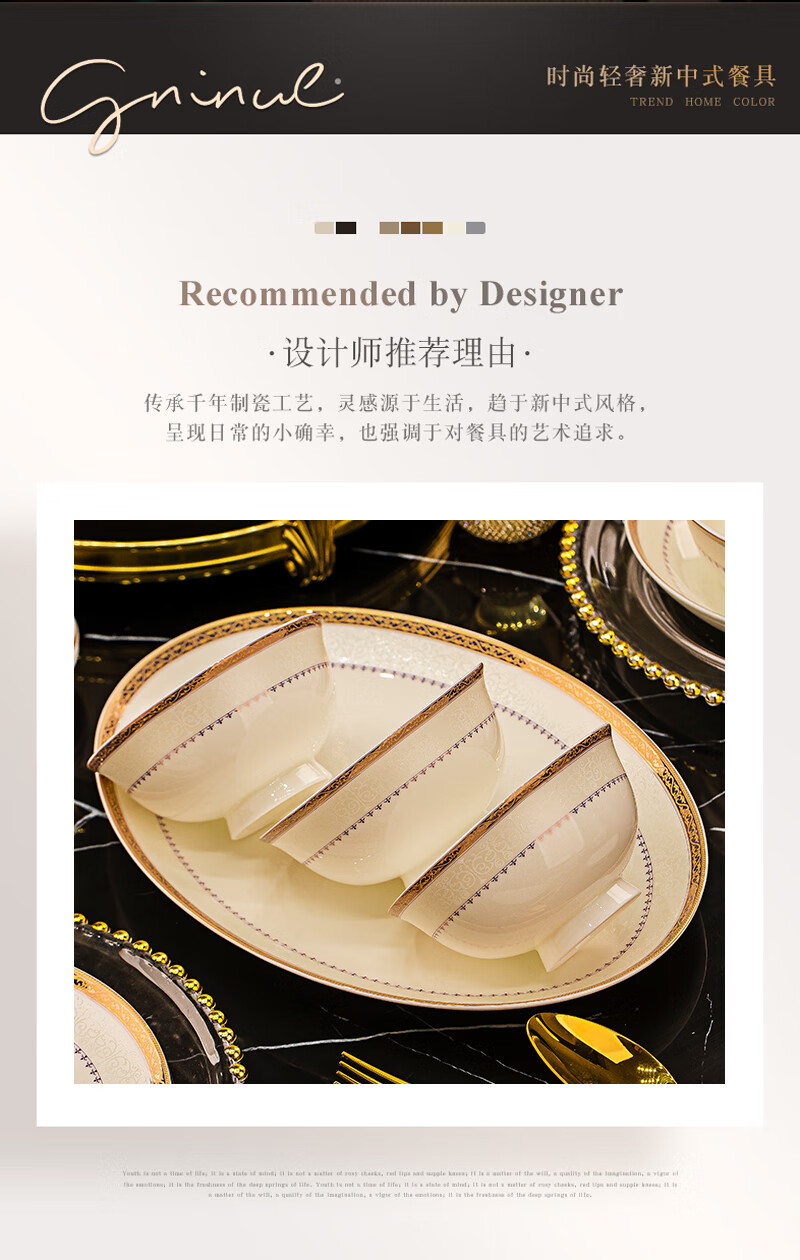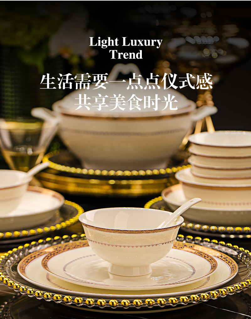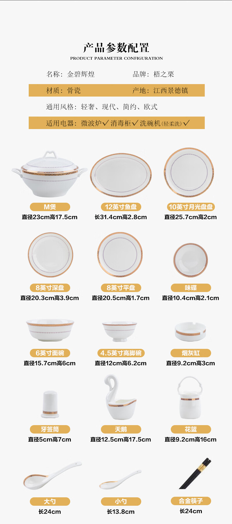 Wuzhili European-style Jingdezhen bone china tableware set, light luxury and high-end, complete set of ceramic bowls, plates, chopsticks, housewarming gift, with pot, high temperature, non-fading, gift box, 40 pieces