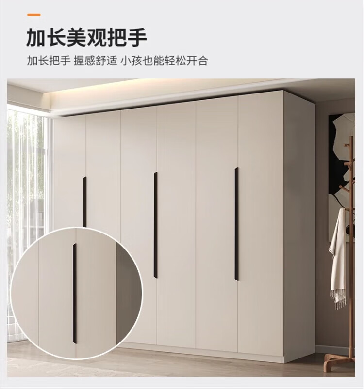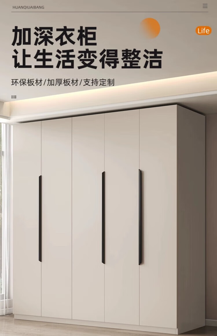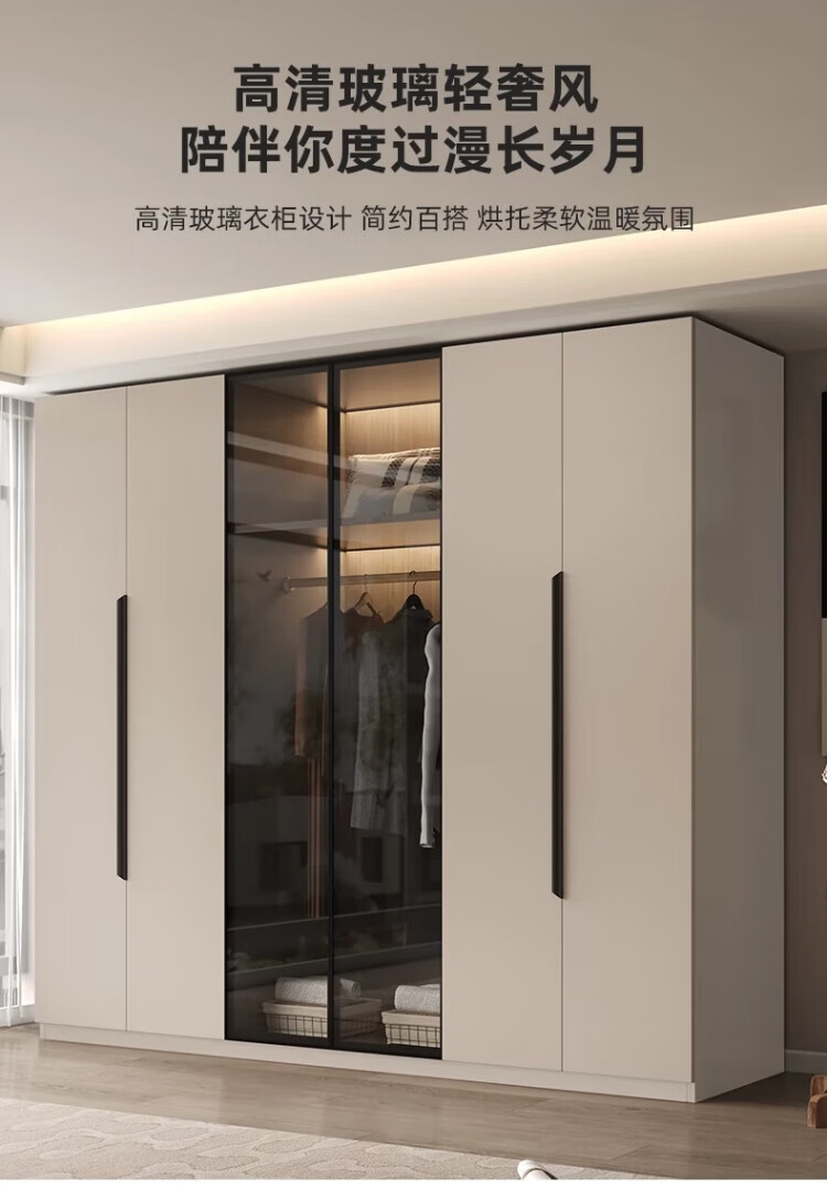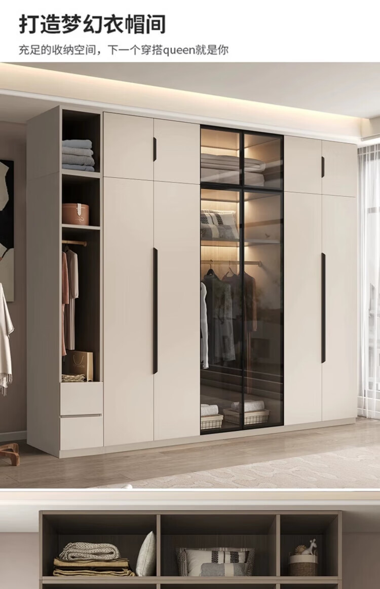 Qiaolop solid wood wardrobe bedroom home simple modern minimalist simple cabinet rental light luxury storage large wardrobe 220*60*200 glass mixed side cabinet six door khaki door installation