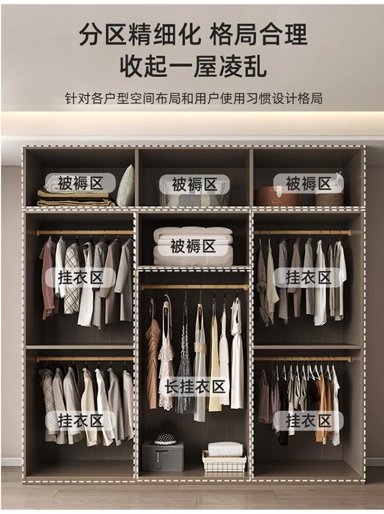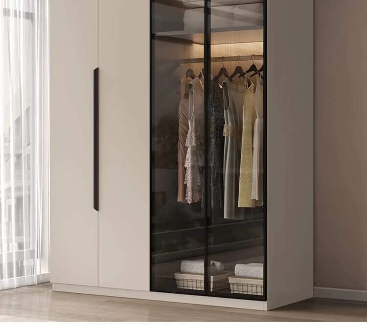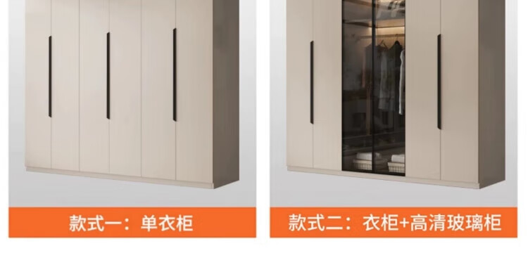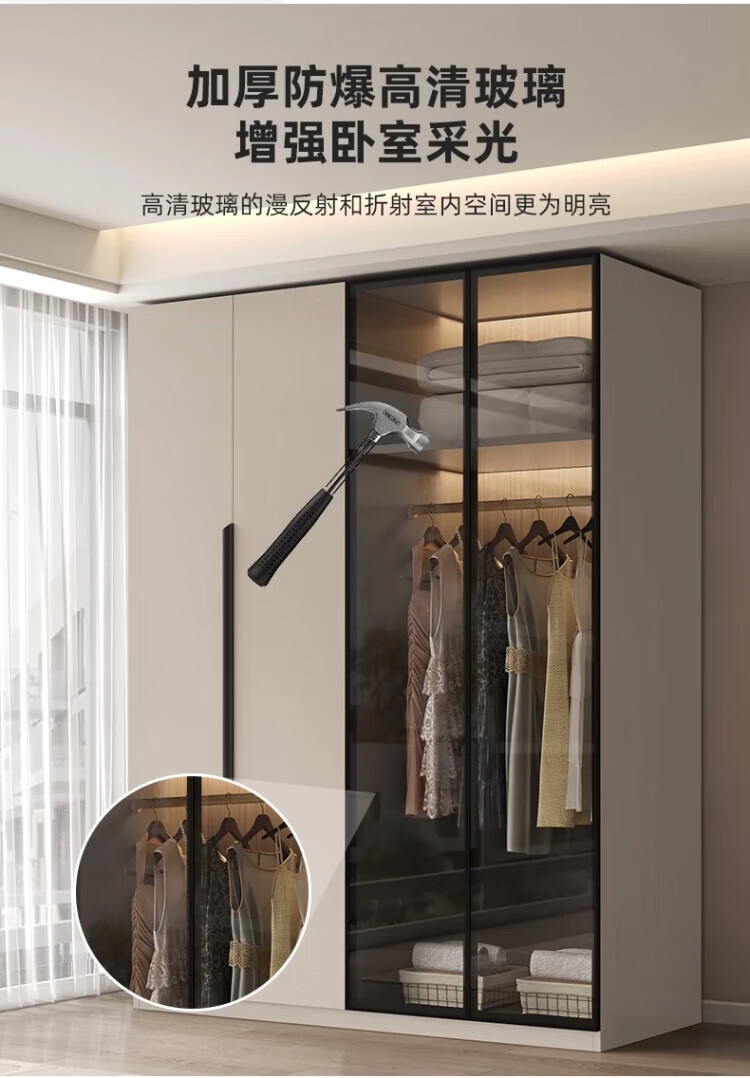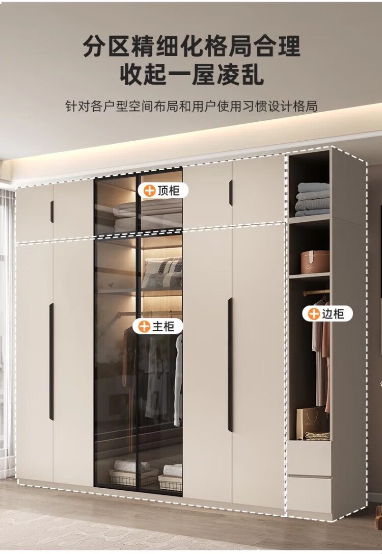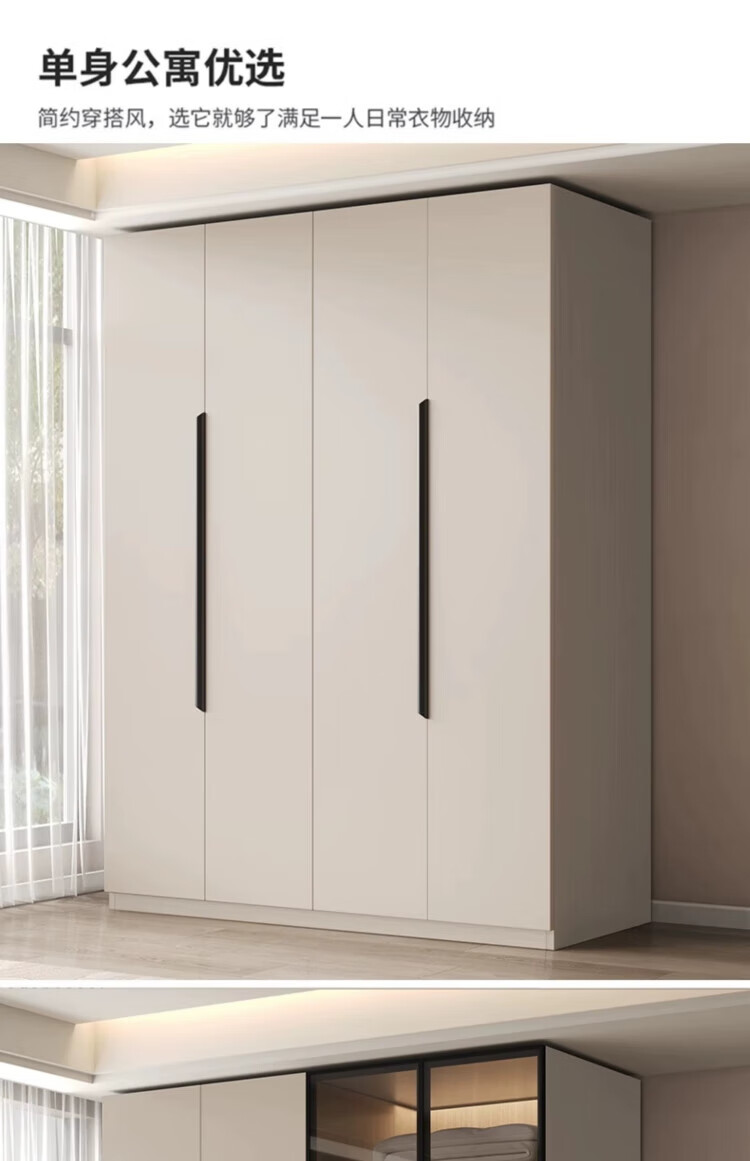 Qiaolop solid wood wardrobe bedroom home simple modern minimalist simple cabinet rental light luxury storage large wardrobe 220*60*200 glass mixed side cabinet six door khaki door installation