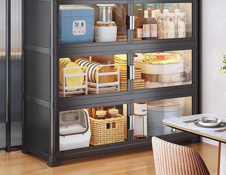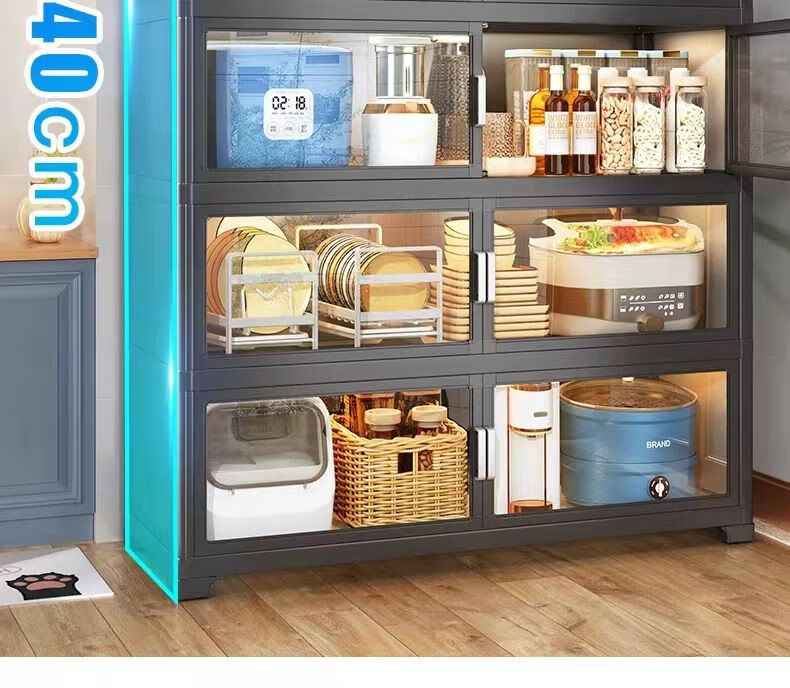 Wen Yijia cupboard storage cabinet multi-functional cabinet storage rack with door dustproof multi-layer dishware narrow cabinet storage cabinet sundry five layers 80*40*133 night black double door