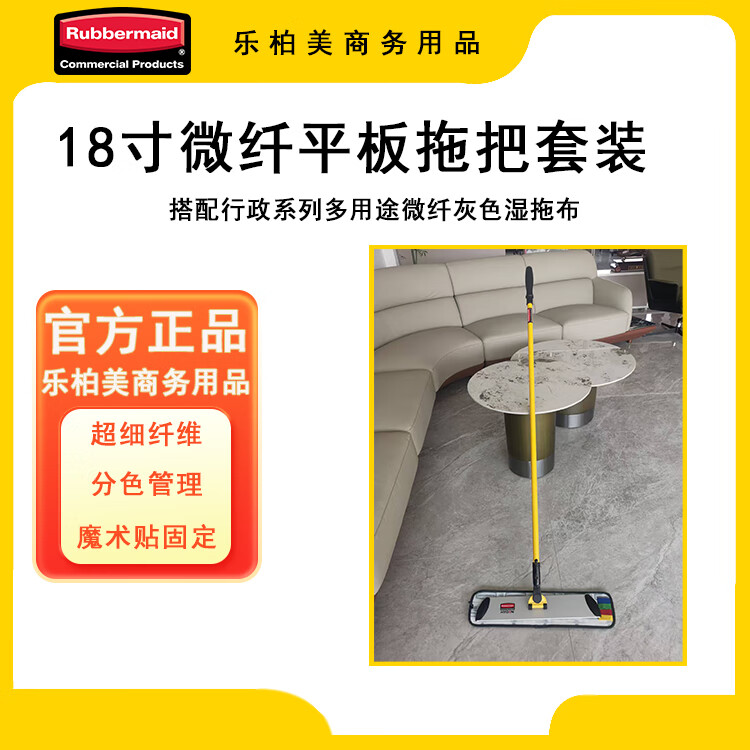 Rubbermaid Business Supplies 18-inch Microfiber Flat Mop Gray Set Inlet Mop Hotel Mop Wet and Dry Lazy Mop 18-inch Set Contains 2 Mops (Gray + Gray)
