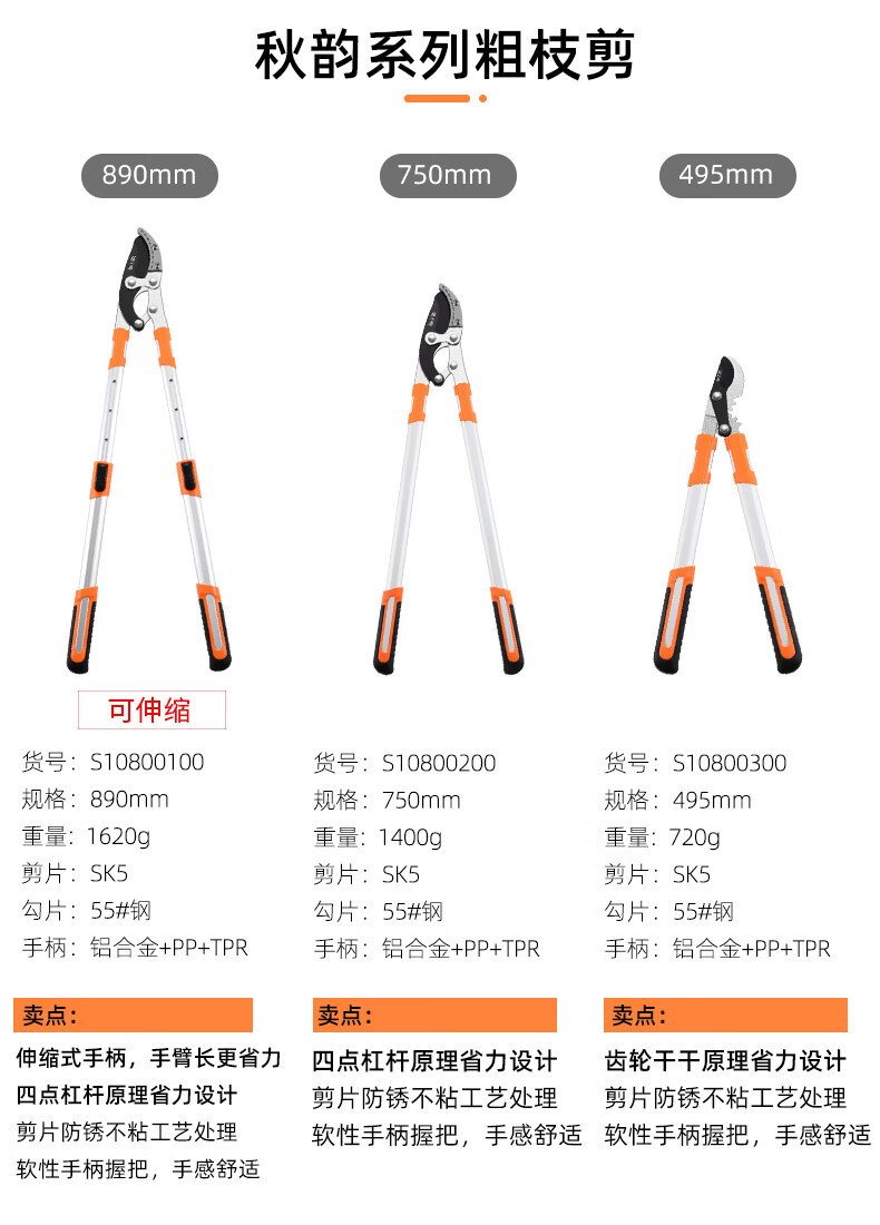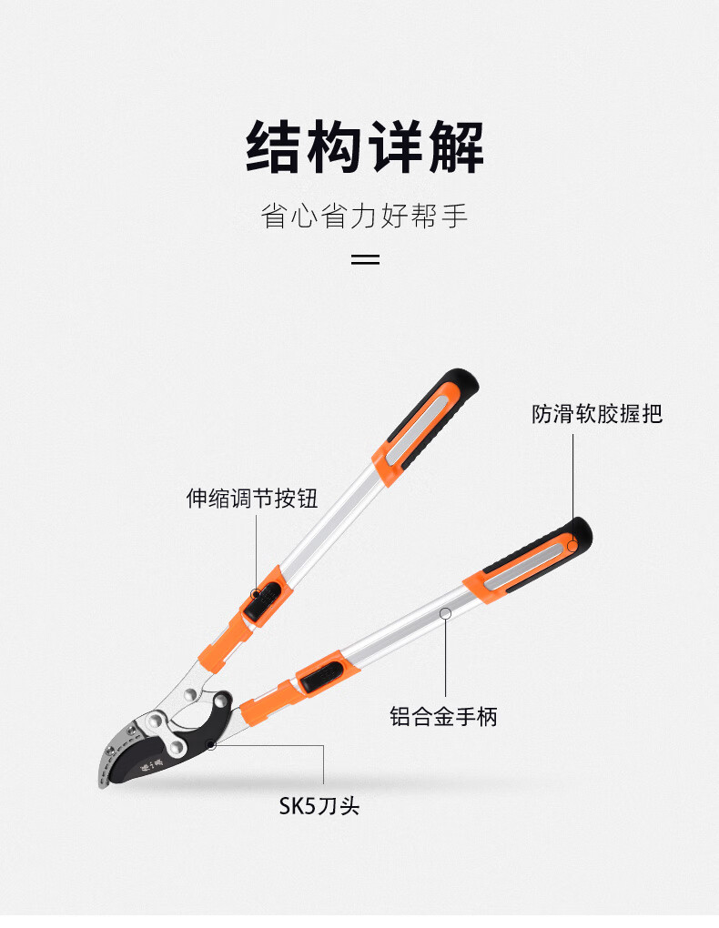 张小泉果树强力粗枝剪园林剪枝园艺大剪刀省力修剪树枝剪刀大力剪 S10800200不可伸缩粗枝剪