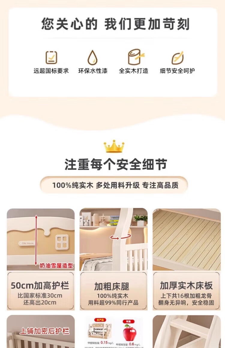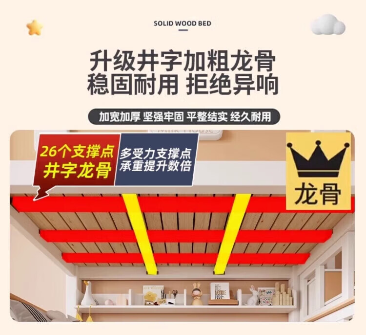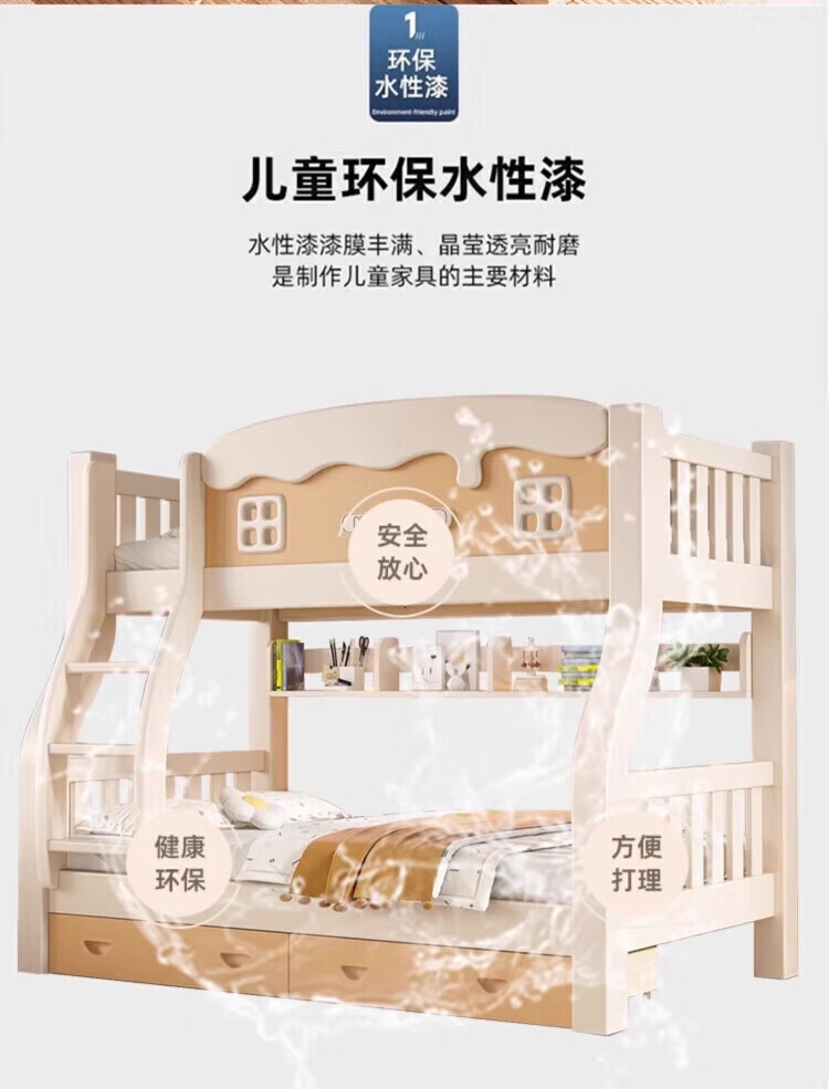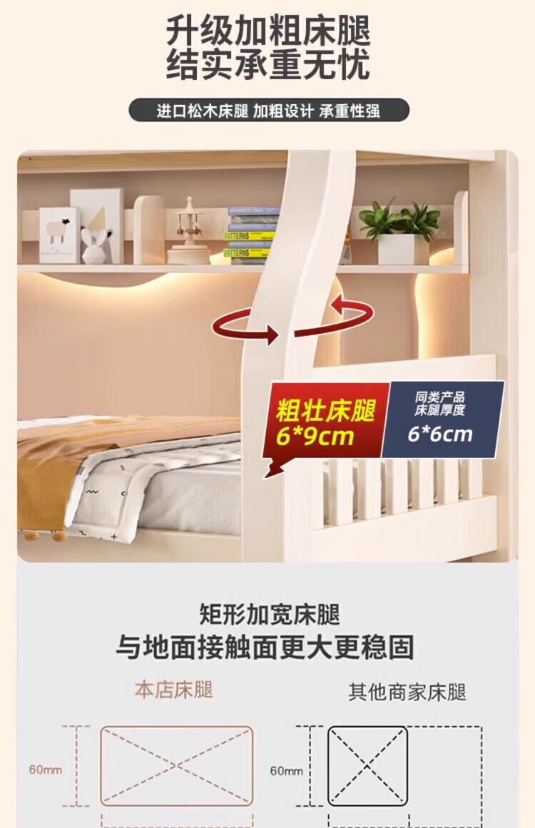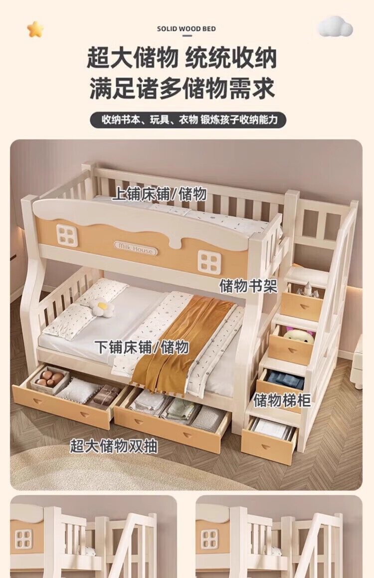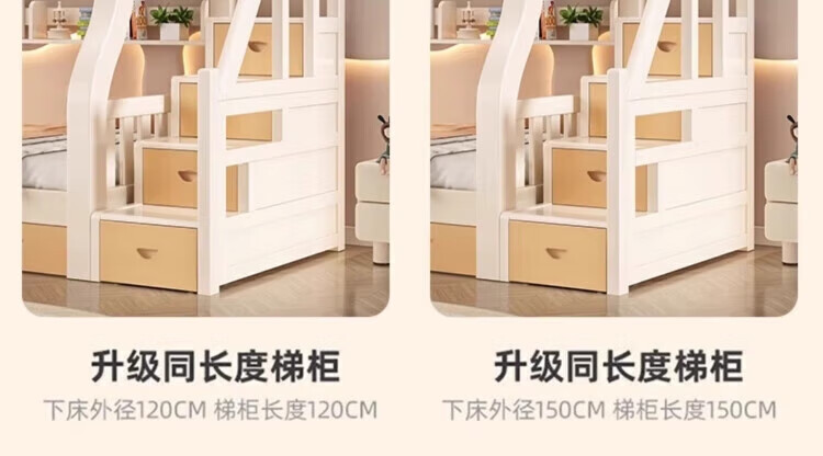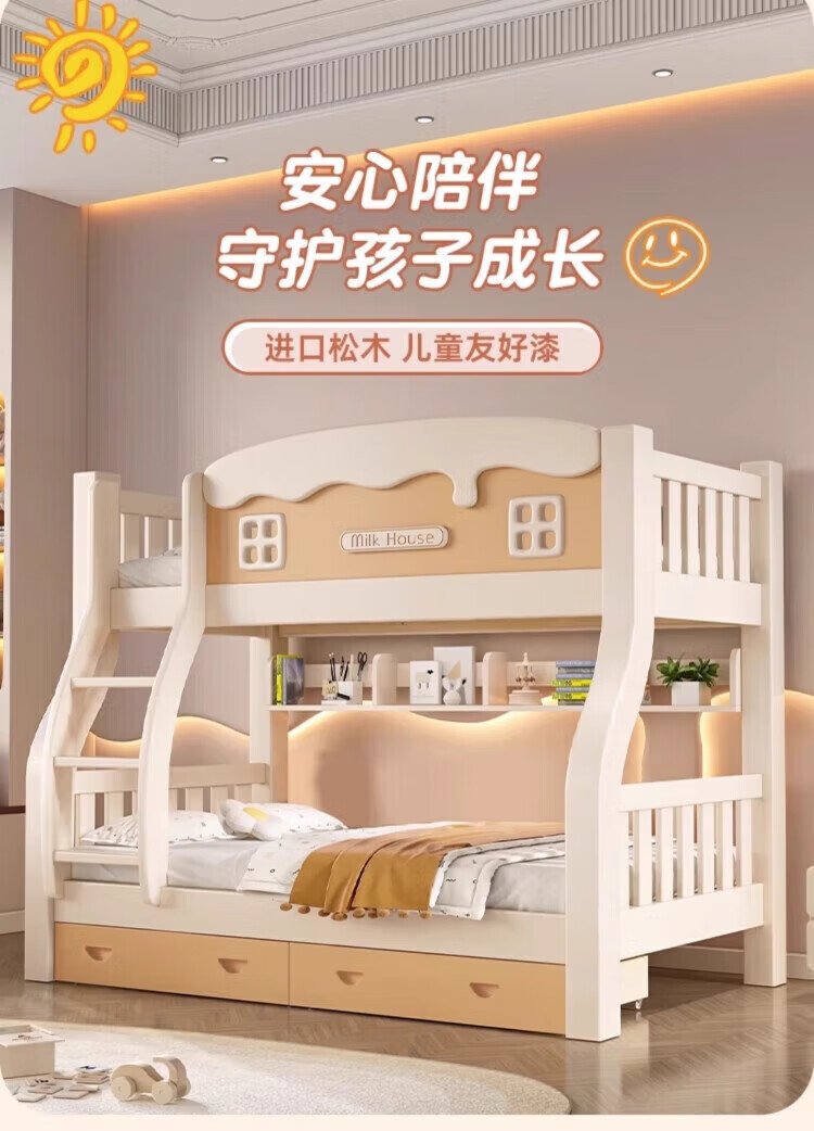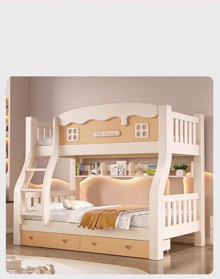 Leiyang all solid wood bunk bed cartoon bunk bed multifunctional wooden bed fashionable simple double solid wood high and low bed small apartment 130 up and down 150 bookshelf drawer + mattress * 2