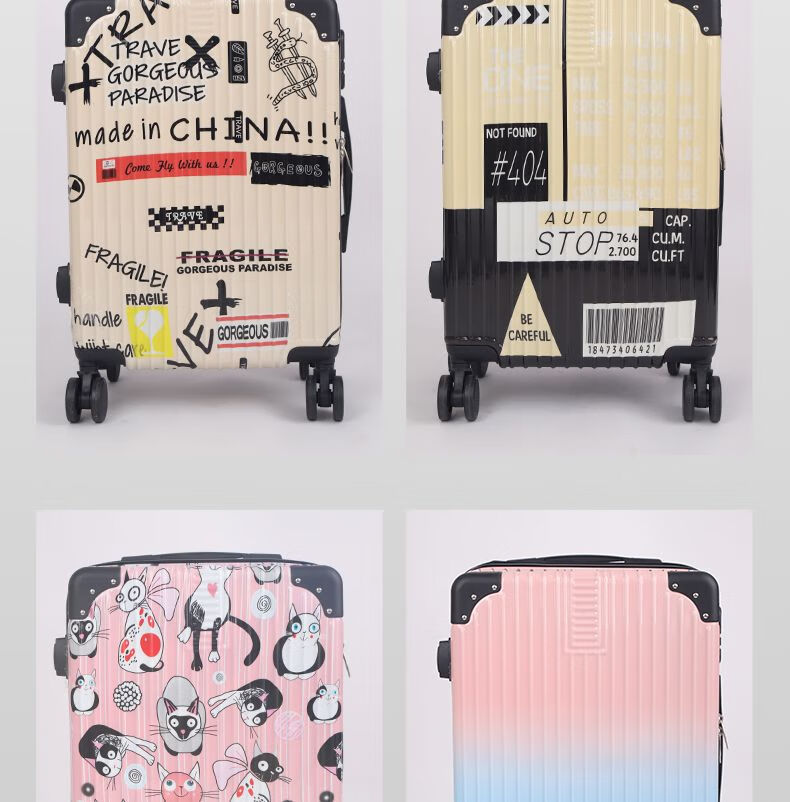 LZJV painted fun graffiti 20-inch suitcase wear-resistant zipper box student large-capacity suitcase silent password box gray iron tower upgraded painting + explosion-proof and wear-resistant 28-inch aluminum alloy anti-collision corner-long-term use