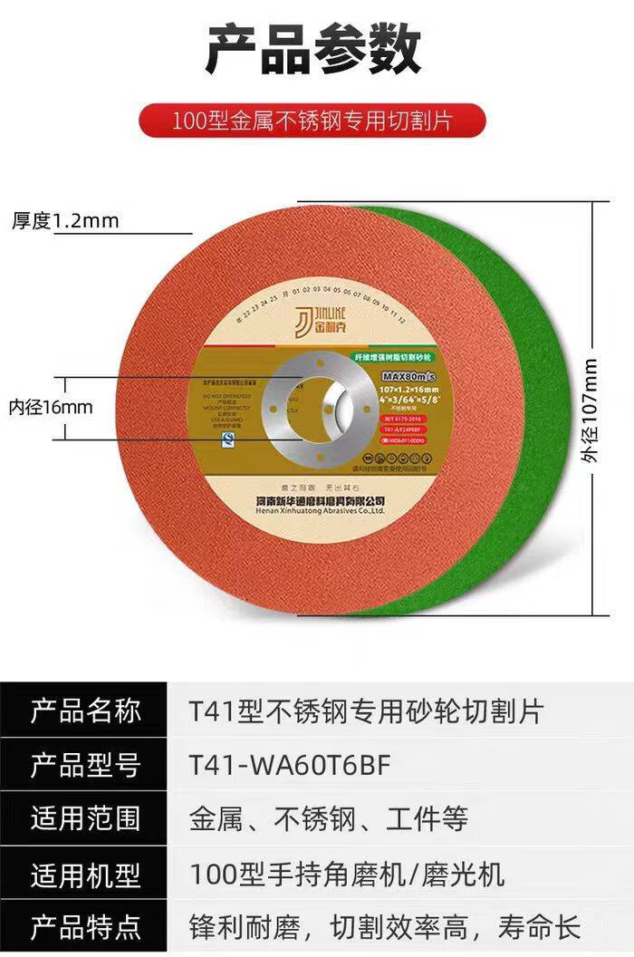 Type 100 corneal machine cutting disc 107*1.2*16 stainless steel grinding wheel metal cutting disc Jintailong green Jinlike green 50 pieces