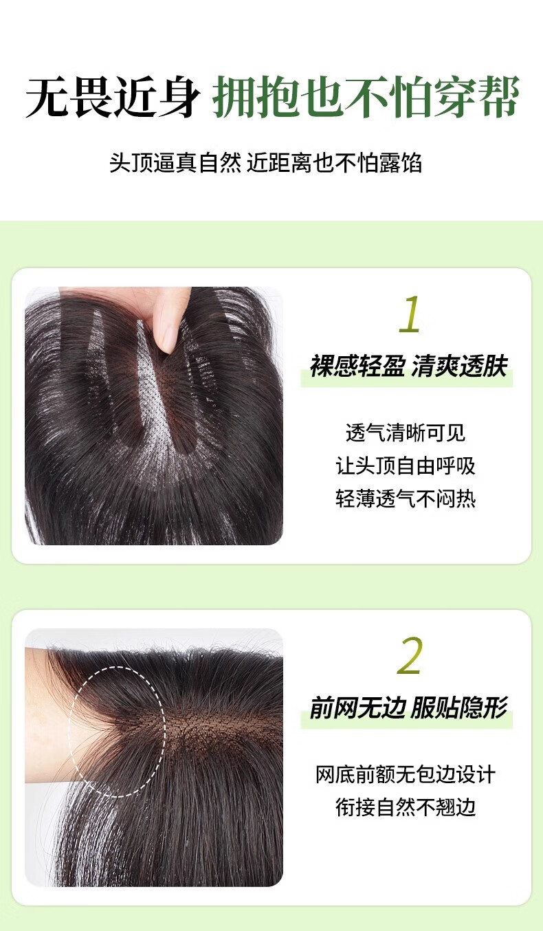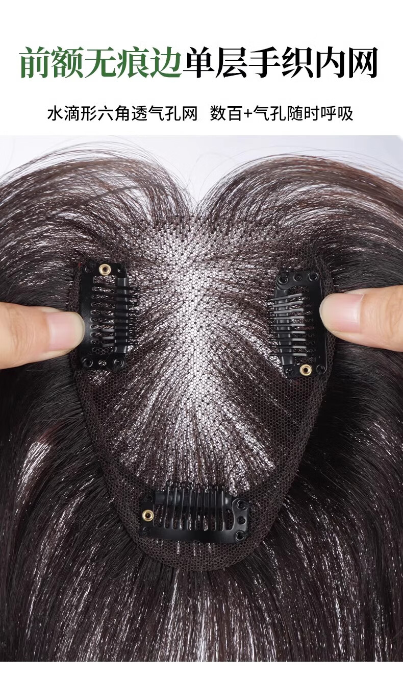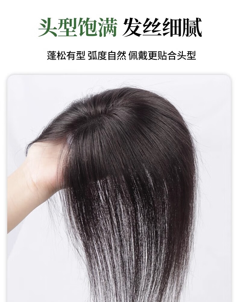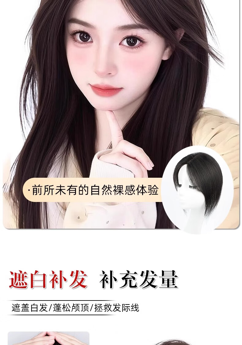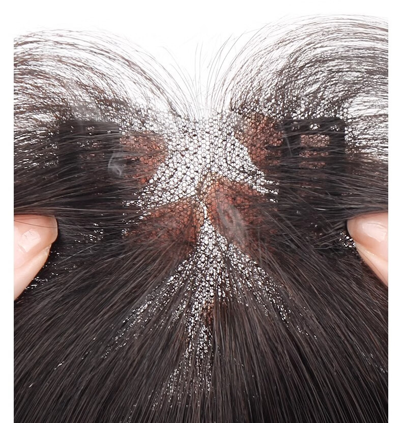 Wig for women, real hair on the top of the head, adding fluffy hair to cover white hair, a natural, traceless, thin, high-ceiling replacement hair piece, breathable and borderless T7*9, natural color, medium section