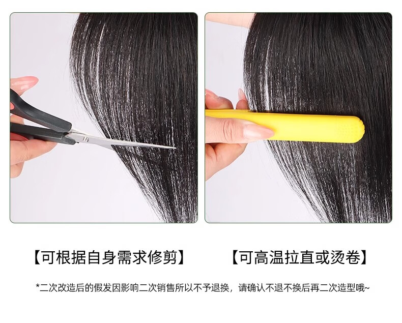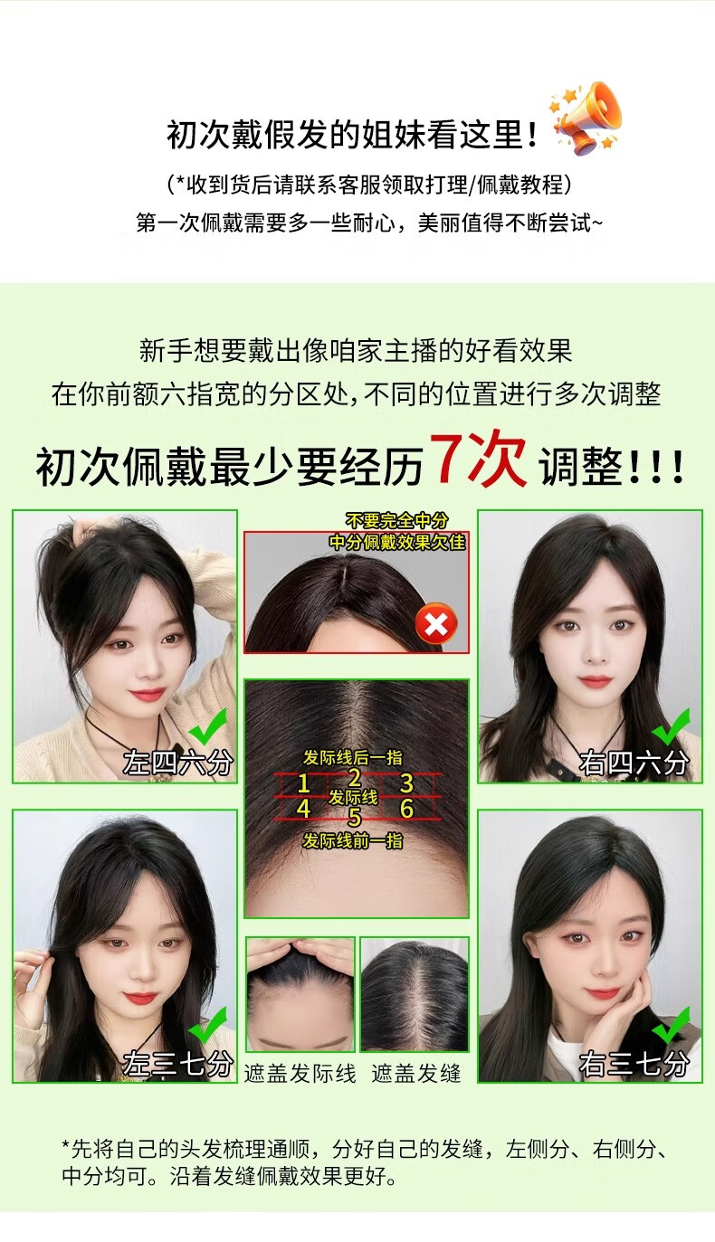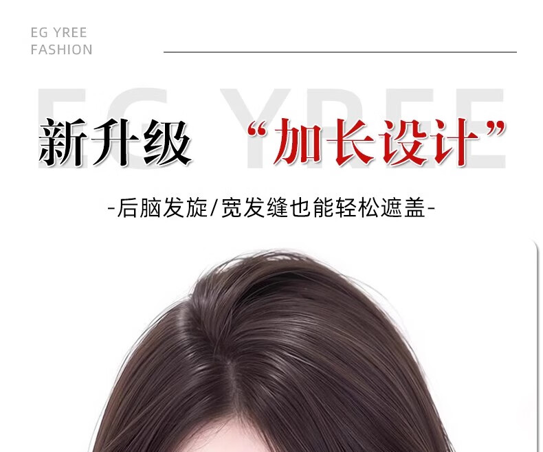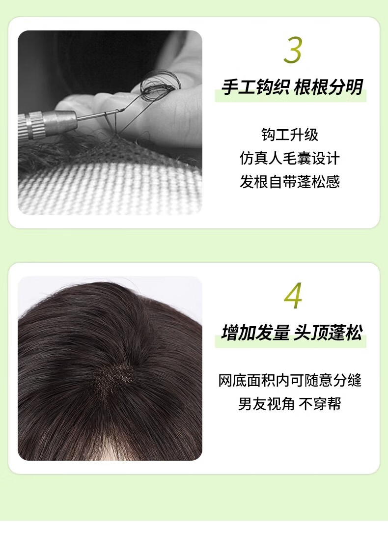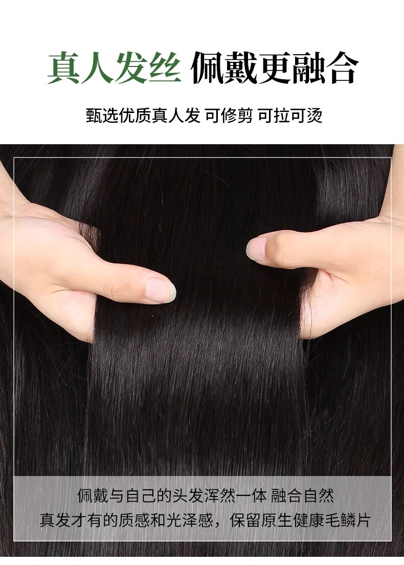 Wig for women, real hair on the top of the head, adding fluffy hair to cover white hair, a natural, traceless, thin, high-ceiling replacement hair piece, breathable and borderless T7*9, natural color, medium section