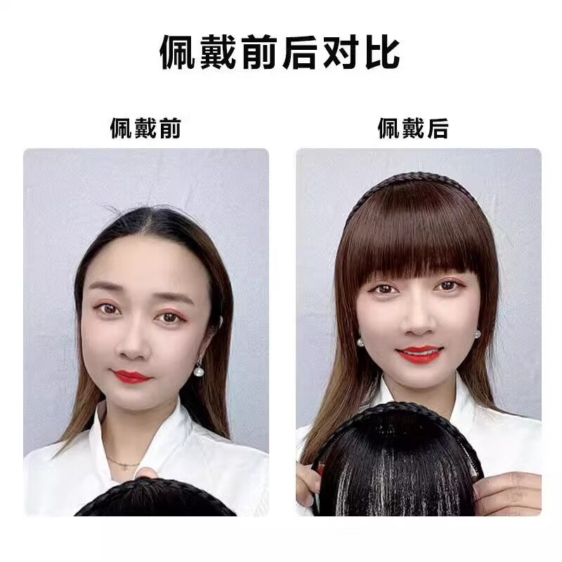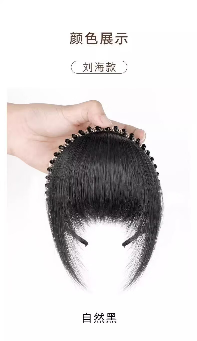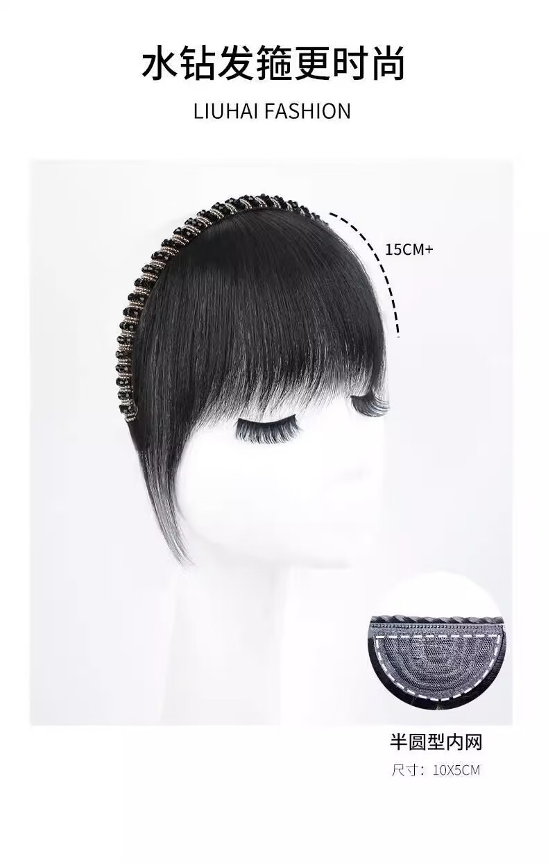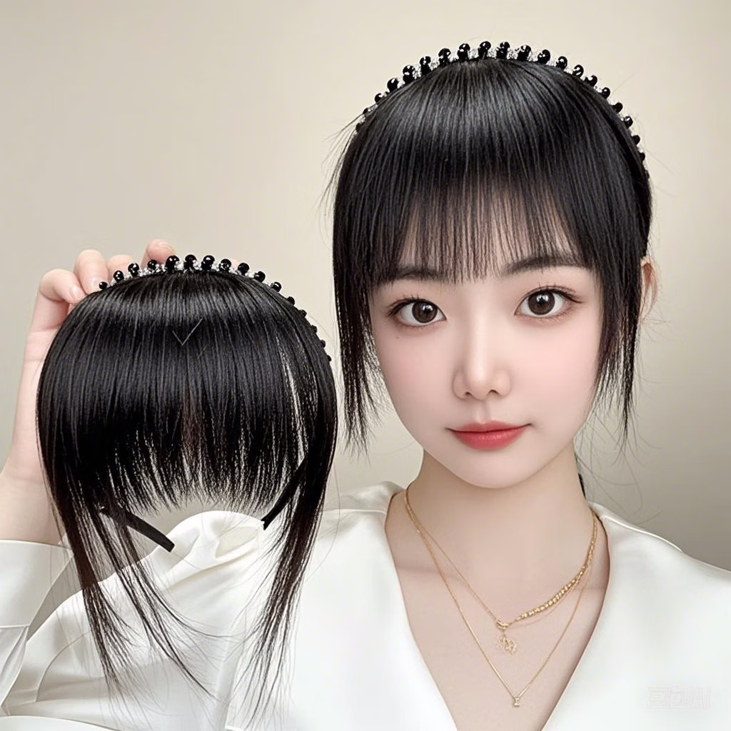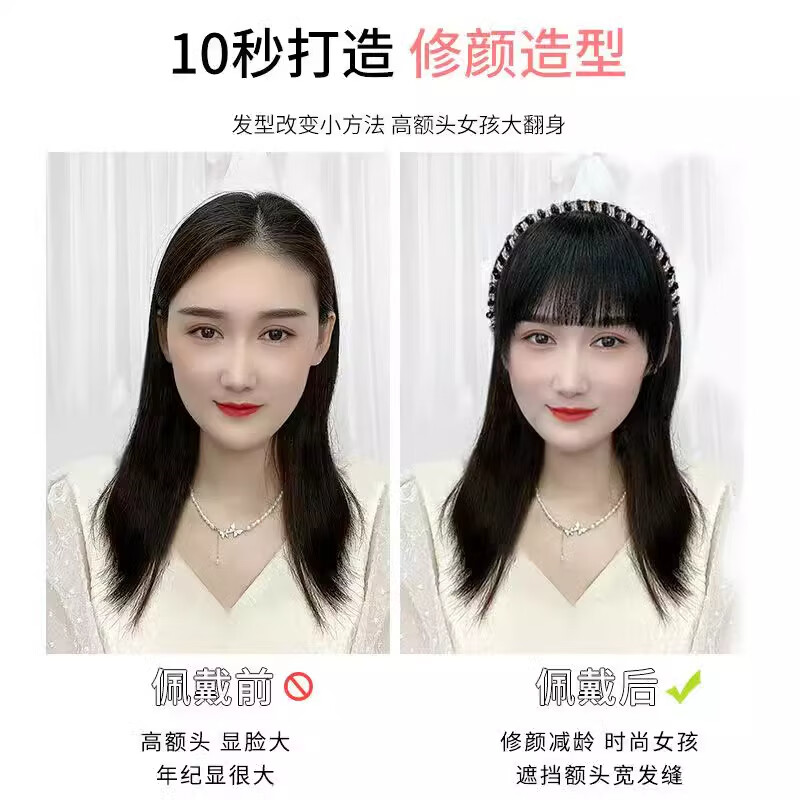 Hairband with bangs integrated real hair front forehead curtain to cover white hair and broken bangs wig piece artifact human hair natural full real hair fishbone hairband with bangs natural black