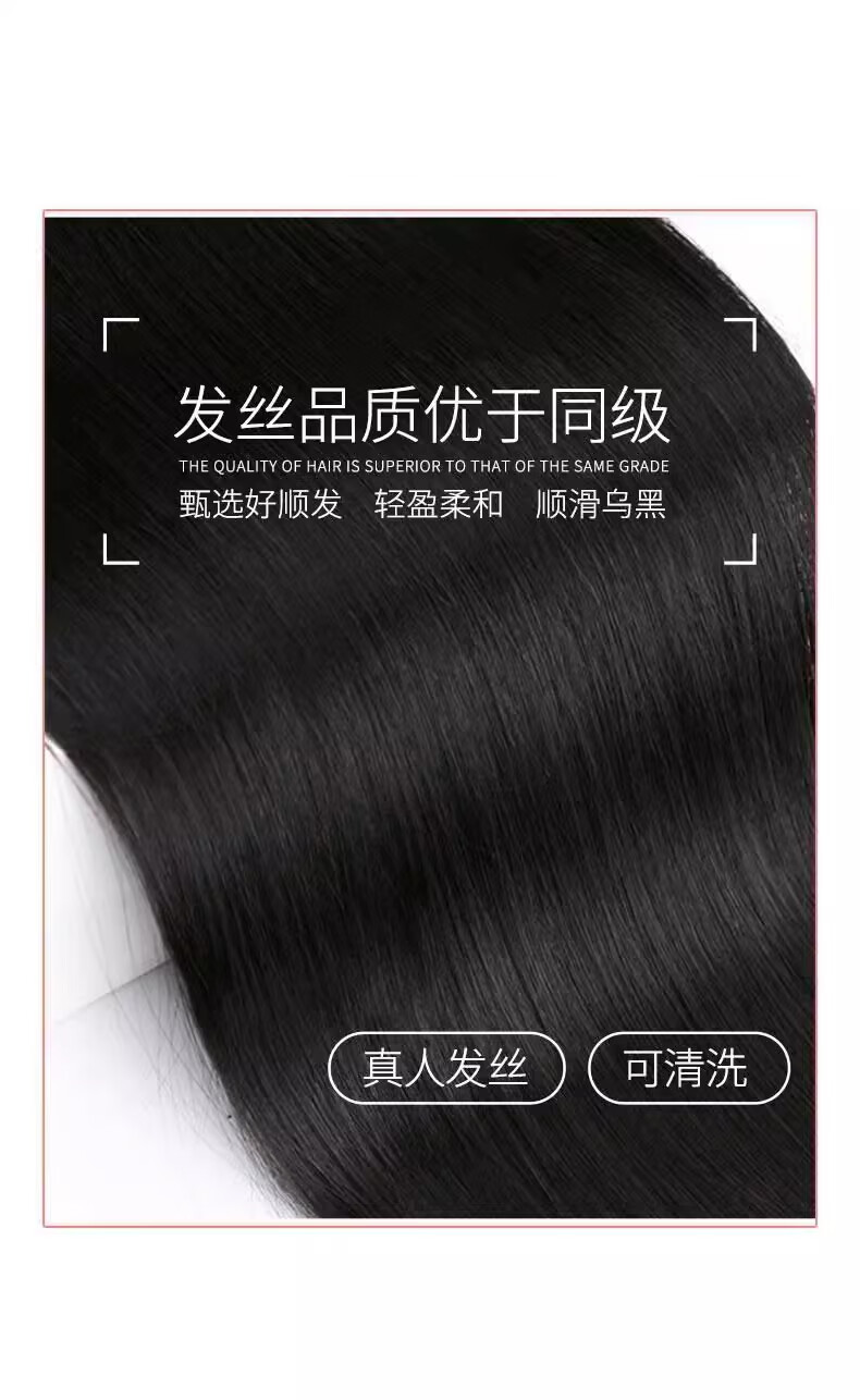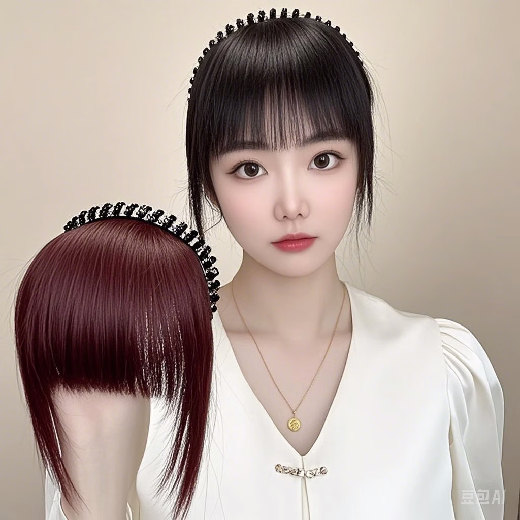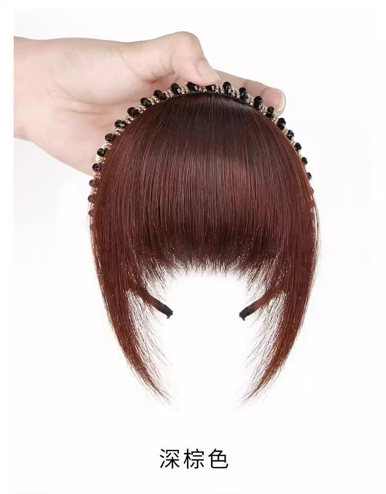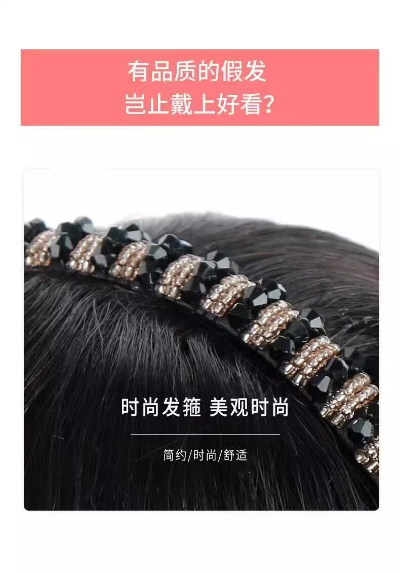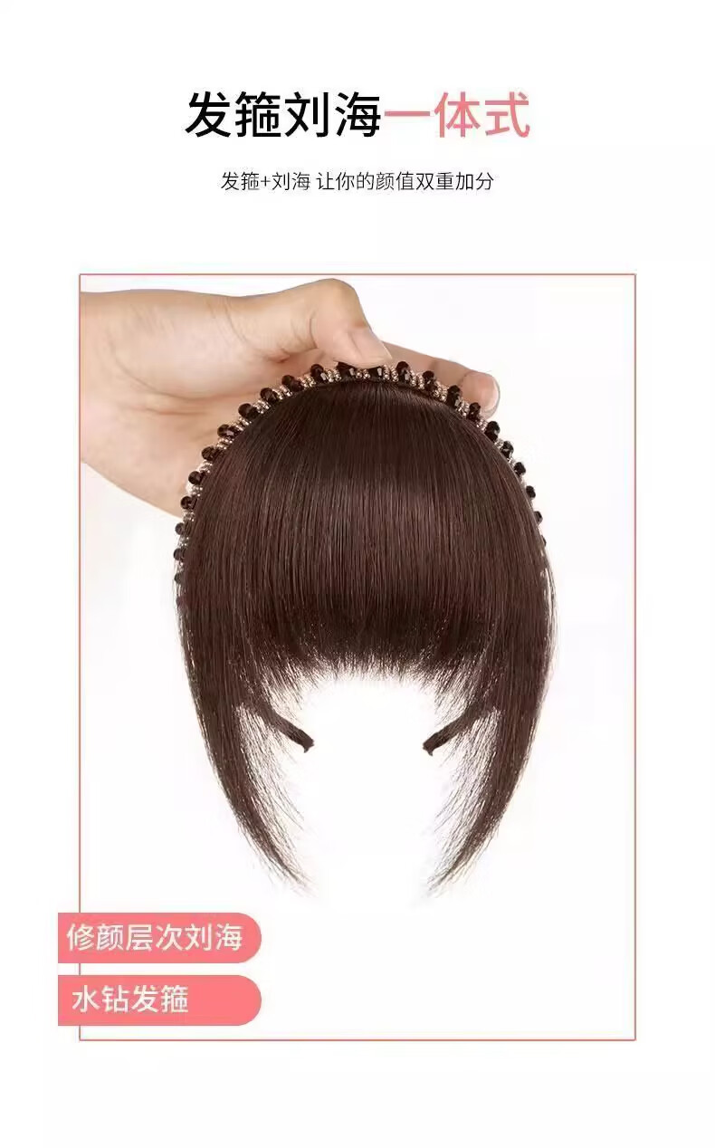 Hairband with bangs integrated real hair front forehead curtain to cover white hair and broken bangs wig piece artifact human hair natural full real hair fishbone hairband with bangs natural black