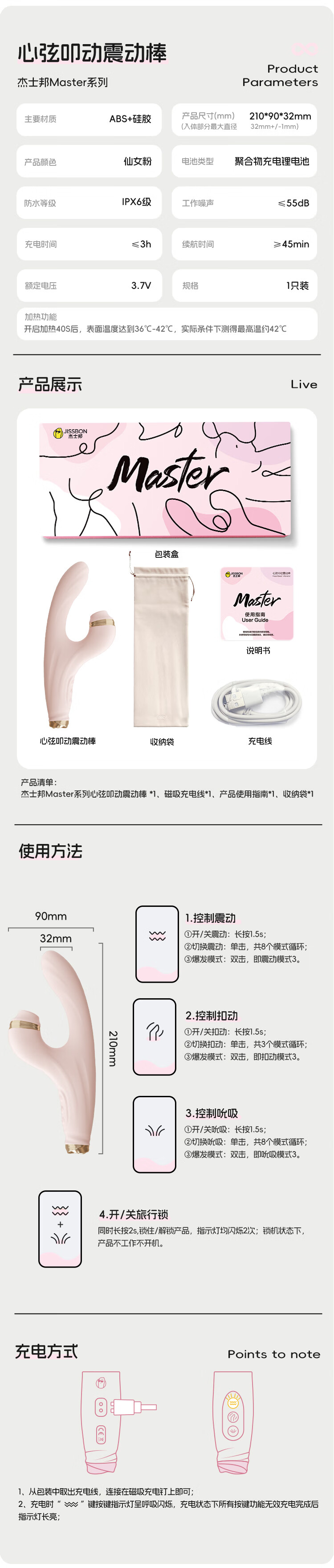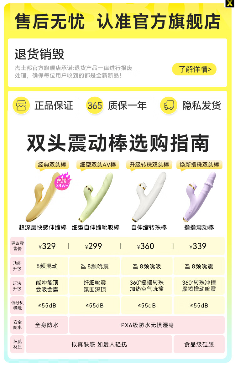 JISBOND vibrator for women, second trendy girl toy, female masturbation device, adult toy sex toy, double-headed strong shock, intelligent constant temperature strong-shock squirting double-headed vibrator