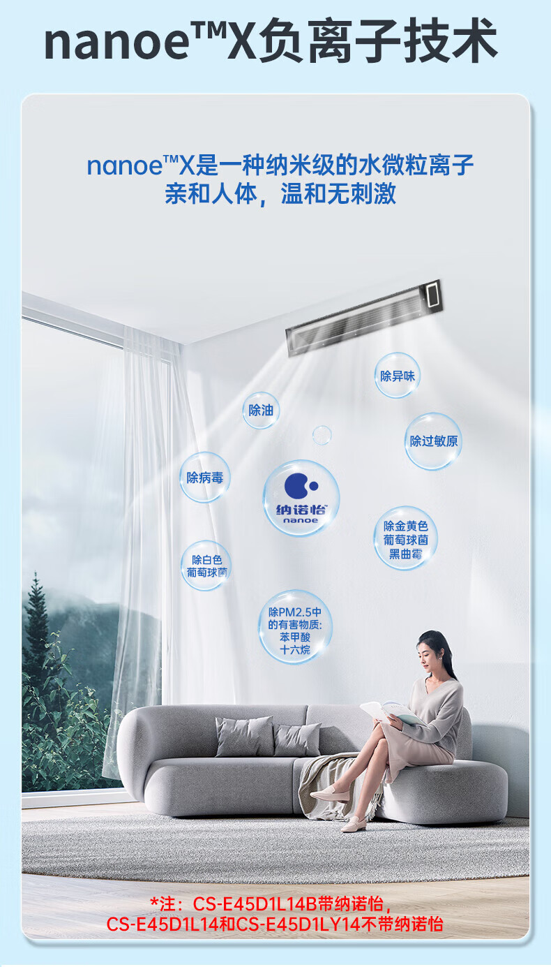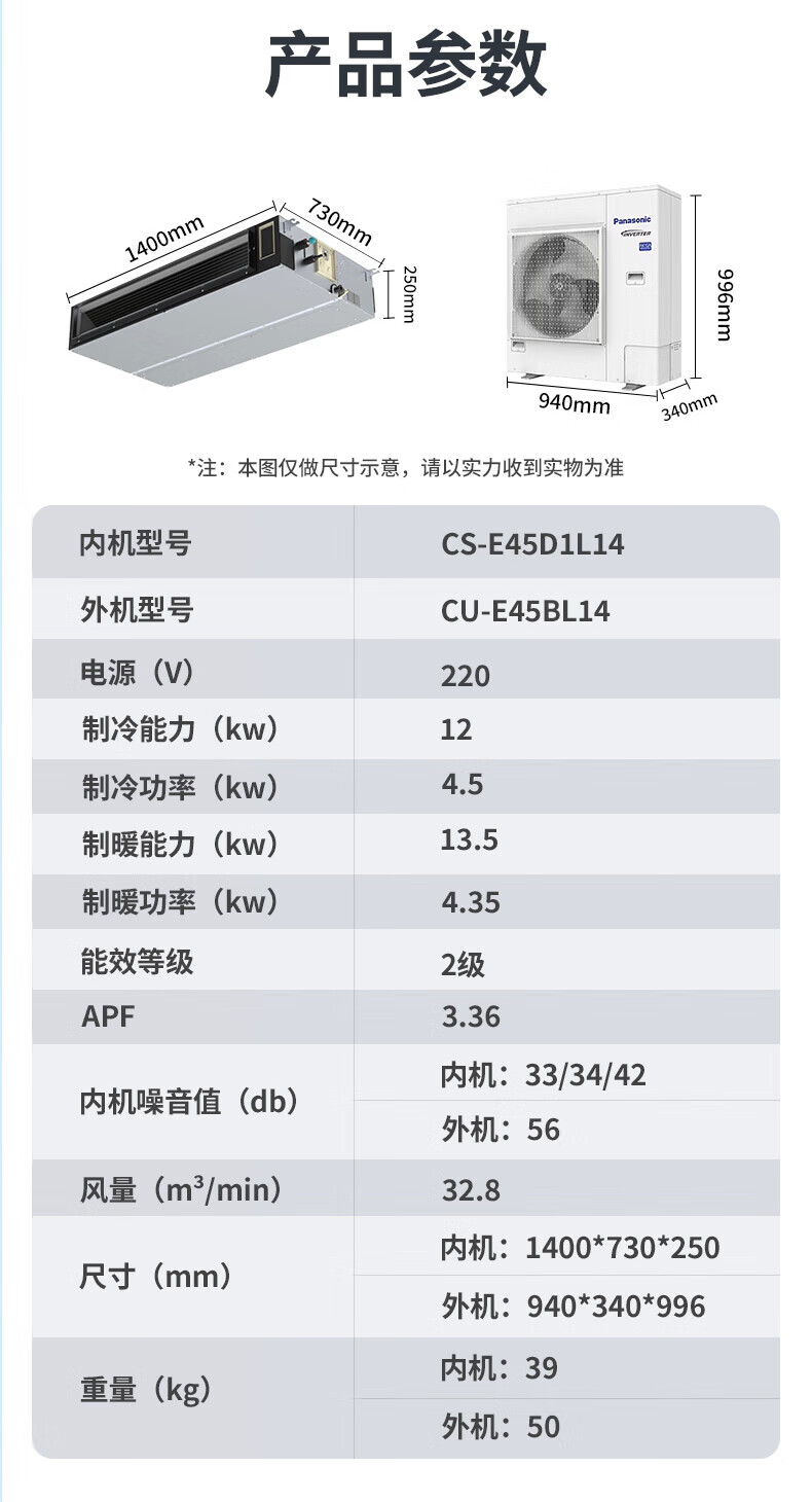 Panasonic 5-hp DC variable frequency heating and cooling duct machine embedded air conditioner, second-level energy efficiency CE series central air-conditioning one-to-one duct machine, installation not included, 5 HP, second-level energy efficiency E45D1L14B with Nanoyi sterilization