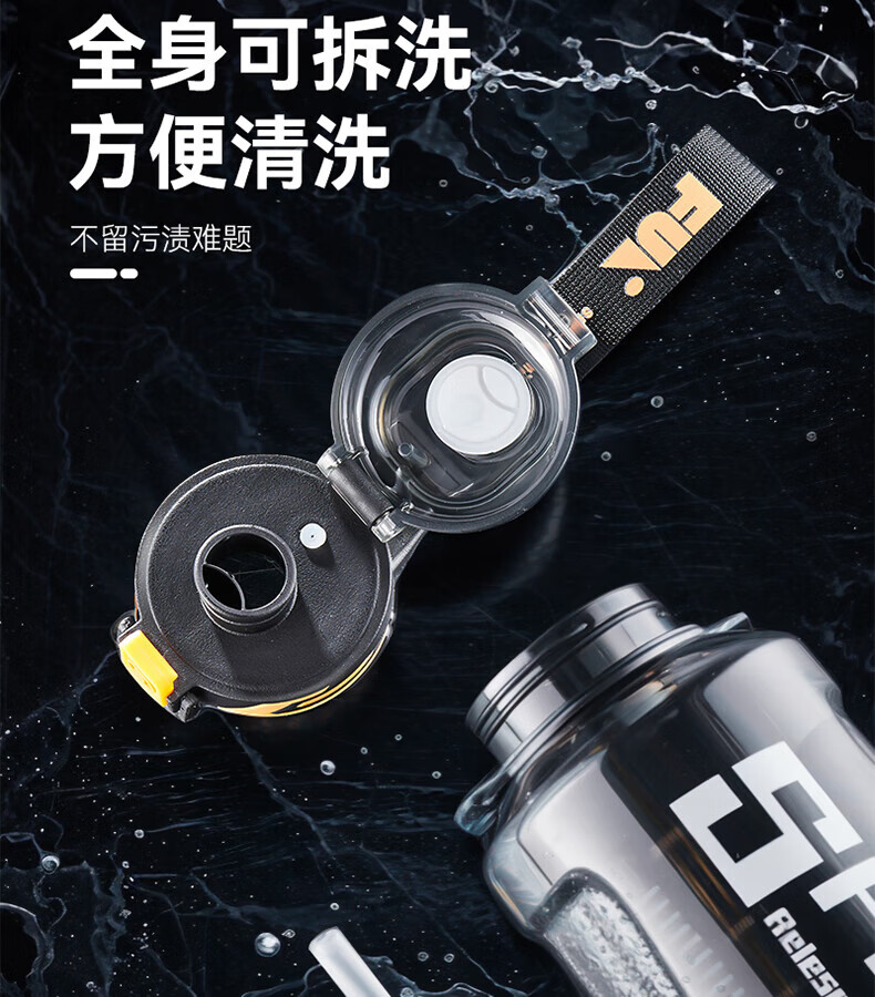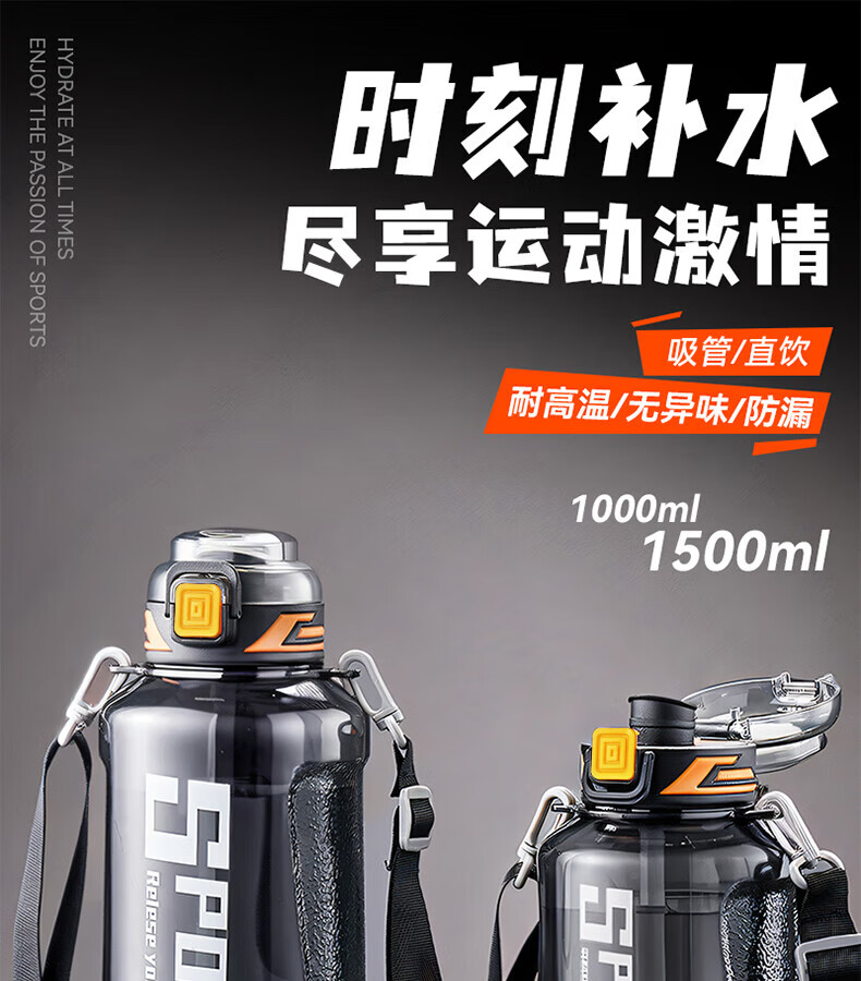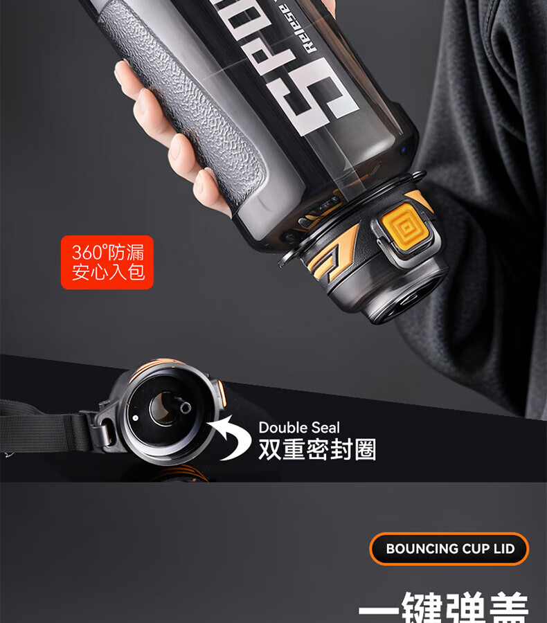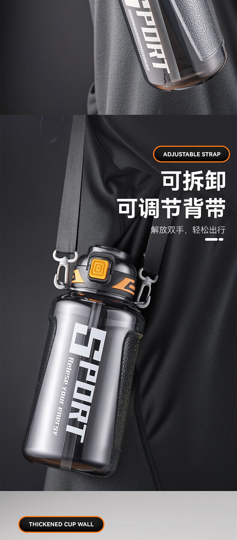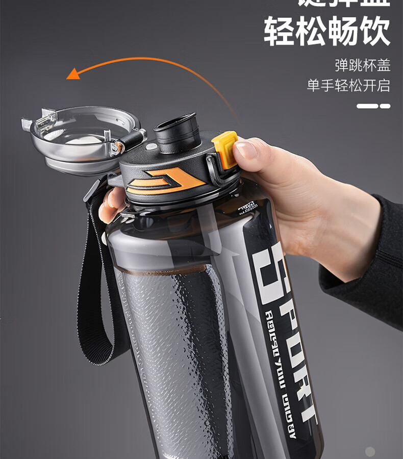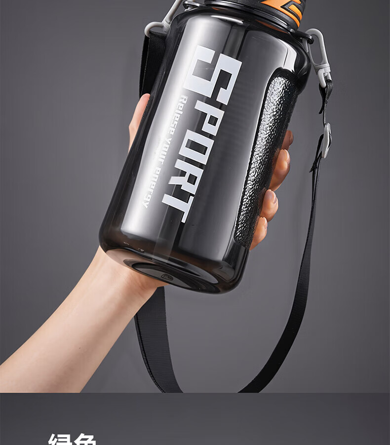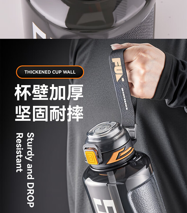Locknlock Sports Water Cup Large Capacity High Temperature Resistant Sports Water Bottle Men's Fitness Plastic Cup Dayton Bucket Ton Bucket Big Belly Cup Black PC Model Can be carried on the back or carried - with 1000ml
