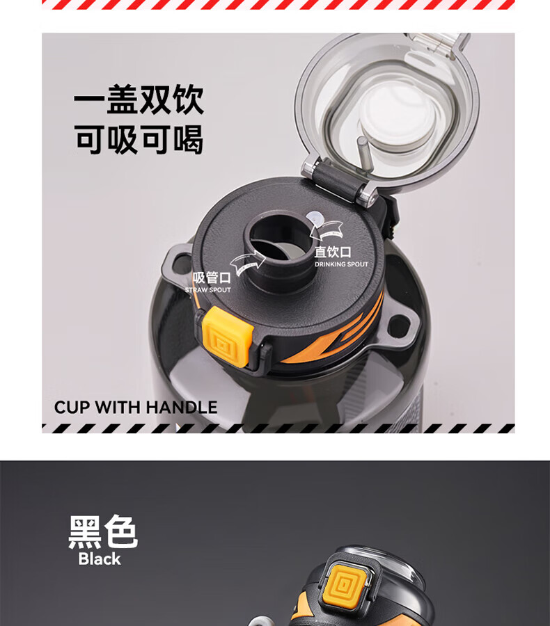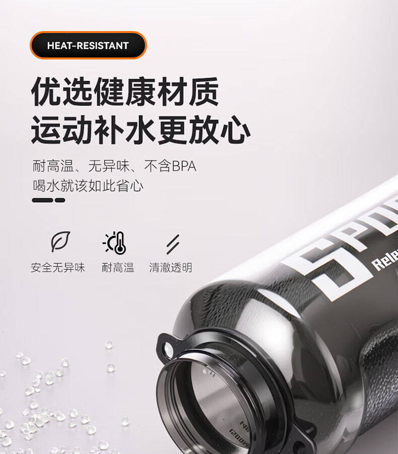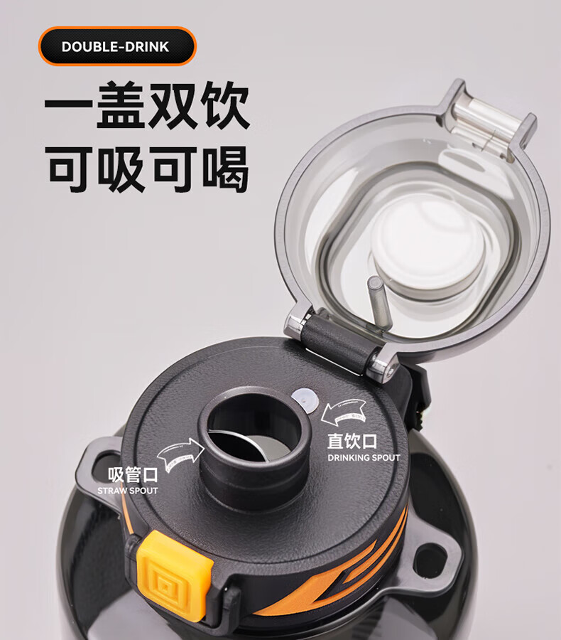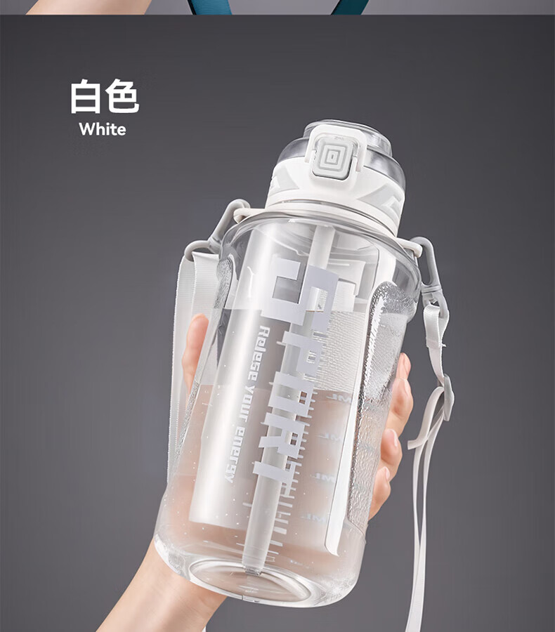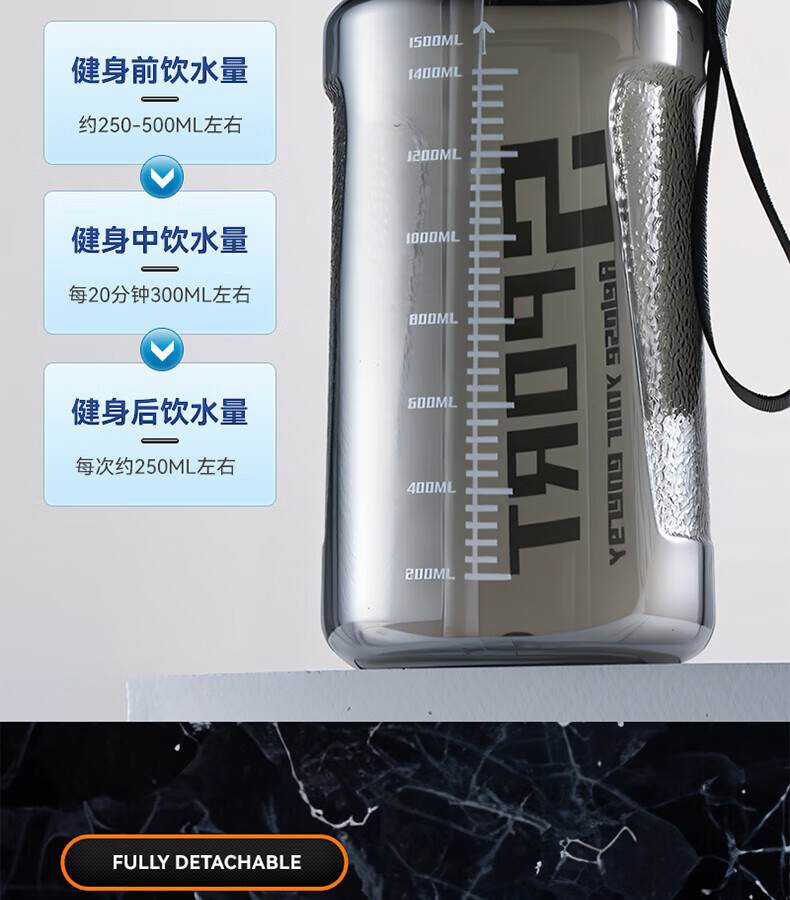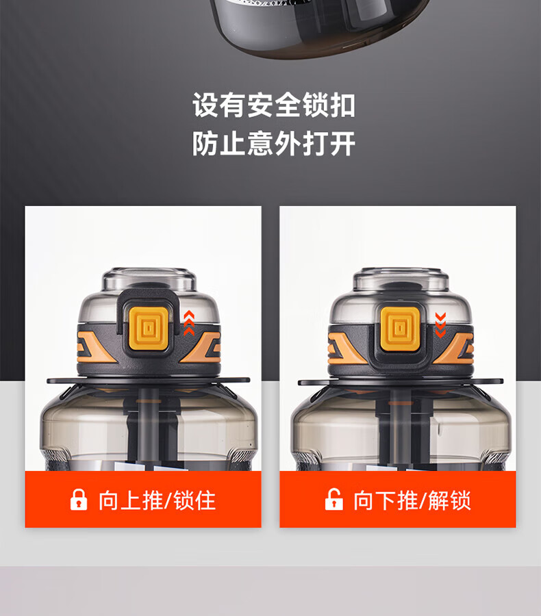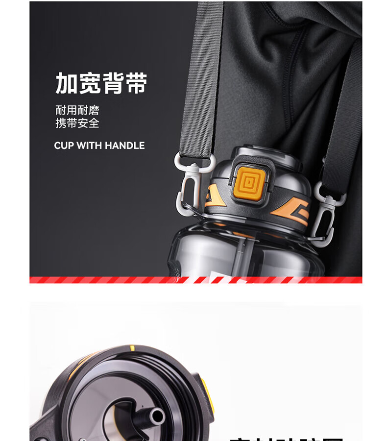 Locknlock Sports Water Cup Large Capacity High Temperature Resistant Sports Water Bottle Men's Fitness Plastic Cup Dayton Bucket Ton Bucket Big Belly Cup Black PC Model Can be carried on the back or carried - with 1000ml