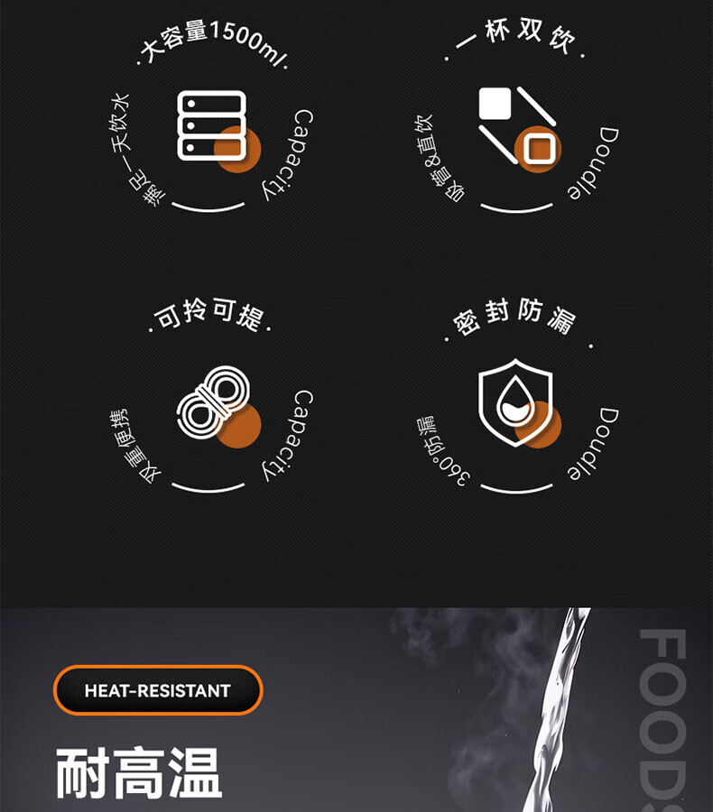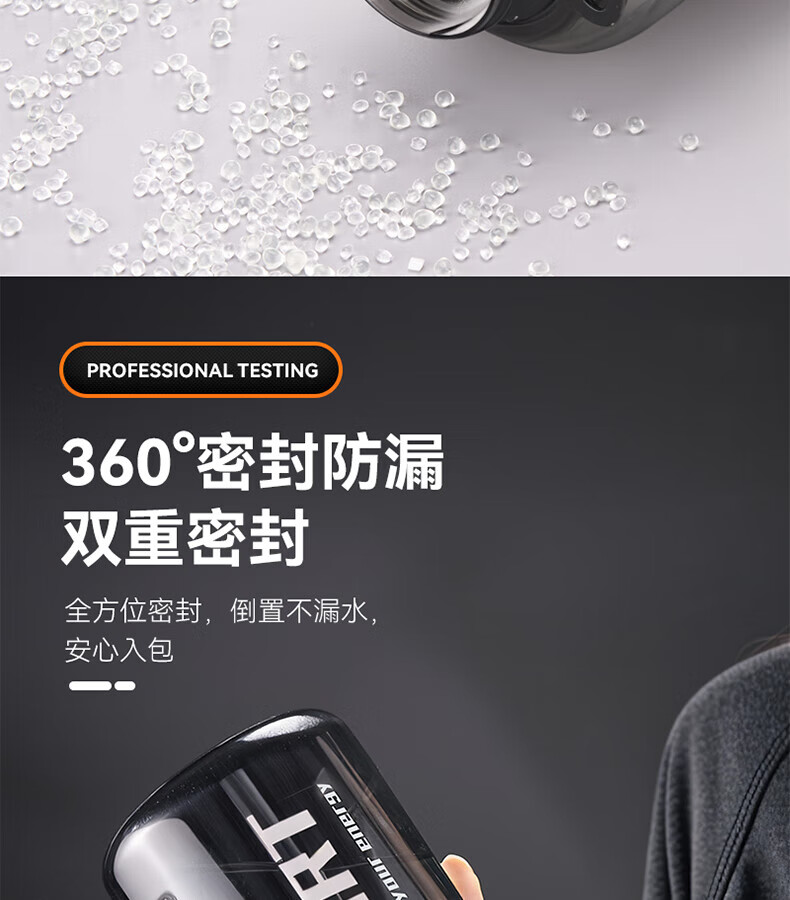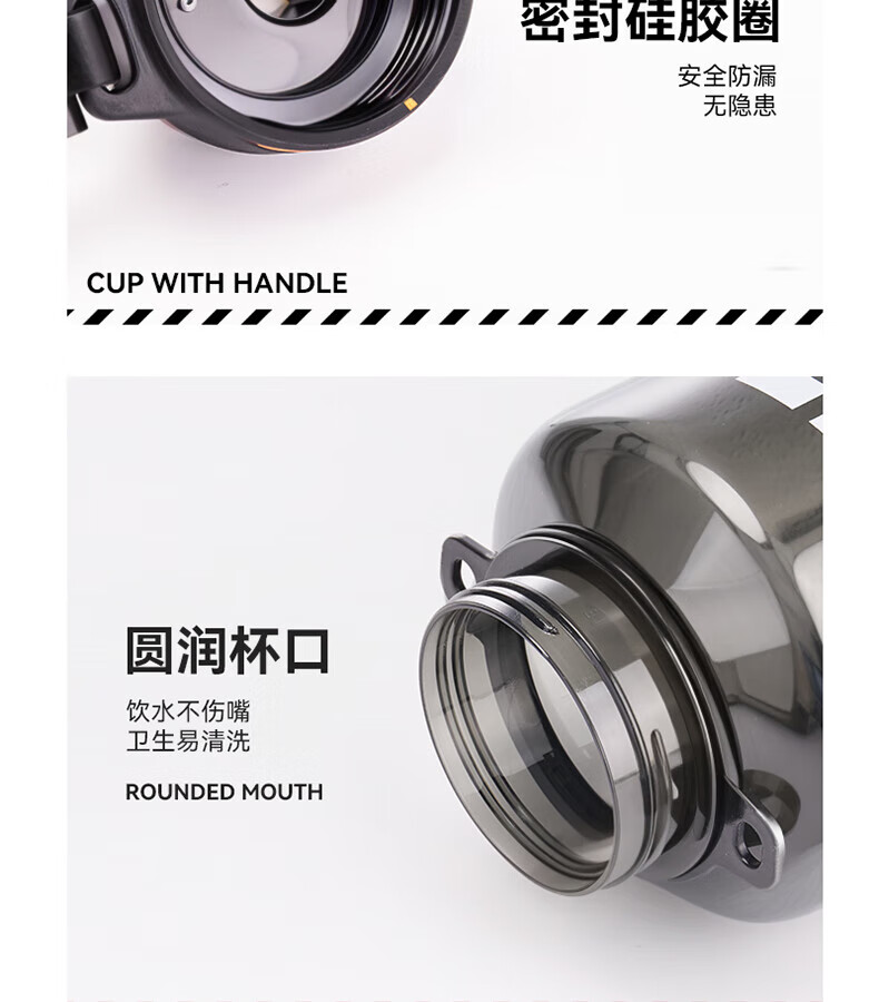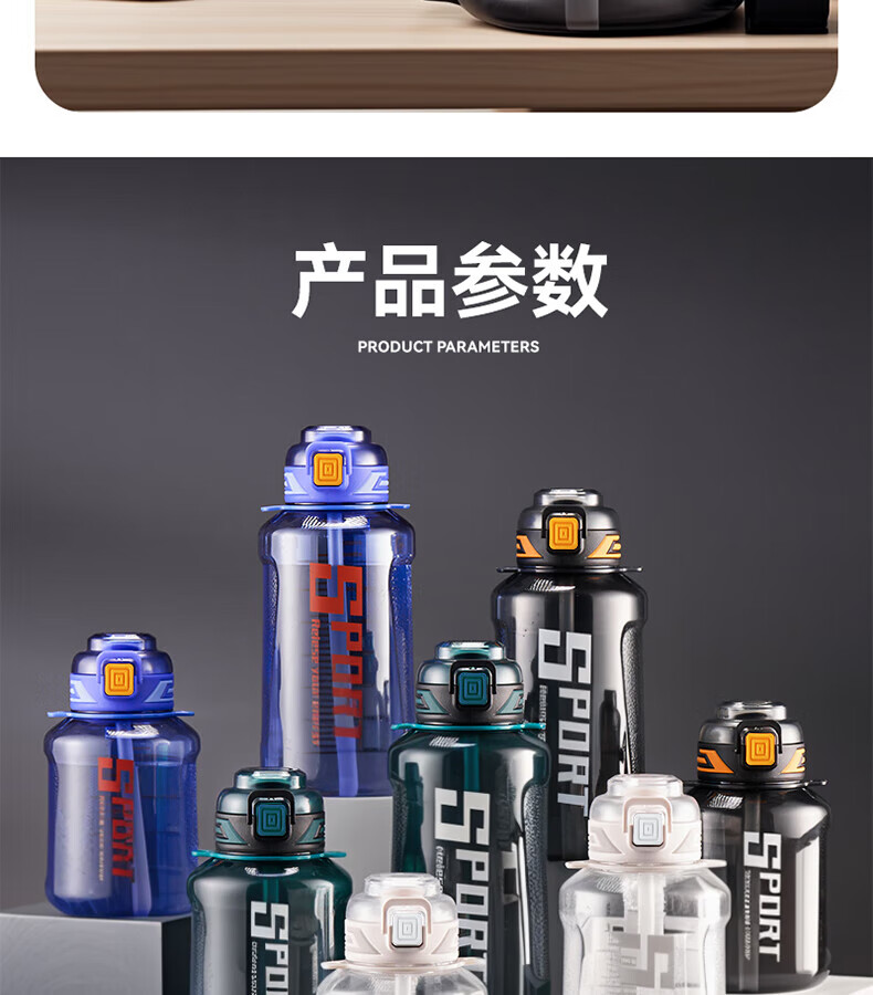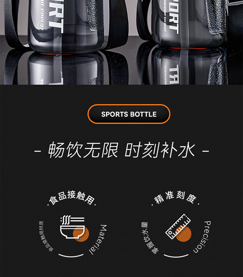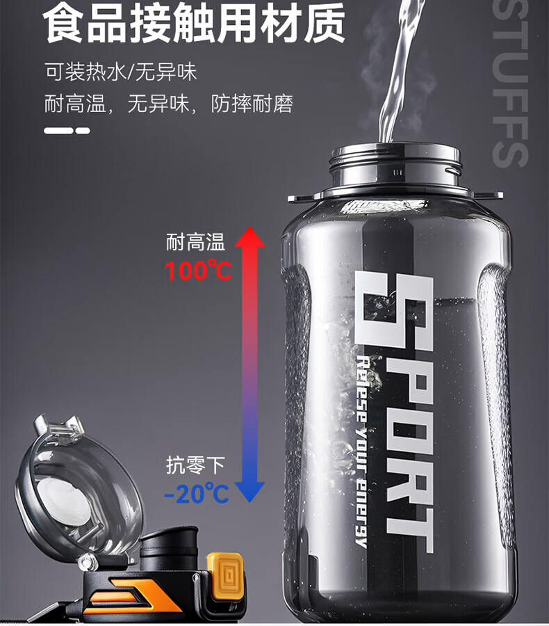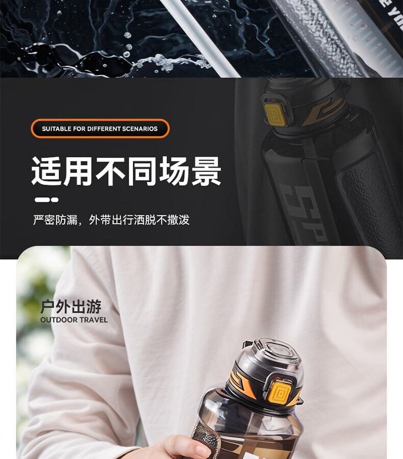 Locknlock Sports Water Cup Large Capacity High Temperature Resistant Sports Water Bottle Men's Fitness Plastic Cup Dayton Bucket Ton Bucket Big Belly Cup Black PC Model Can be carried on the back or carried - with 1000ml
