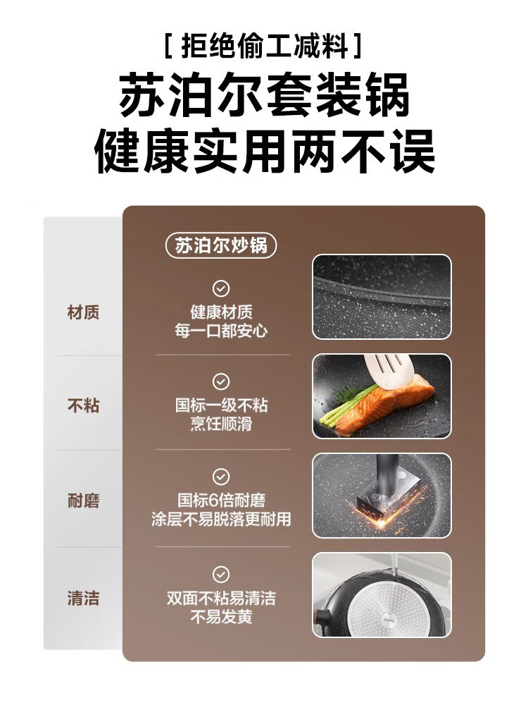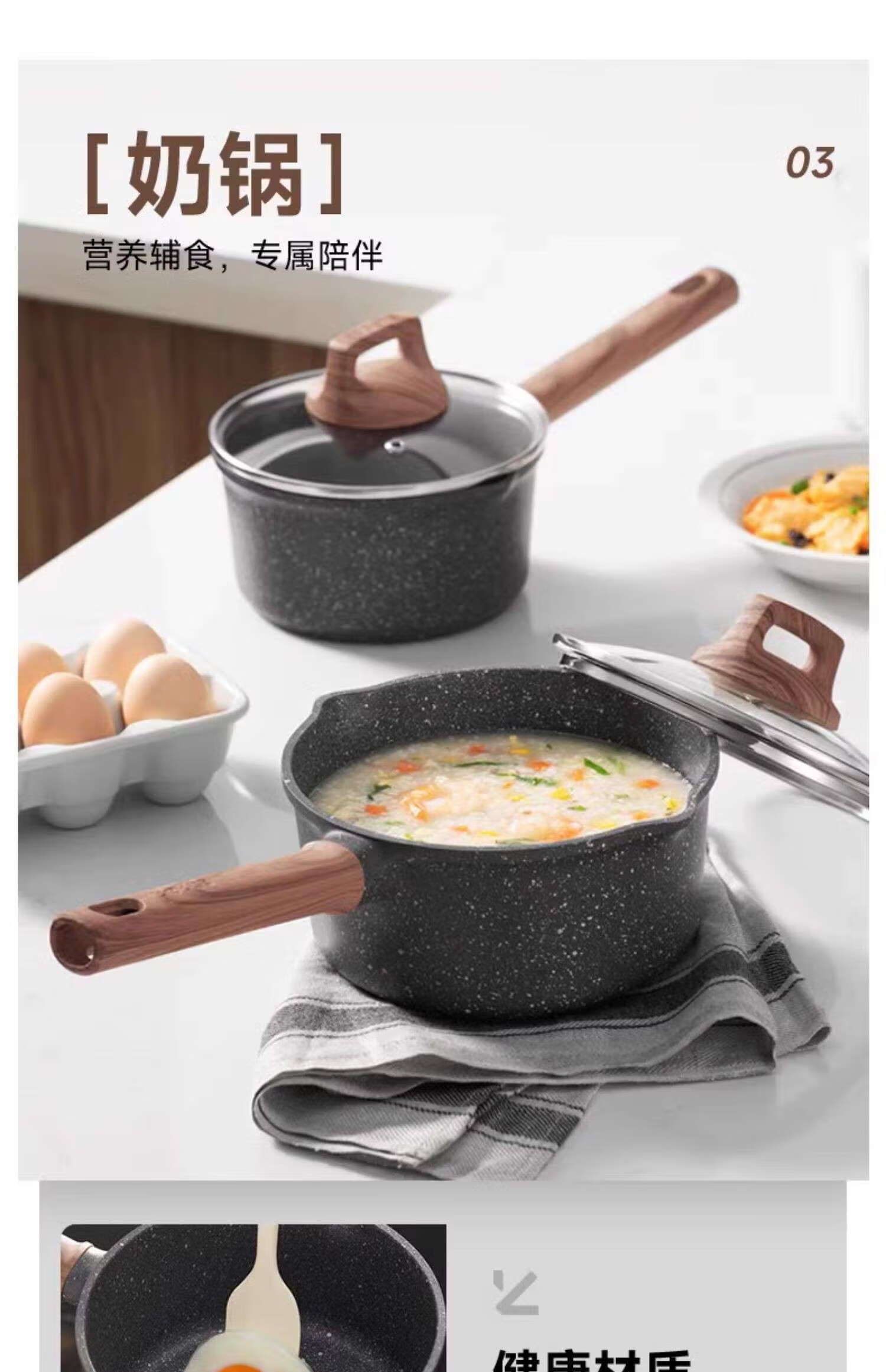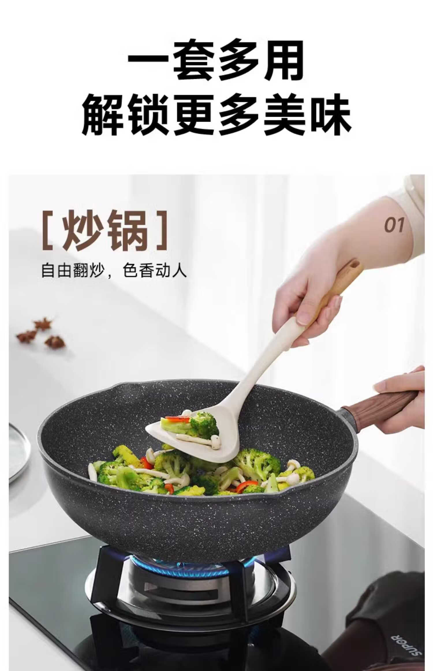Supor pot set complete household medical stone color cooking non-stick pan kitchen three-piece set for induction cooker universal five-piece set (wok + frying pan + milk pot + induction cooker + rice cooker) with free silicone spatula