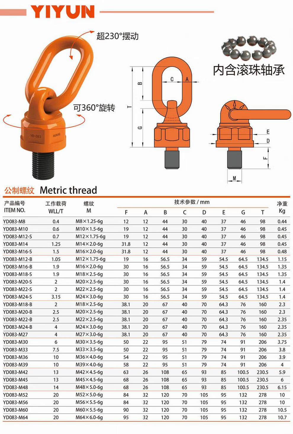 Bingyu 42Crm universal lifting ring lifting point rotating lifting ring 360-degree high-strength lifting ring screw mold lifting ear lifting device M22 M30*35 mm (small body)