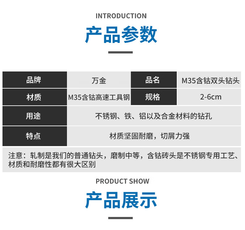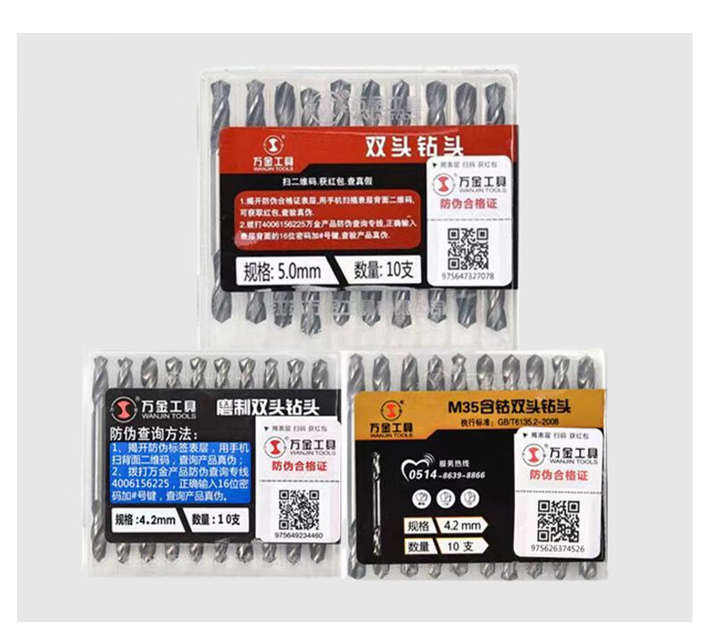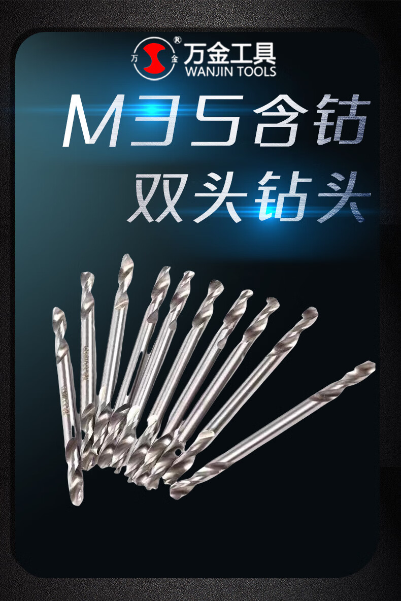 Wanjin double-head twist drill bit is ground for dual-purpose drilling of stainless steel, special cobalt-containing drill bit 2.8/3.2/4.2/5.2mm, cobalt-containing double-head drill 4.2mm, ten pieces