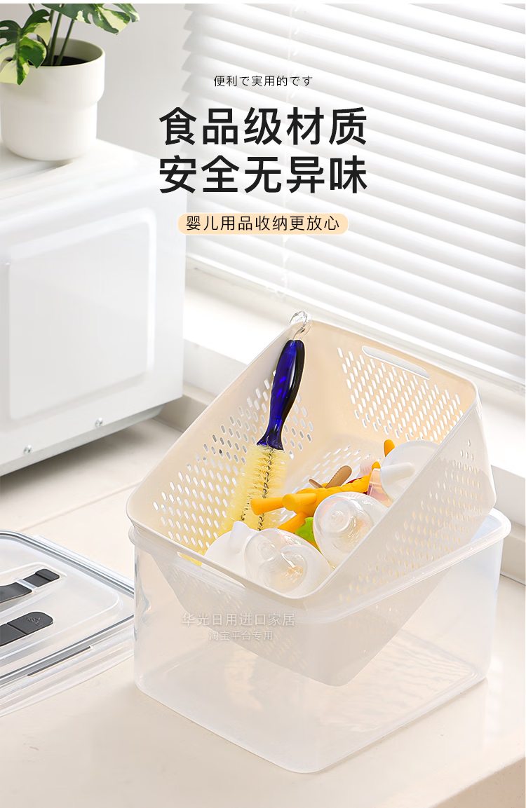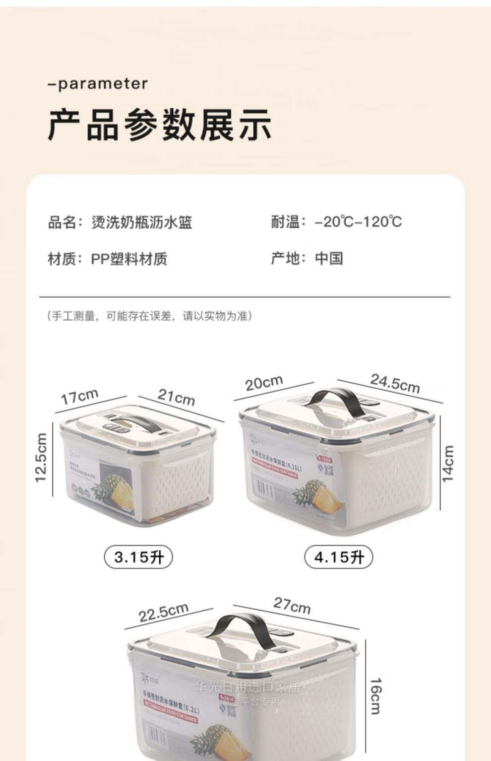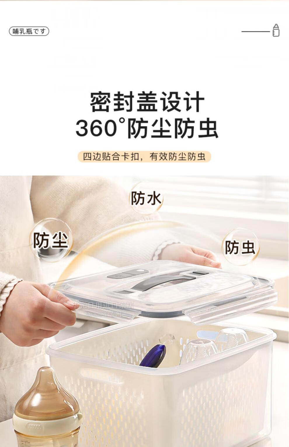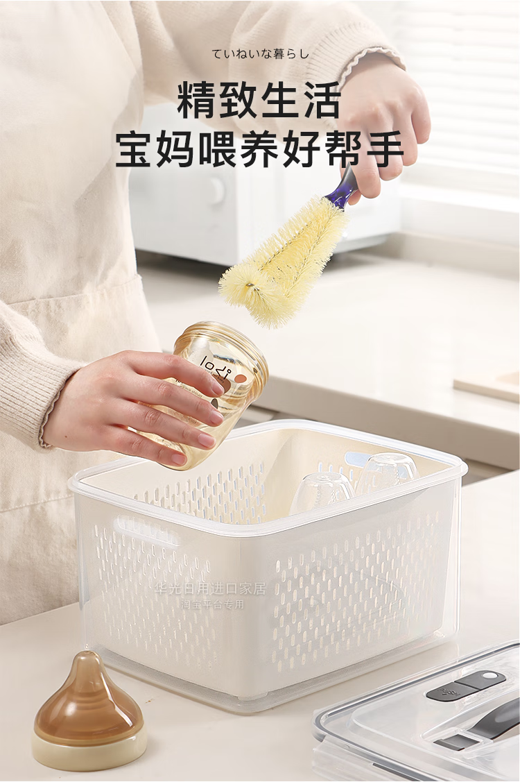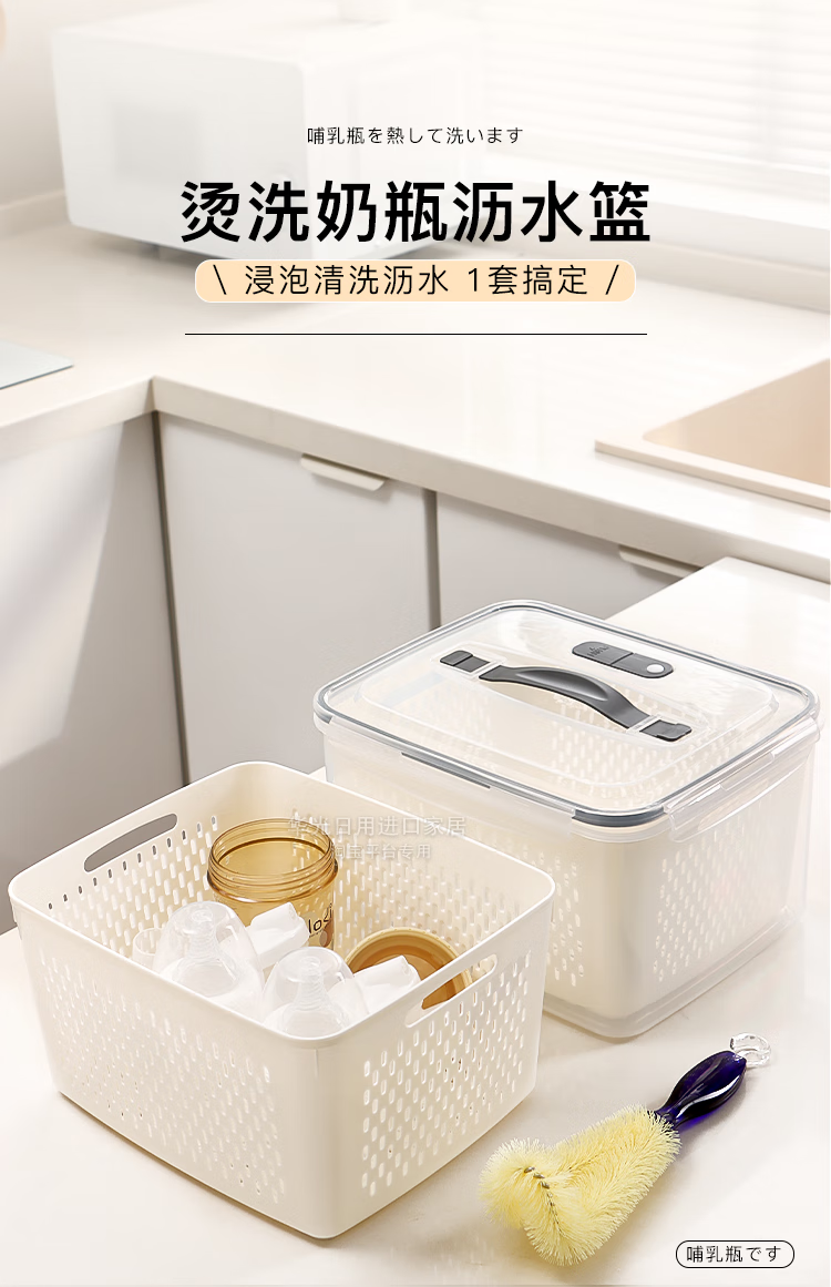 He Jiagong special basin for scalding and washing milk bottles, baby food-grade drain storage box, breast pump, pacifier, tableware cleaning and disinfection, large size - 6.2 liters - 1